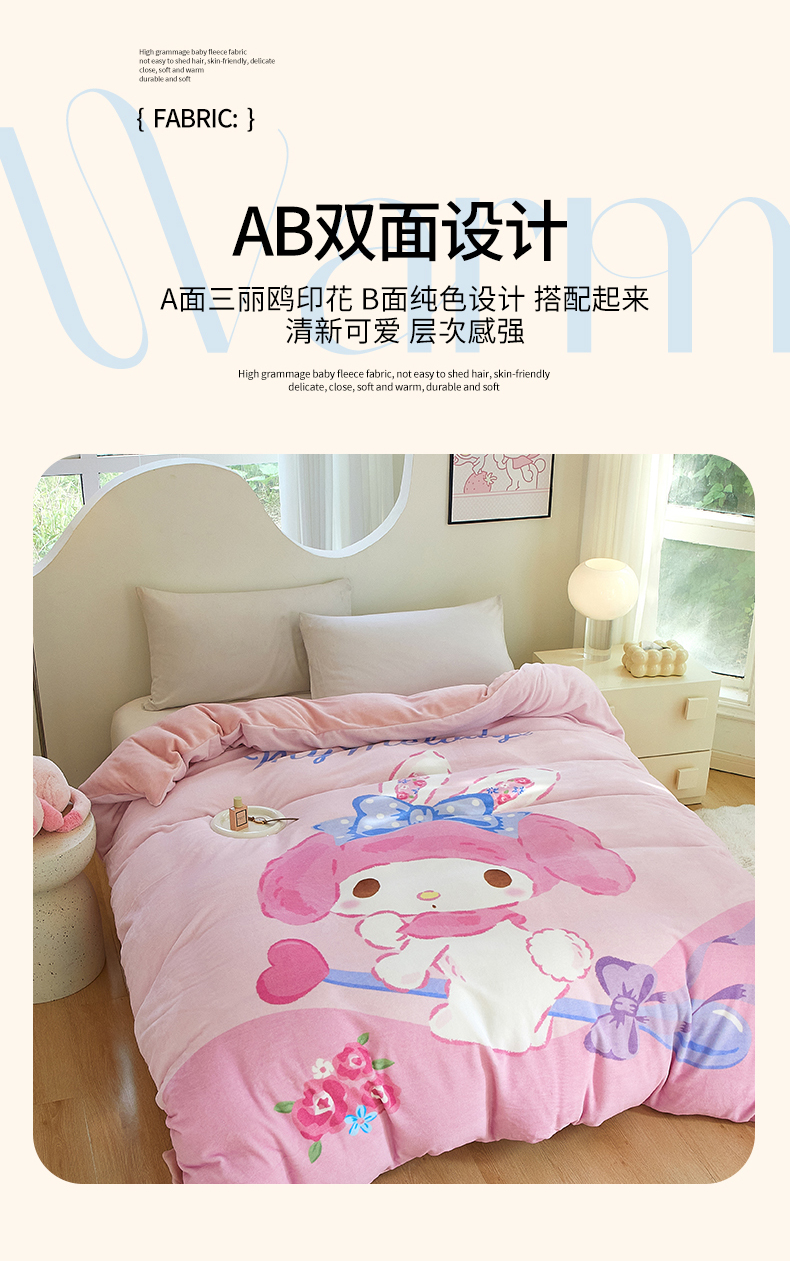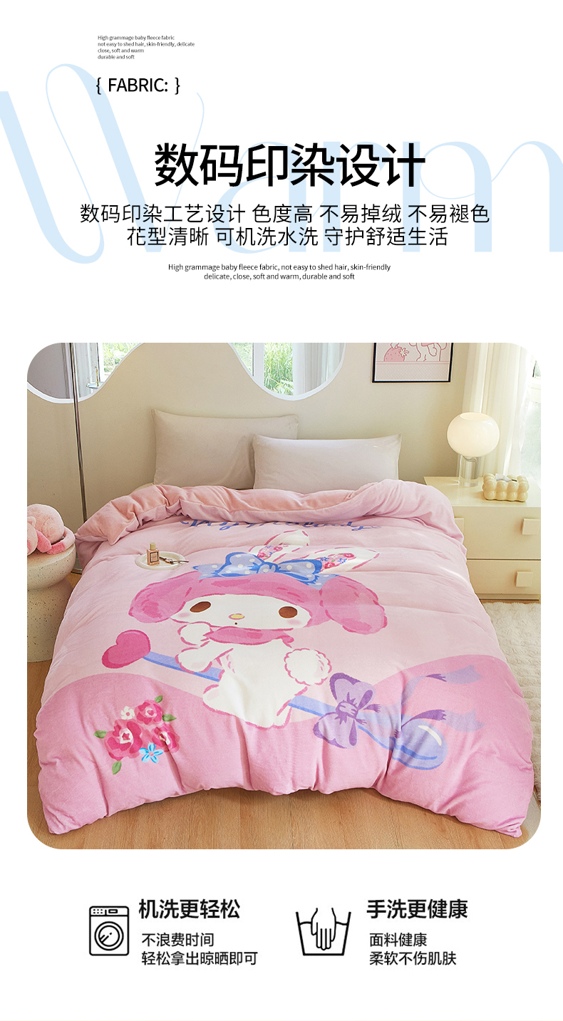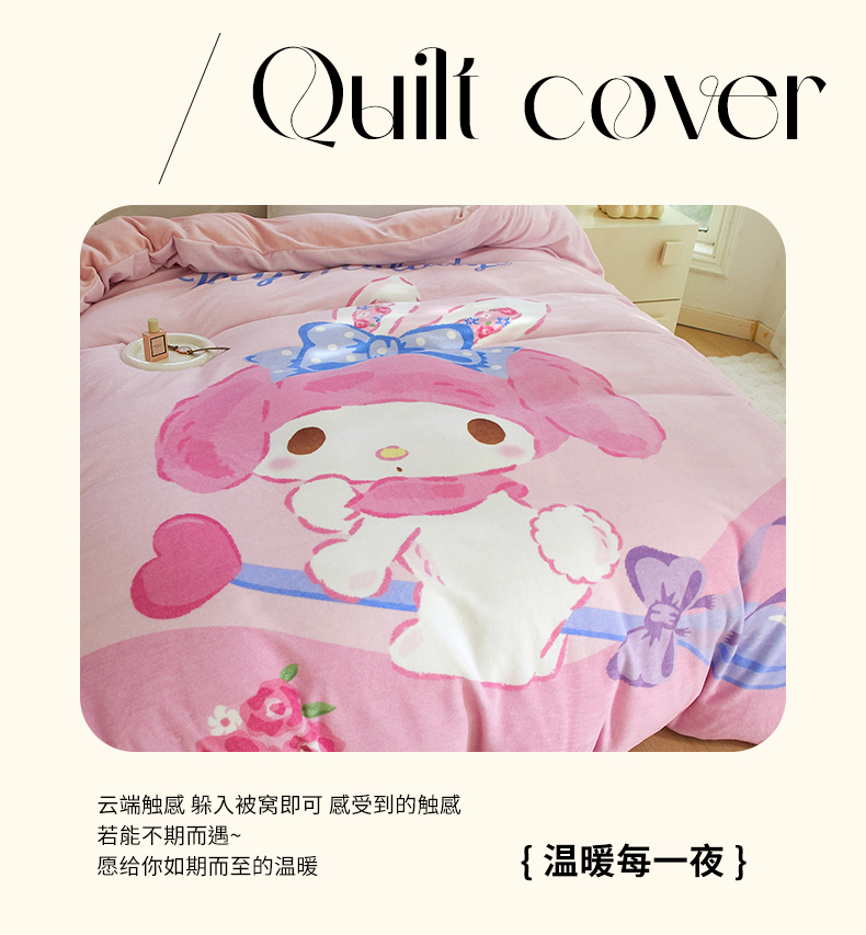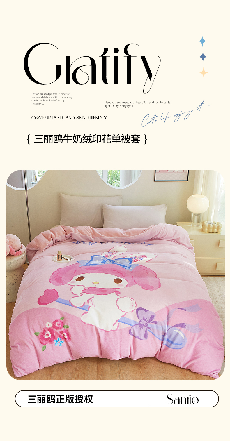 商品名称:蘭菲家纺 2024新款牛奶绒卡通三丽鸥单品被套 去约会