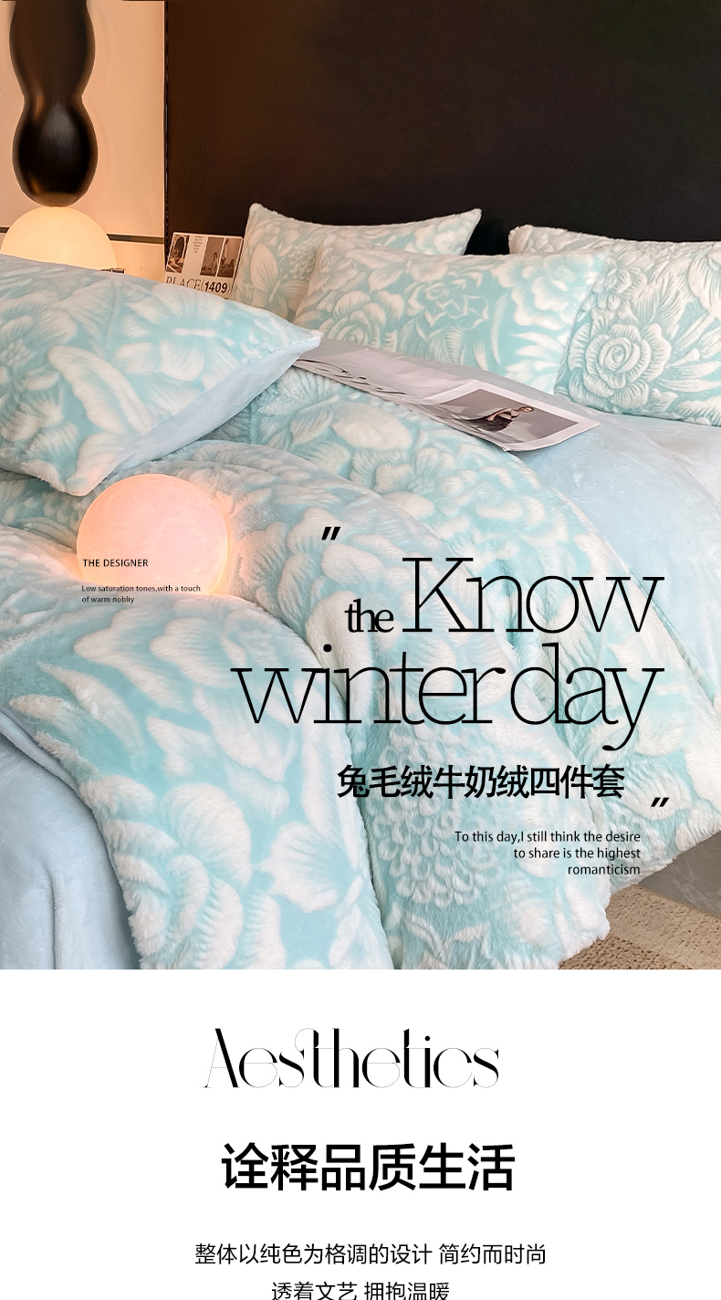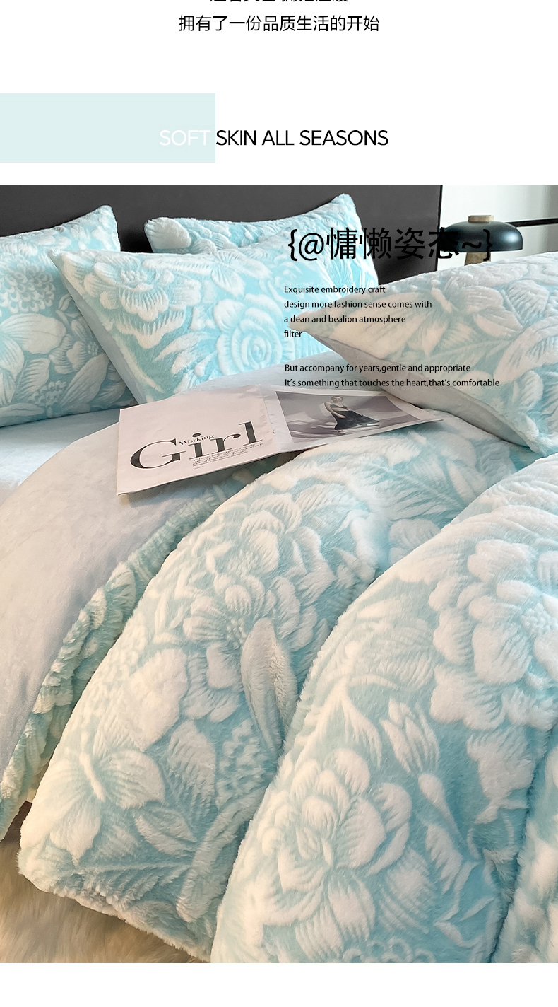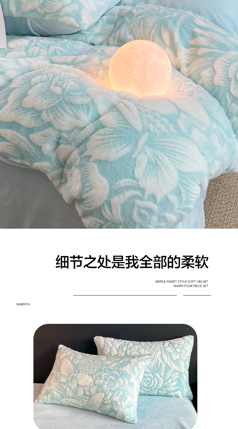 富之航家纺 2024新款剪花兔兔绒四件套 花恋-蓝