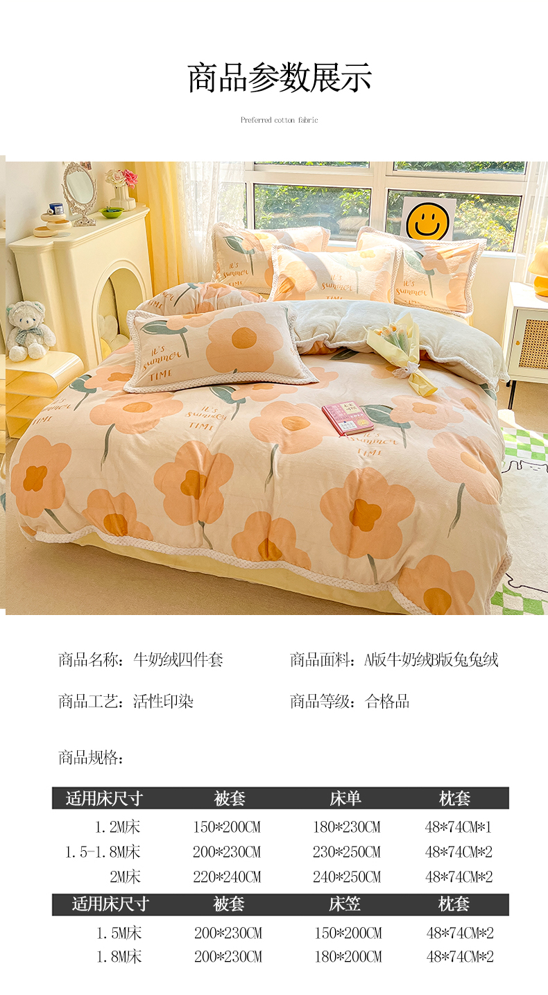 商品名称:琪格格纺织 2024新款印花A牛奶绒B兔兔绒大包边四件套 微雨 牛奶绒大包边