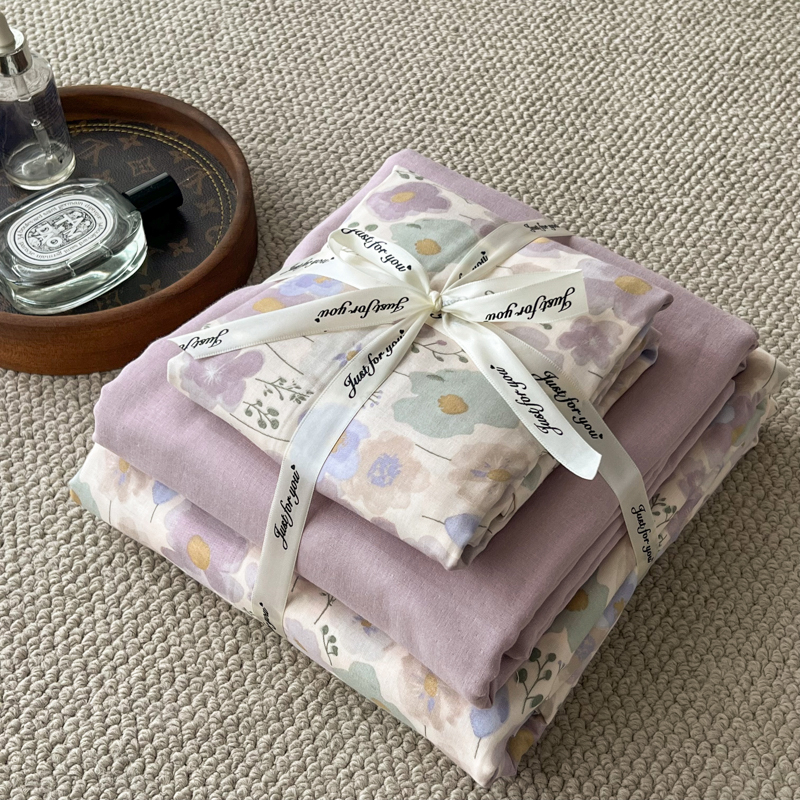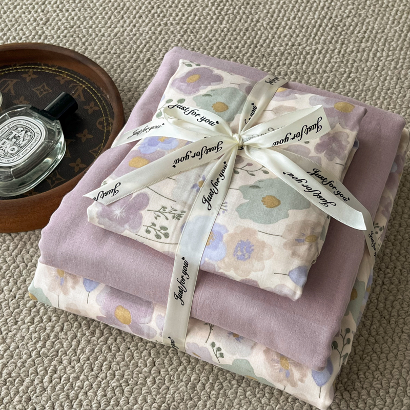 一比一家纺 2025新款全棉母婴级抗菌有氧全棉双层纱亲肤全棉小清新印花三件套四件套 普罗旺斯