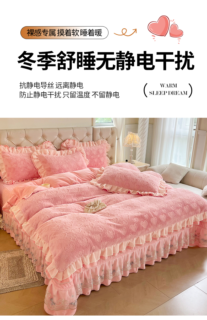 (总)宜凡家纺 2025新款兔绒提花牛奶绒夹棉床裙四件套,爱心 少女粉,爱心 粉紫,爱心 驼色,蝶舞 大红,蝶舞 米色,蝶舞 浅紫,蝶舞 玉色,简爱 苍青,简爱 豆沙紫,简爱 玉色,樱桃 苍青,樱桃 豆沙紫,樱桃 奶油白