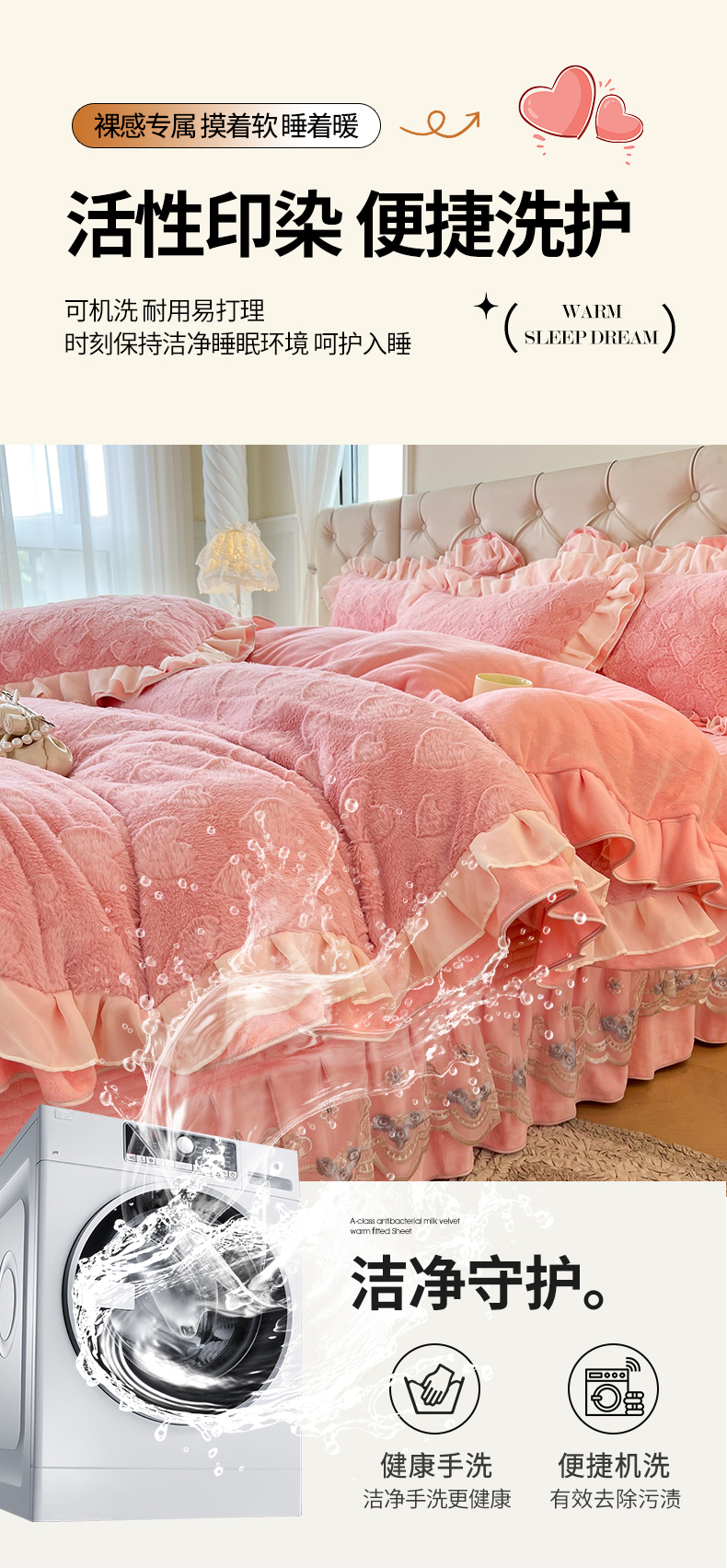 商品名称:宜凡家纺 2024新款A类牛奶绒剪花绒床盖四件套 点点心动-公主粉