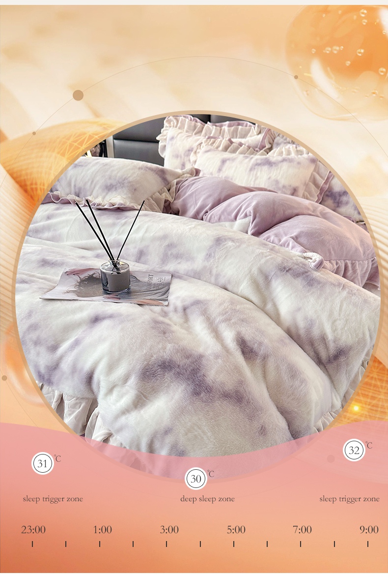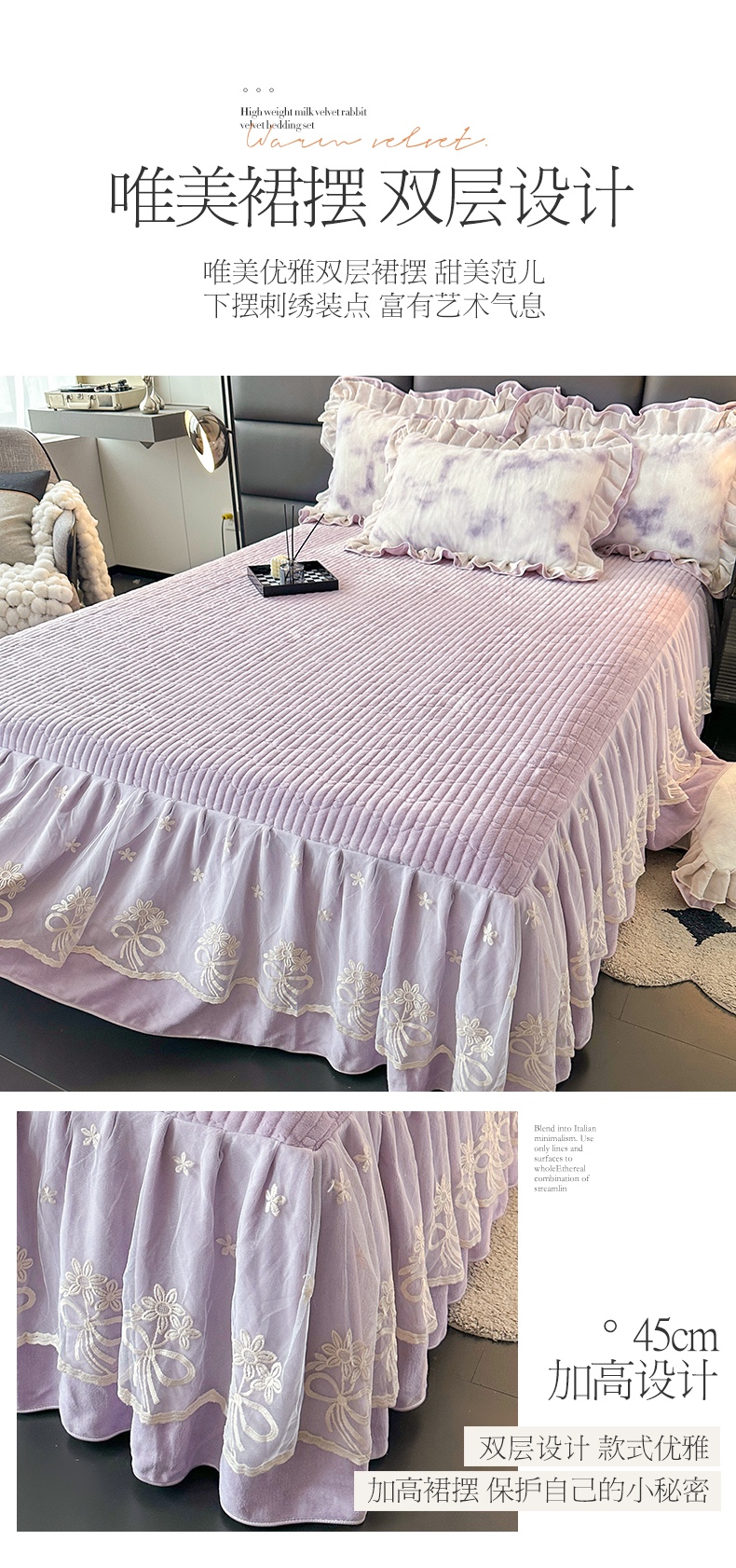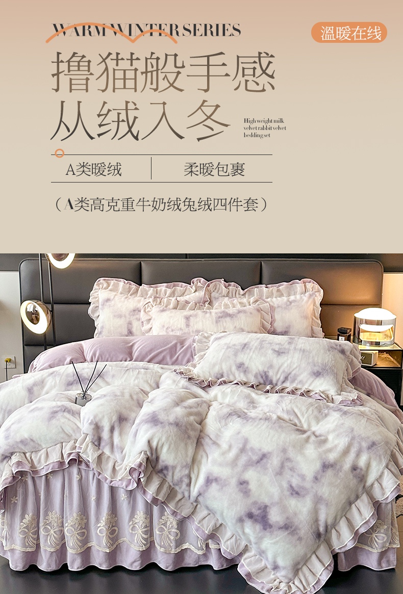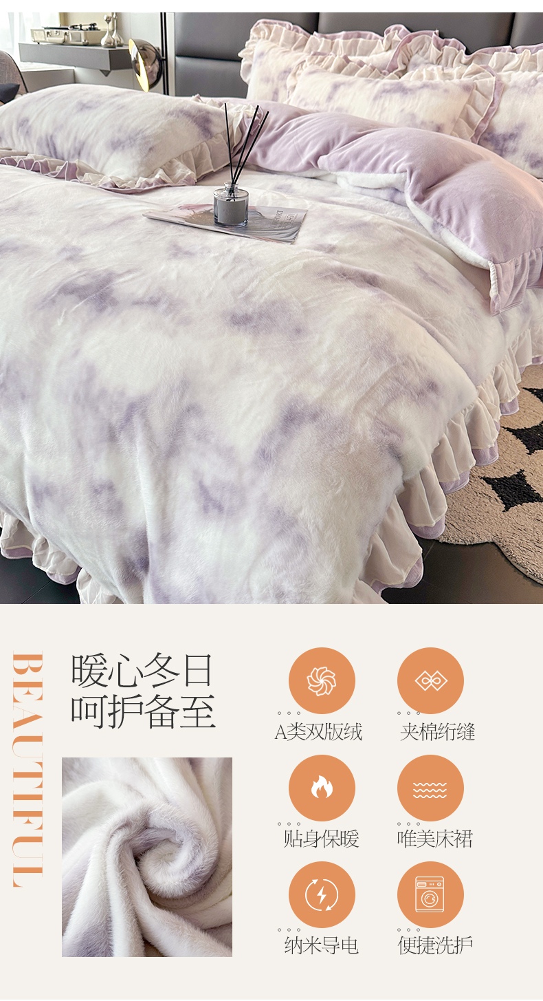宜凡家纺 2024新款高克重牛奶绒兔绒床裙四件套 云雾深深 紫
