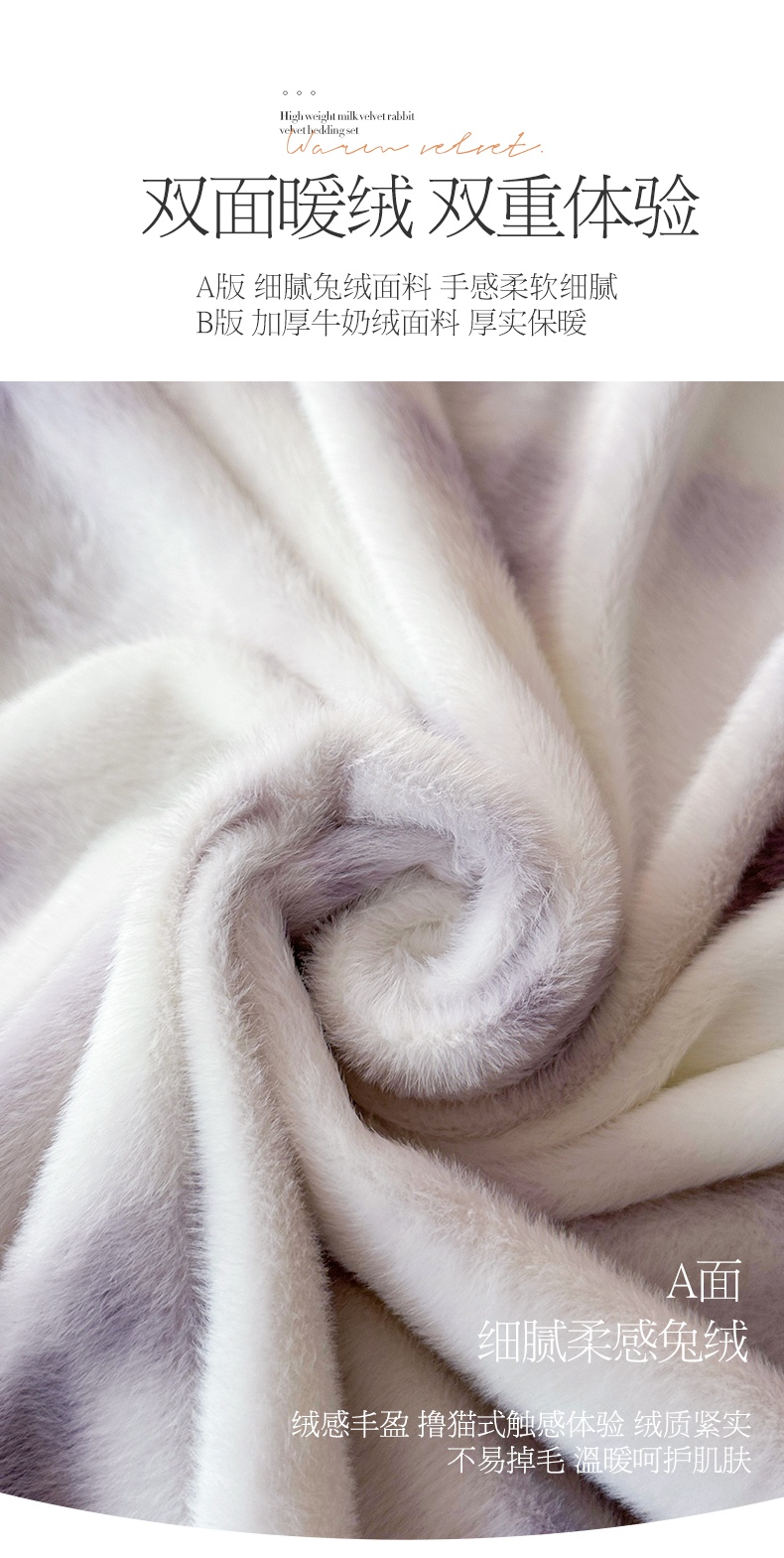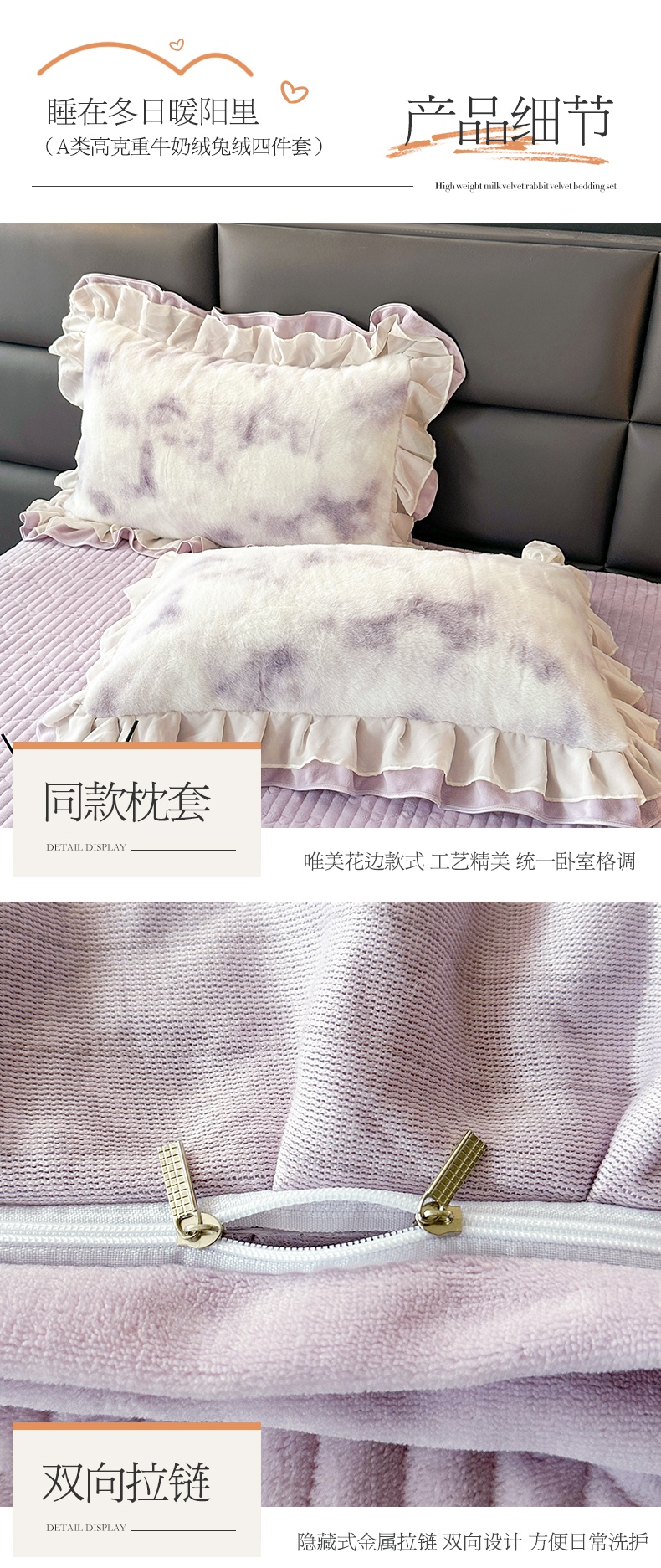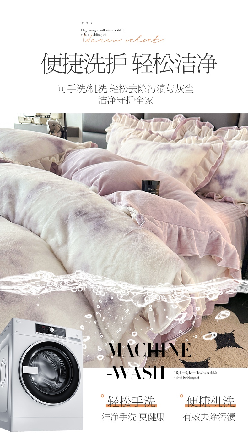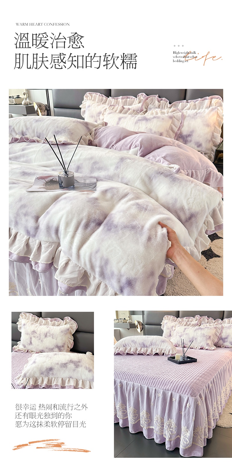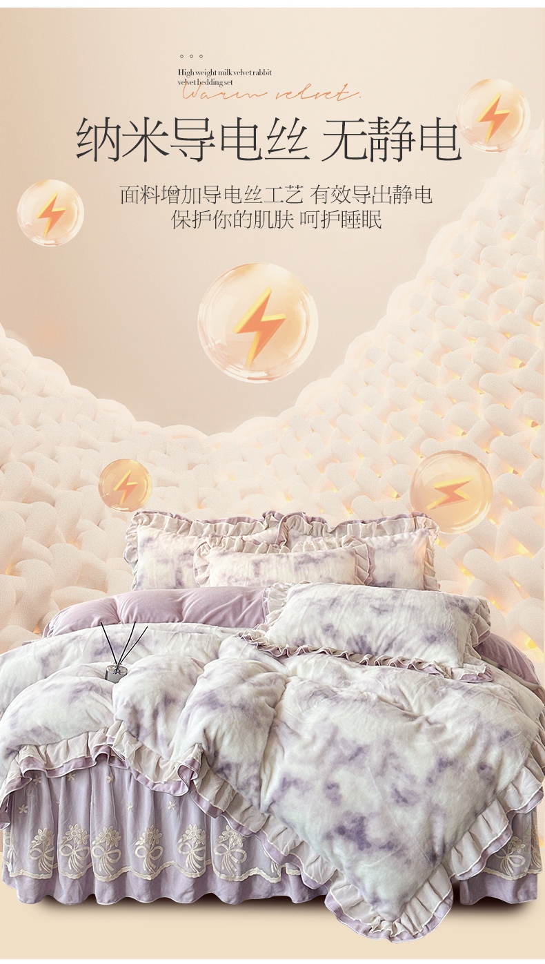 商品名称:宜凡家纺 2024新款高克重牛奶绒兔绒床裙四件套 云雾深深 紫