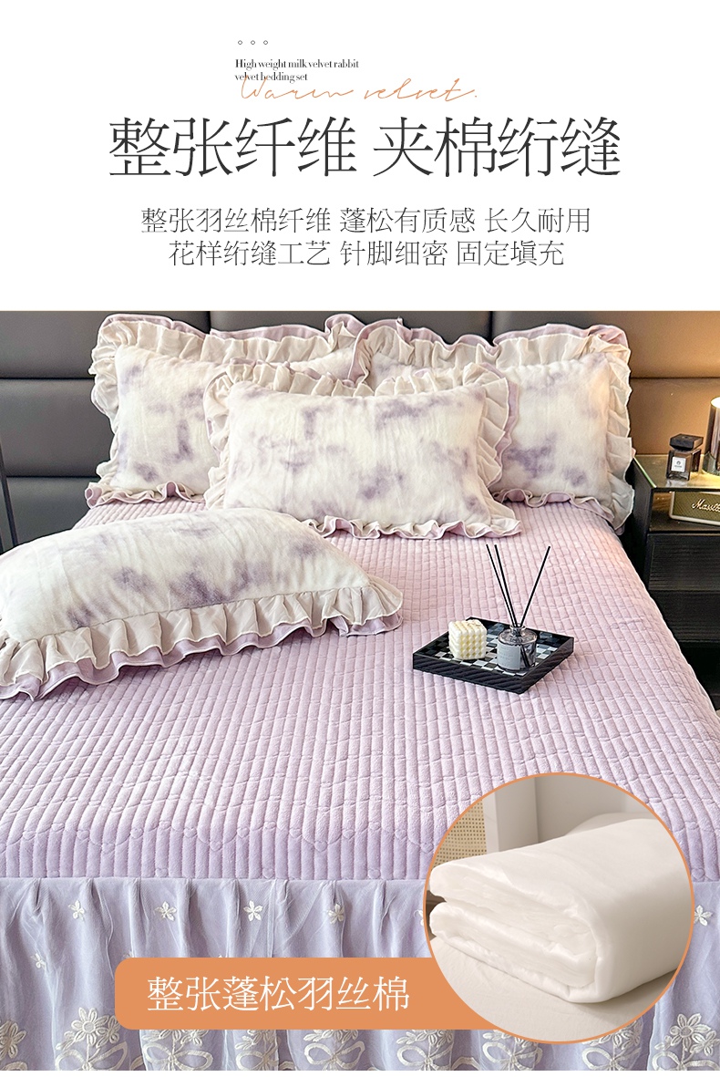 (总)宜凡家纺 2025新款兔绒提花牛奶绒夹棉床裙四件套,爱心 少女粉,爱心 粉紫,爱心 驼色,蝶舞 大红,蝶舞 米色,蝶舞 浅紫,蝶舞 玉色,简爱 苍青,简爱 豆沙紫,简爱 玉色,樱桃 苍青,樱桃 豆沙紫,樱桃 奶油白