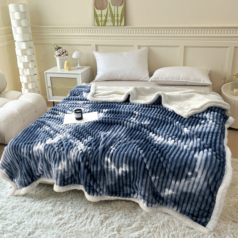 璐维斯家纺 2025款双层加厚毛毯羊羔绒牛奶绒保暖毯子盖毯午睡法莱绒多功能毯子跨境外贸直播电商专供礼品绒毯 雾霾蓝