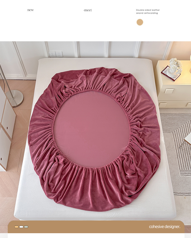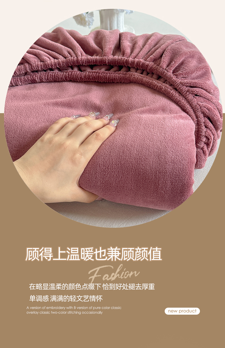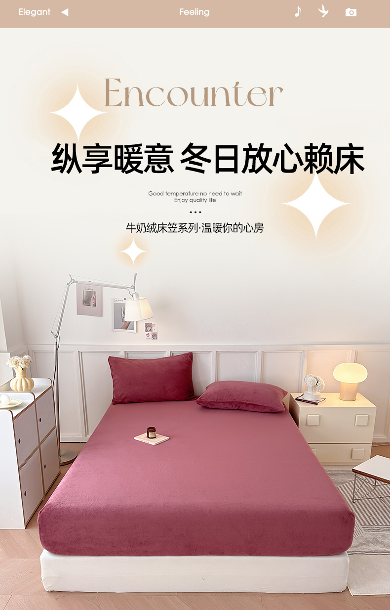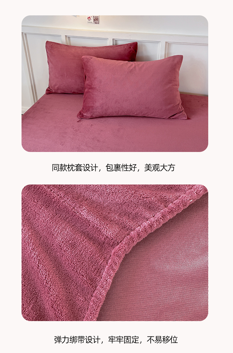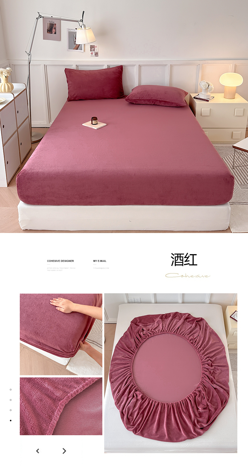 • 91家纺网 家纺一手货源 找家纺 简宜家居(朝初家纺) 2025新款200克牛奶绒A版床笠 酒红