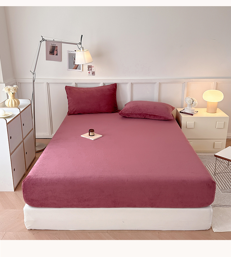 简宜家居(朝初家纺) 2025新款200克牛奶绒A版床笠 酒红