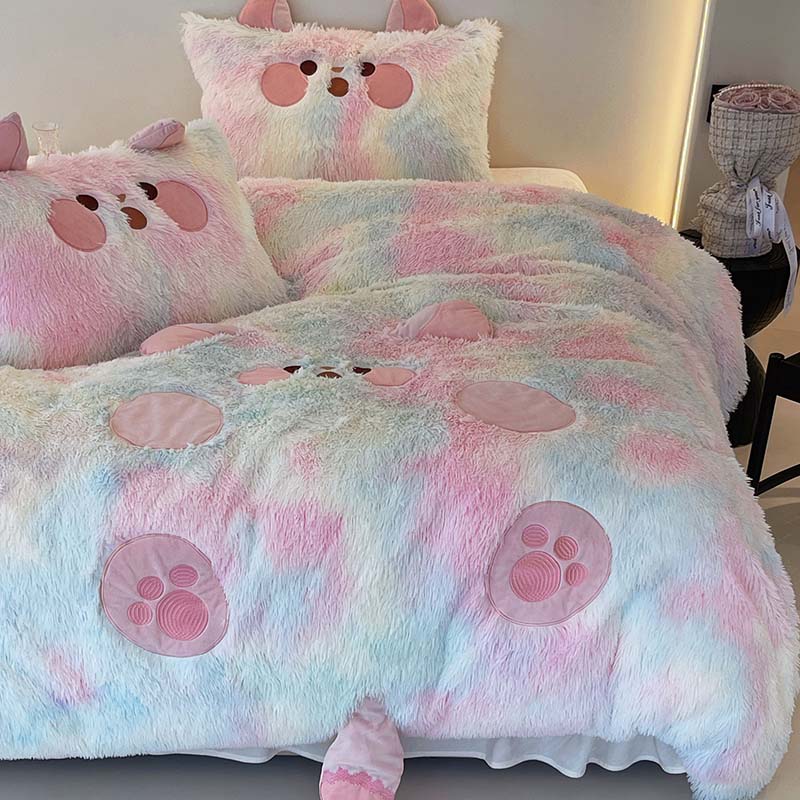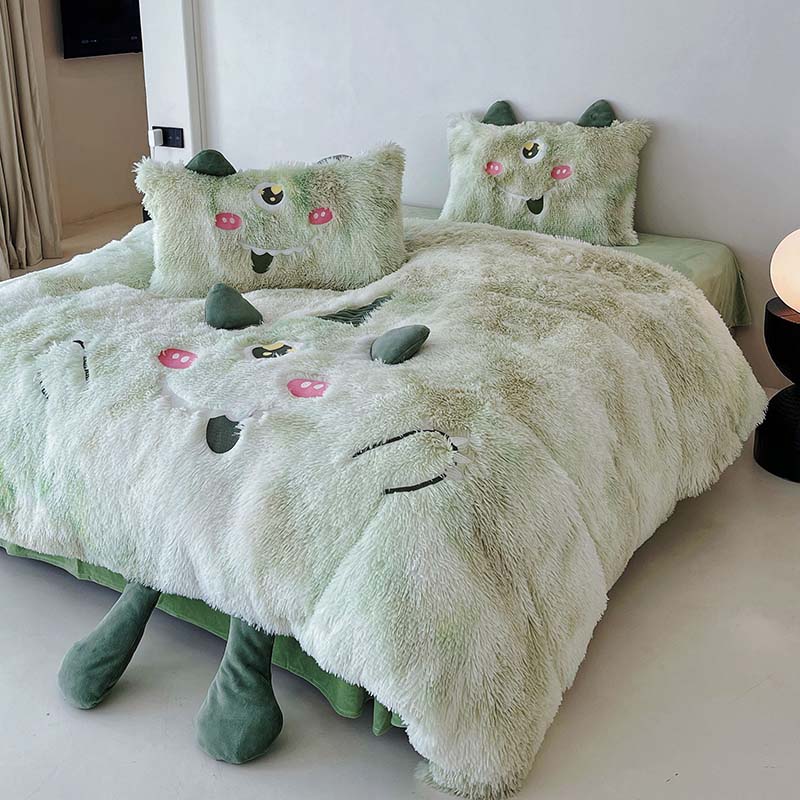 商品名称:嗨购家纺 2024新款水貂绒宝宝绒四件套-小怪兽卡通系列(实拍图) 涂山彩彩