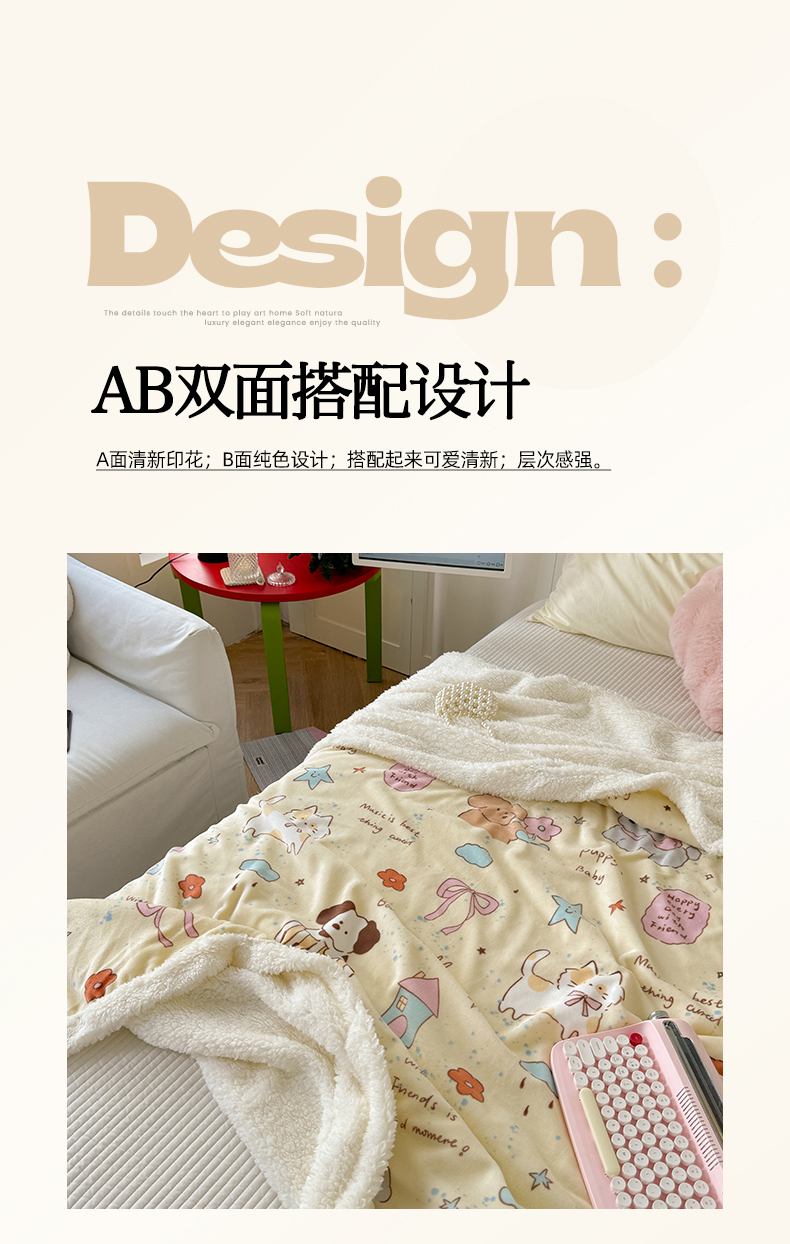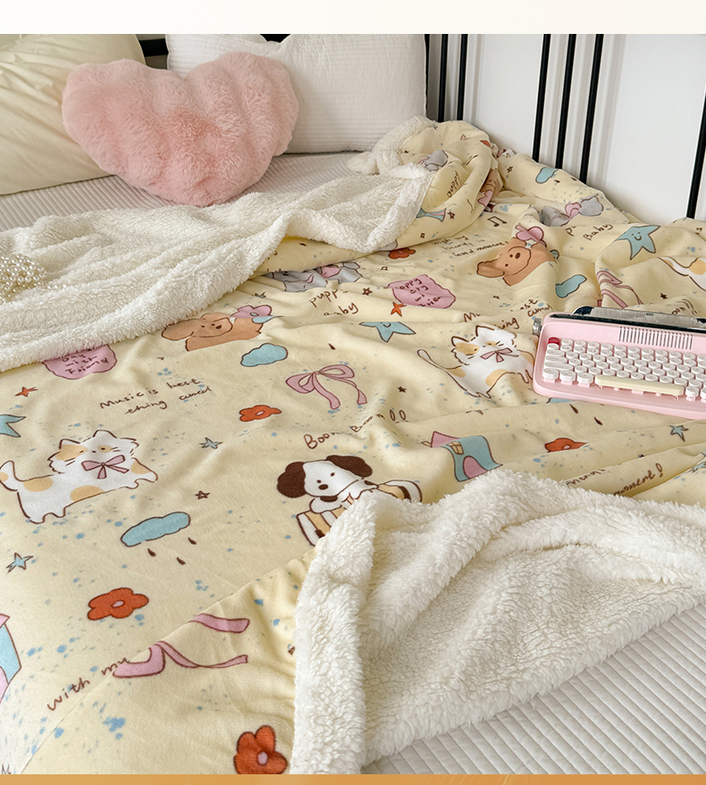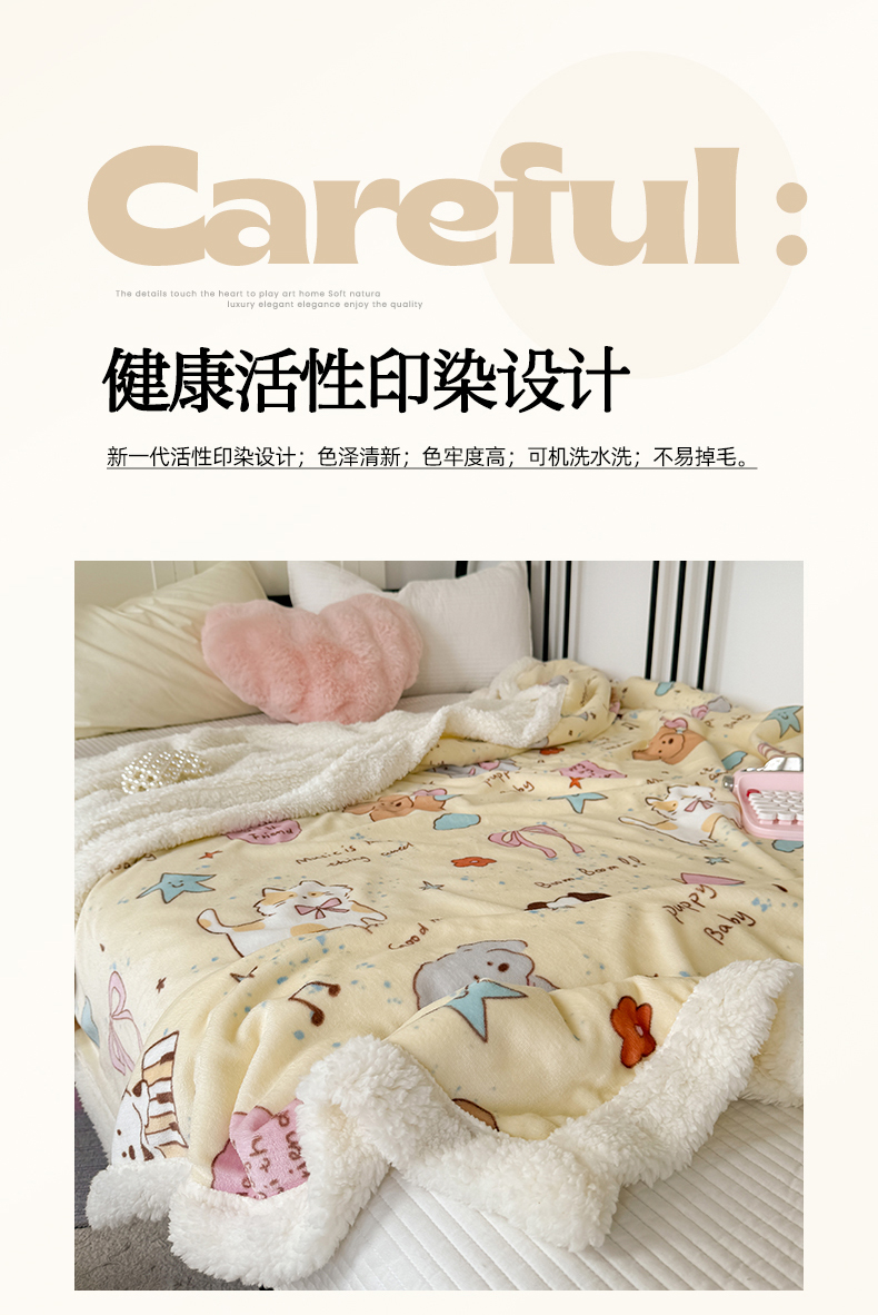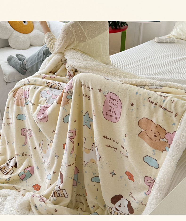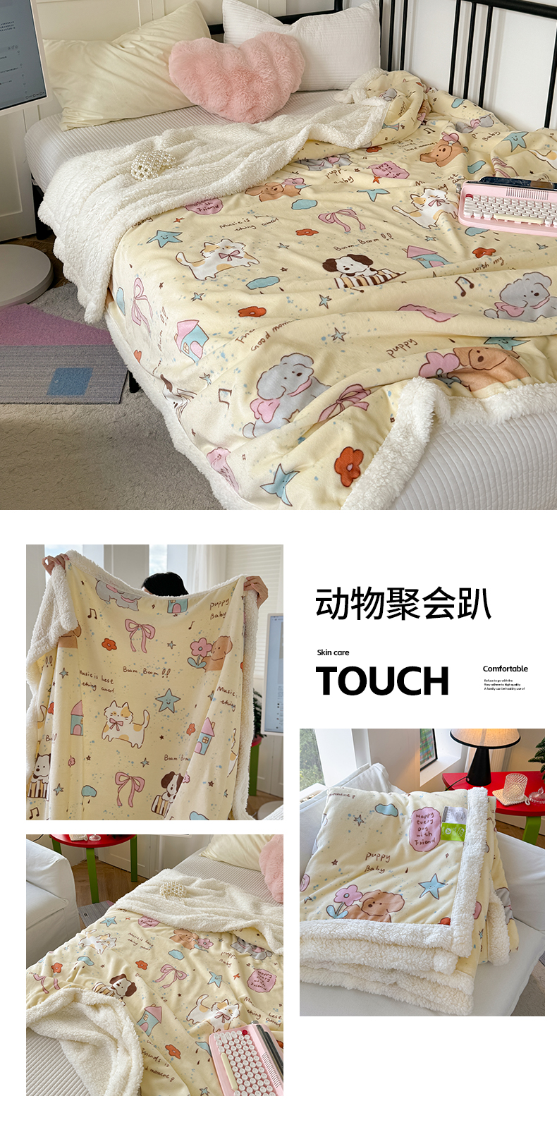 吉象家纺 2024新款高克重牛奶绒羊羔绒印花毛毯 动物聚会趴