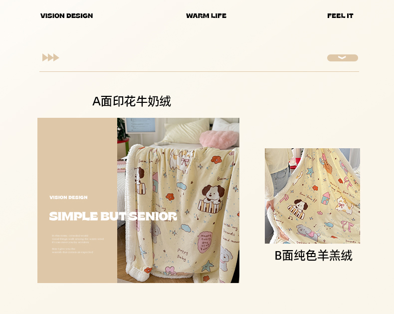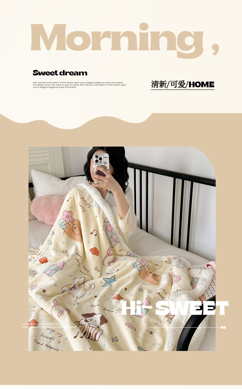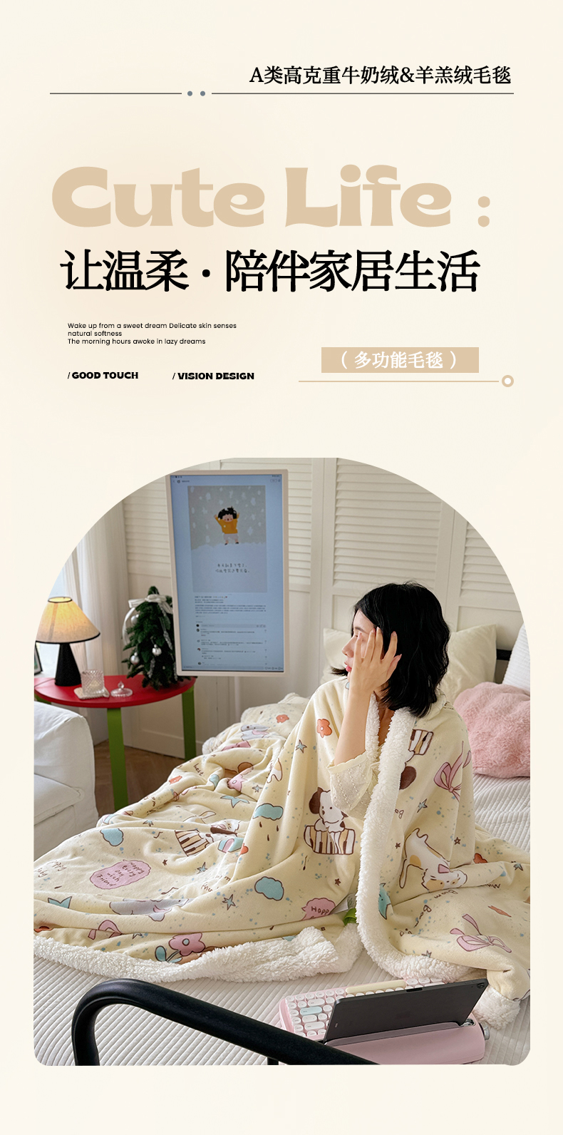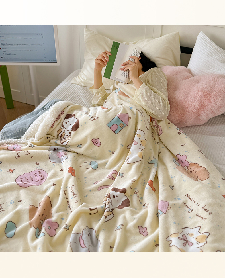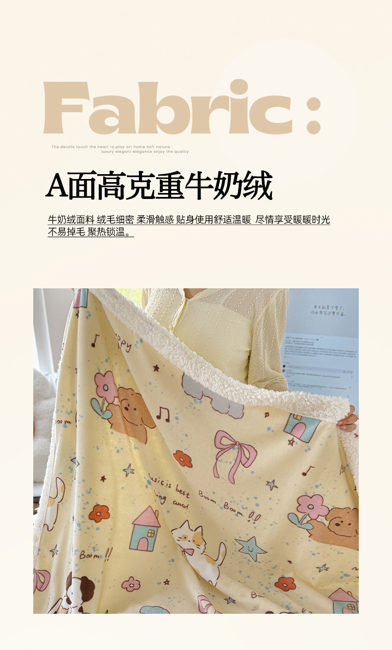 吉象家纺 2024新款高克重牛奶绒羊羔绒印花毛毯 动物聚会趴
