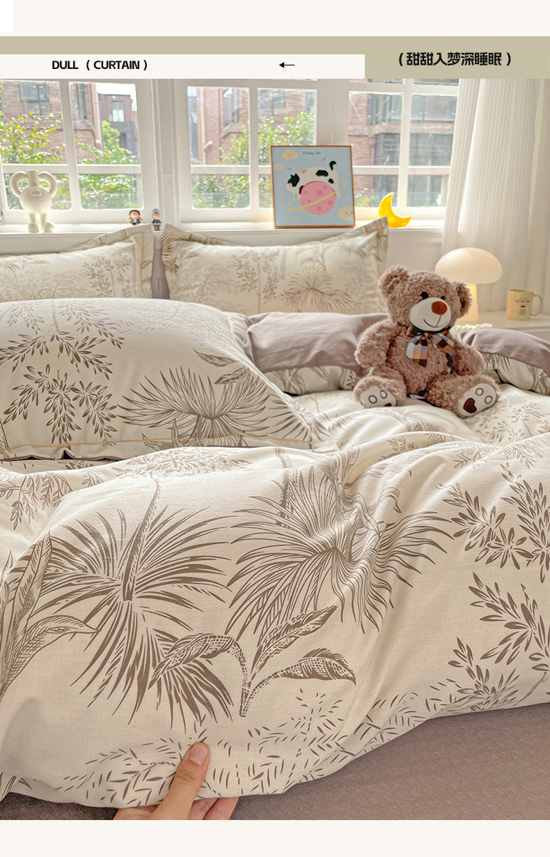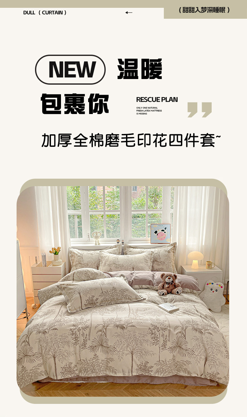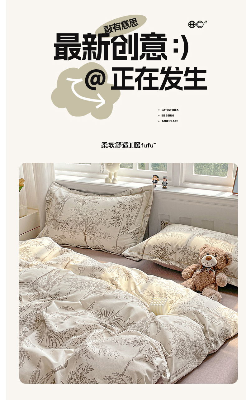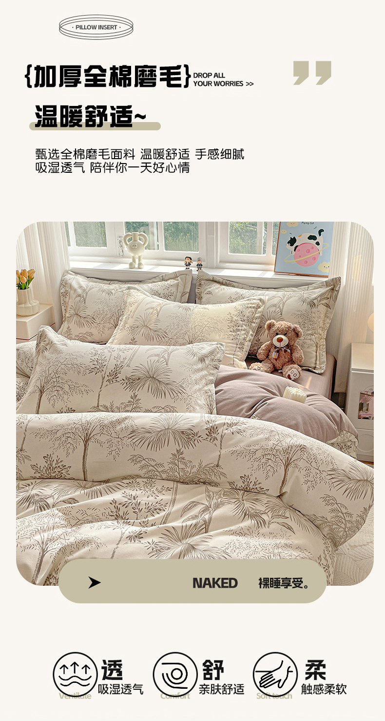 暖芯优选 2025新款直播爆款加厚全棉磨毛四件套喷气印花纯棉(一字绣工艺款)学生三件套10月上新 若影