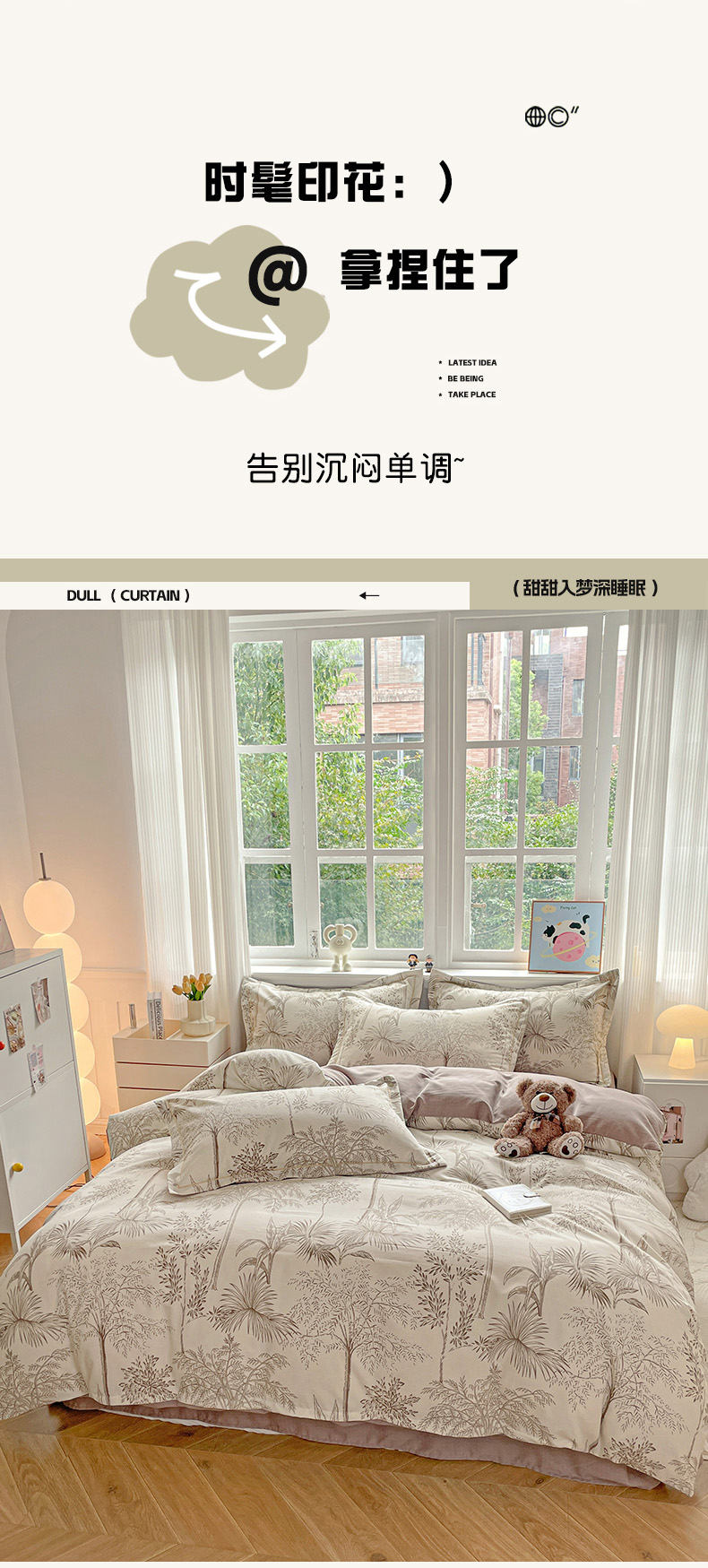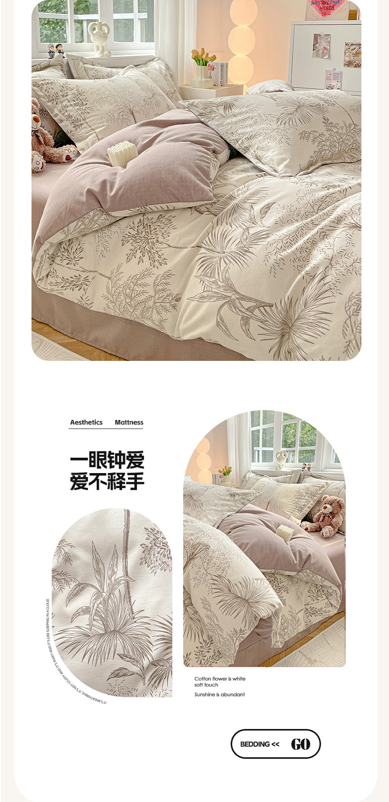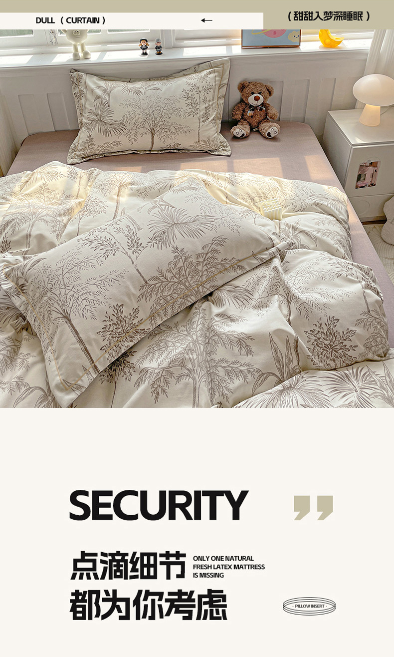 暖芯优选 2025新款直播爆款加厚全棉磨毛四件套喷气印花纯棉(一字绣工艺款)学生三件套10月上新 若影