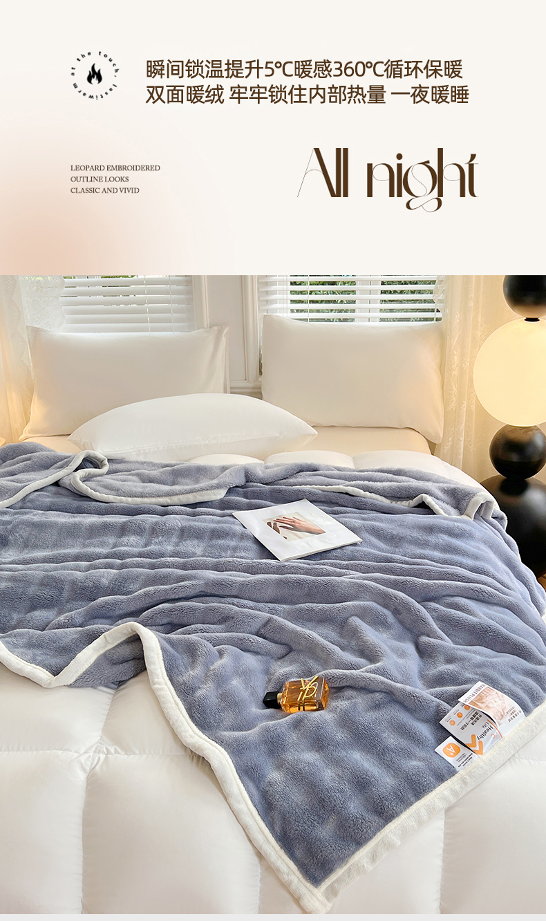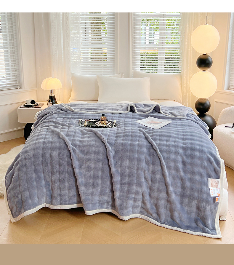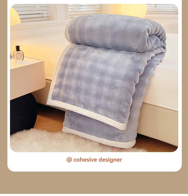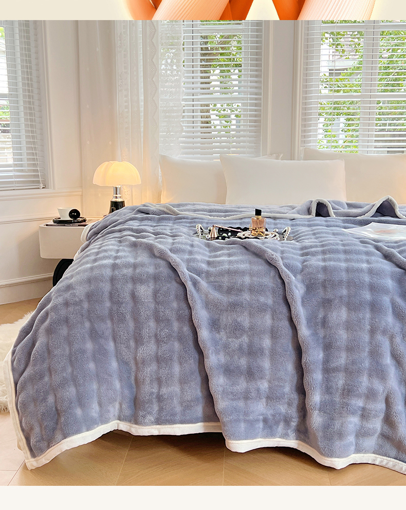 悦织湾家纺 2025新款托卡斯仿兔毛绒毛毯第三批绸布包边新款加厚保暖多功能毯子保暖盖毯 雾霾蓝