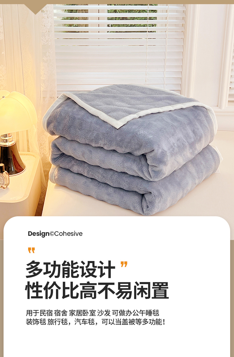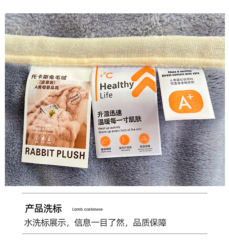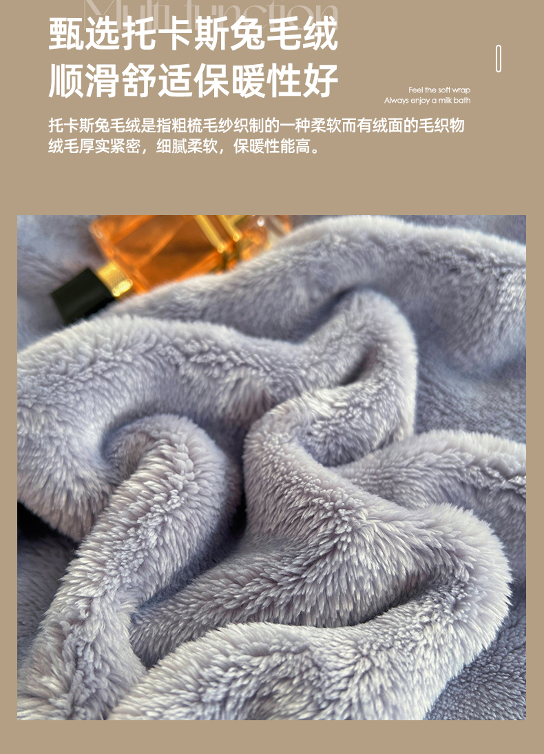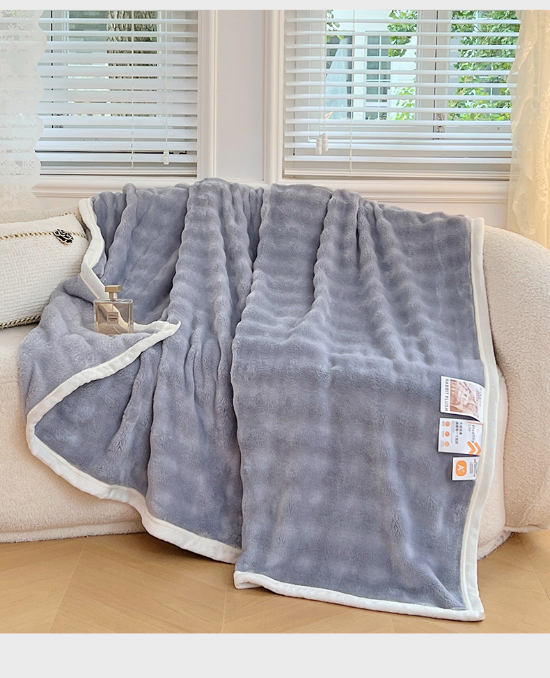 商品名称:悦织湾家纺 2025新款托卡斯仿兔毛绒毛毯第三批绸布包边新款加厚保暖多功能毯子保暖盖毯 雾霾蓝
