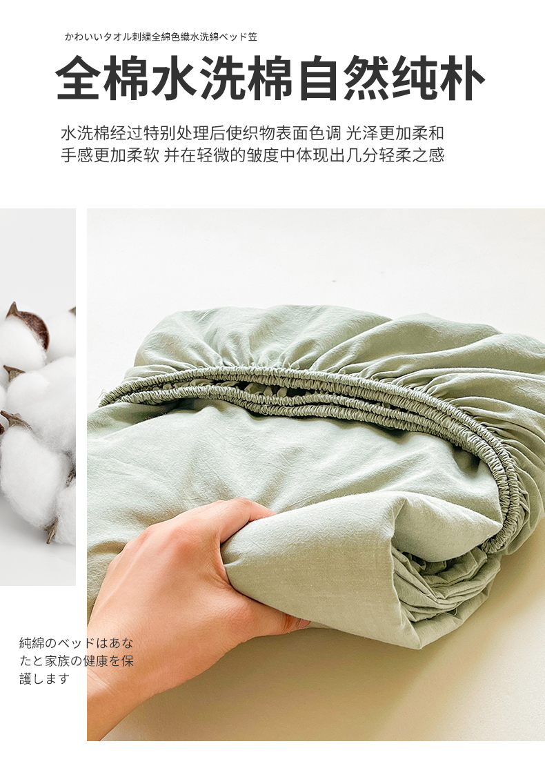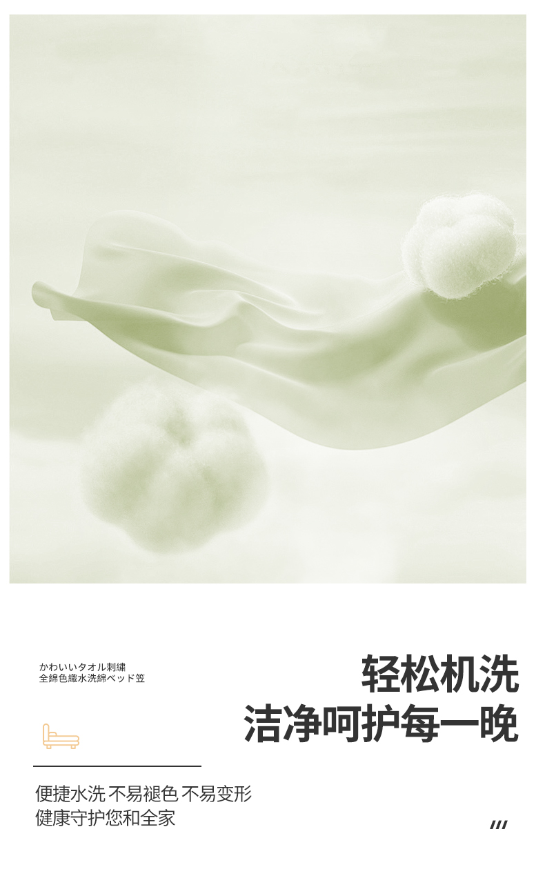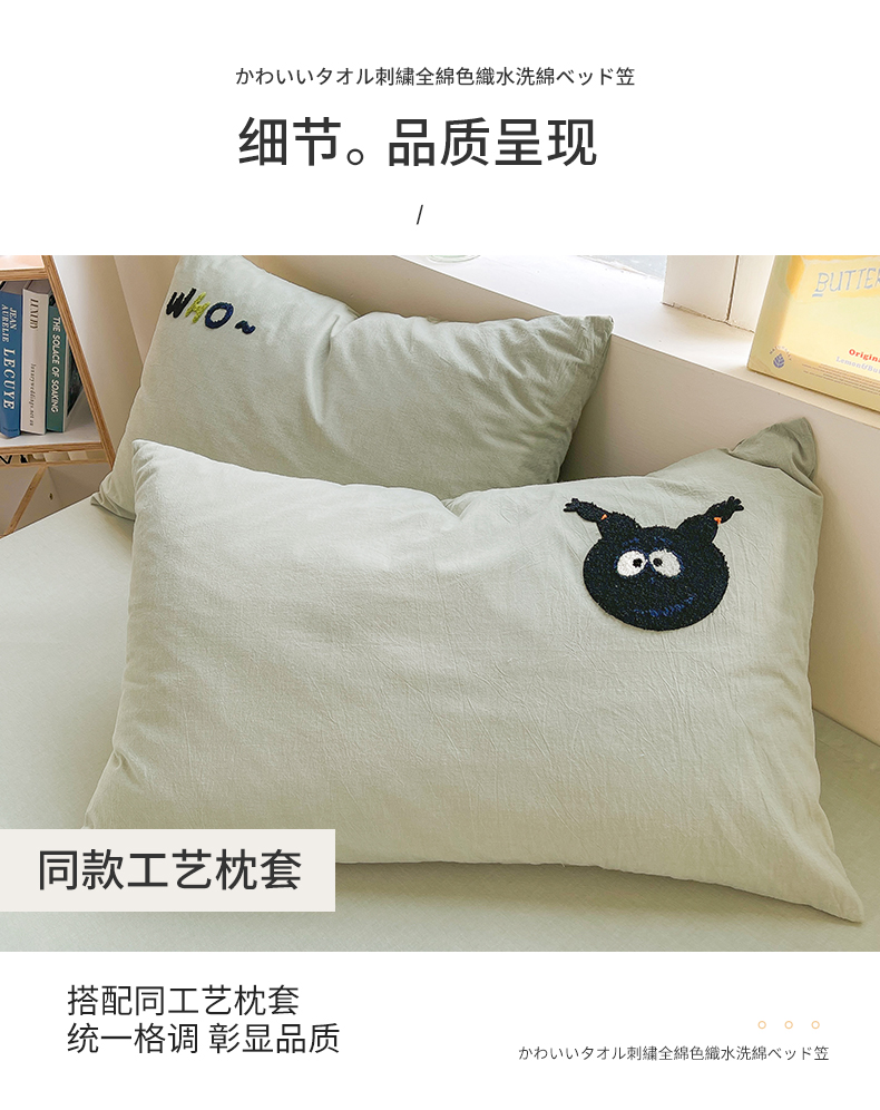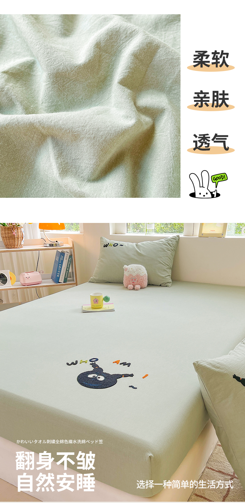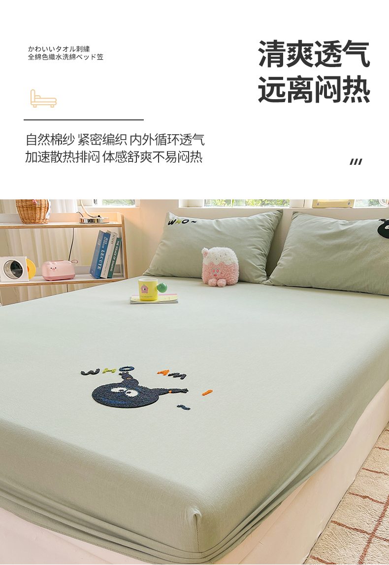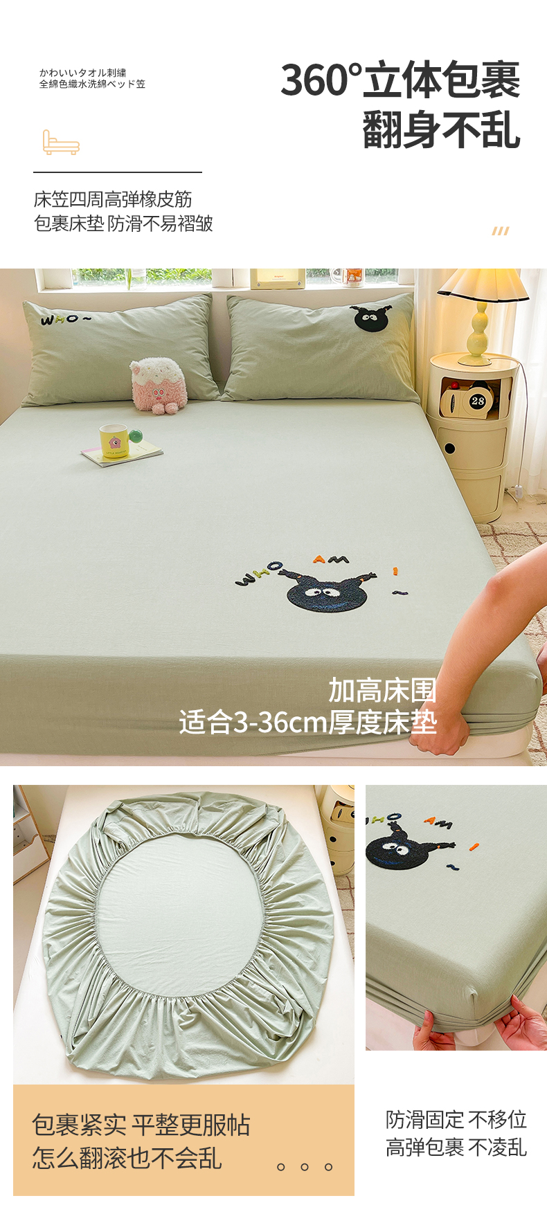 商品名称:3C 2024新款全棉色织水洗棉可爱毛巾绣床笠 黑乖乖-绿