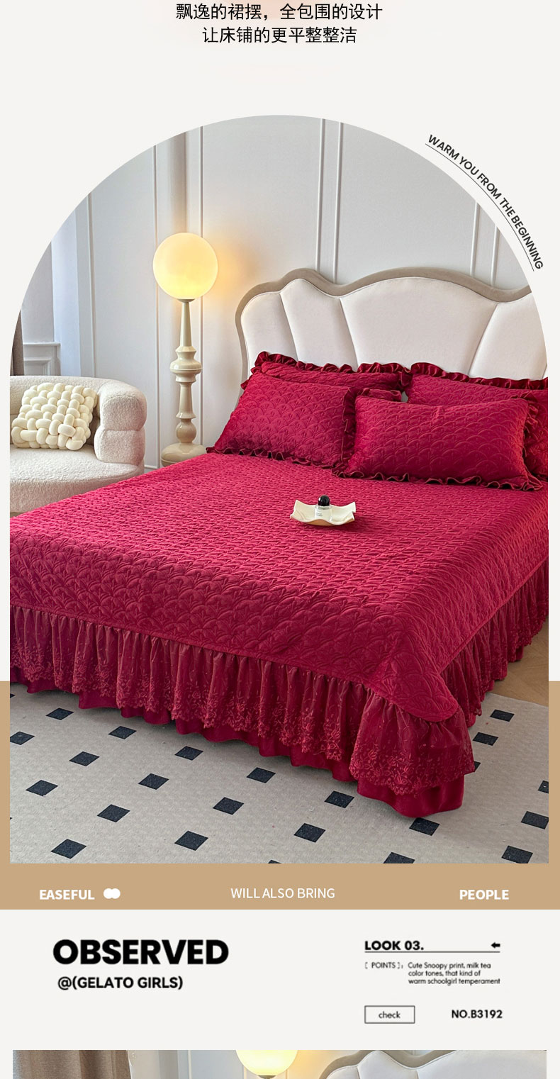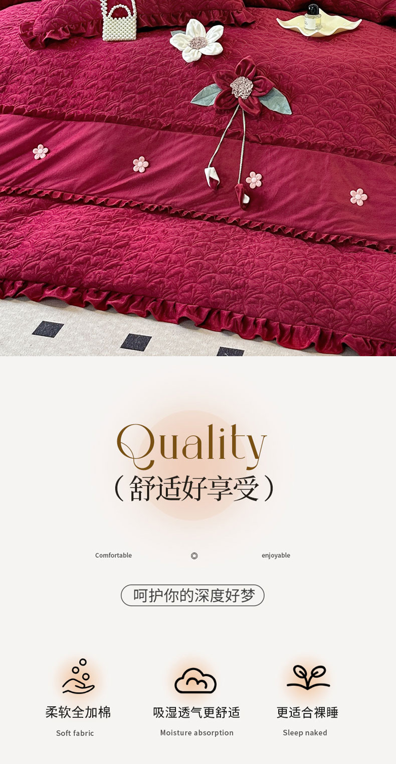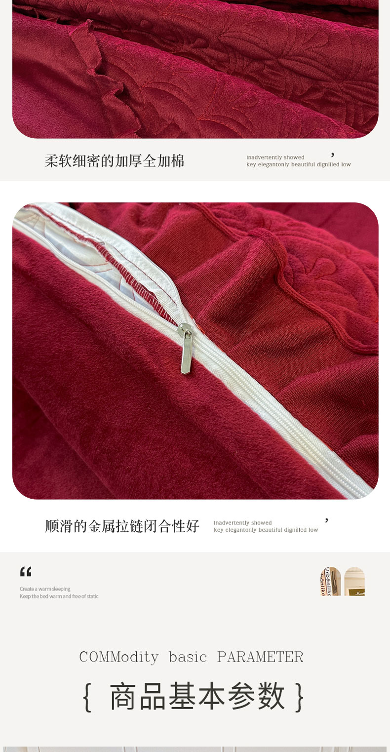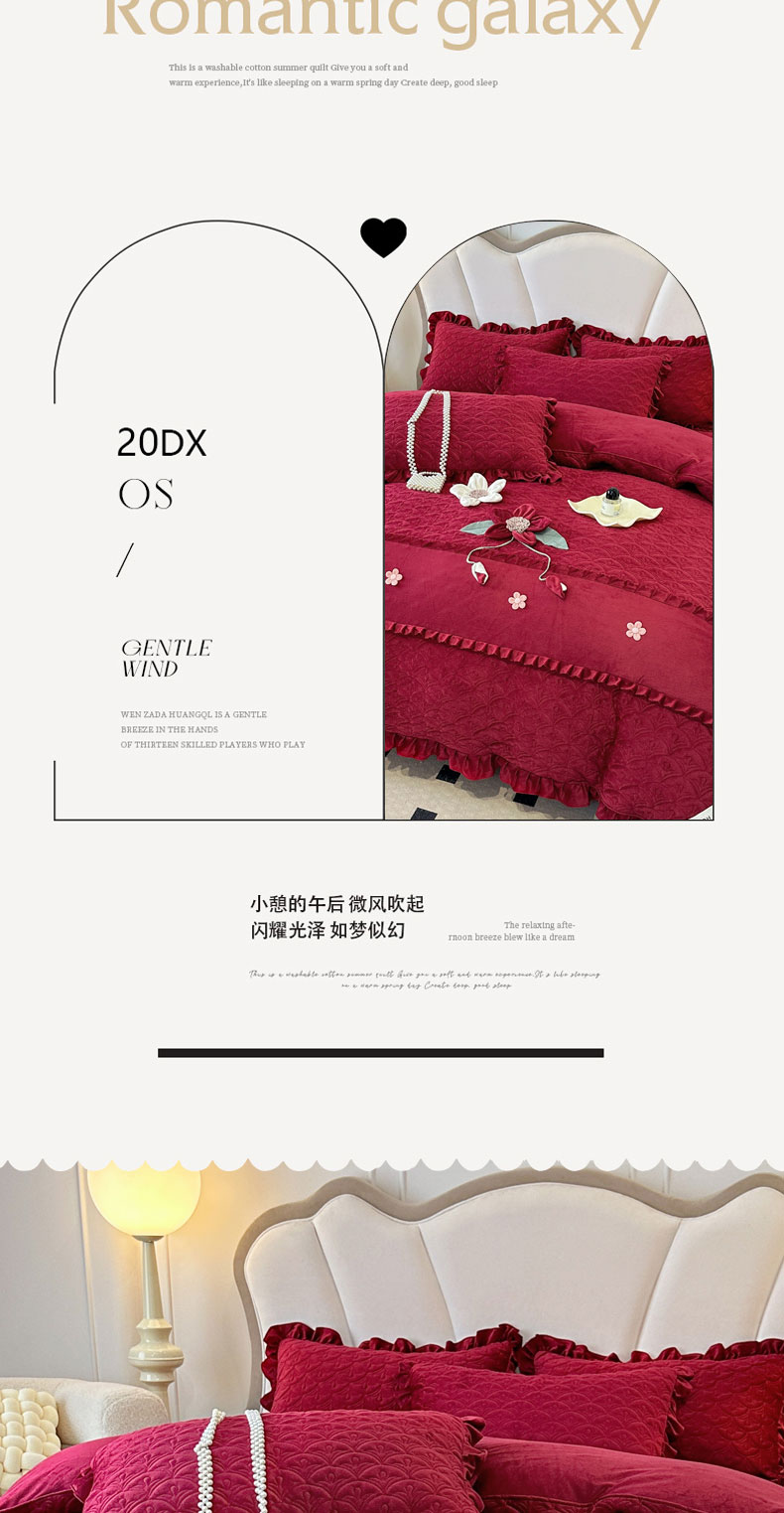 商品名称:兴美佳家纺 2024新款水晶绒全加棉床盖四件套-冬之恋 冬之恋-酒红