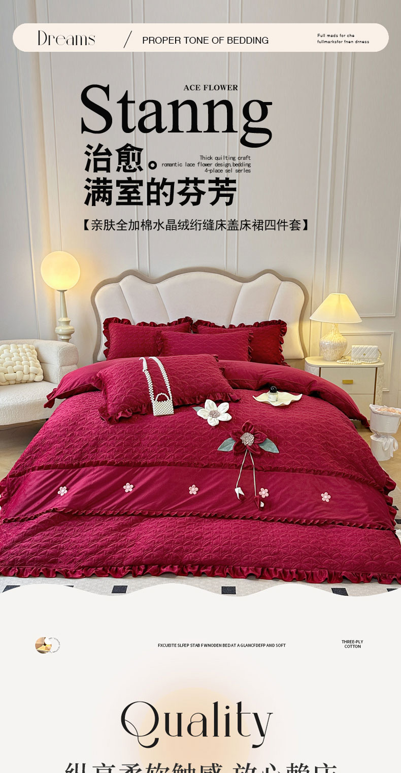 (总)兴美佳家纺 2024新款水晶绒全加棉床盖四件套-冬之恋,冬之恋-粉玉,冬之恋-豆沙,冬之恋-酒红,冬之恋-绿色,冬之恋-米黄,冬之恋-紫色,冬之恋-橘色