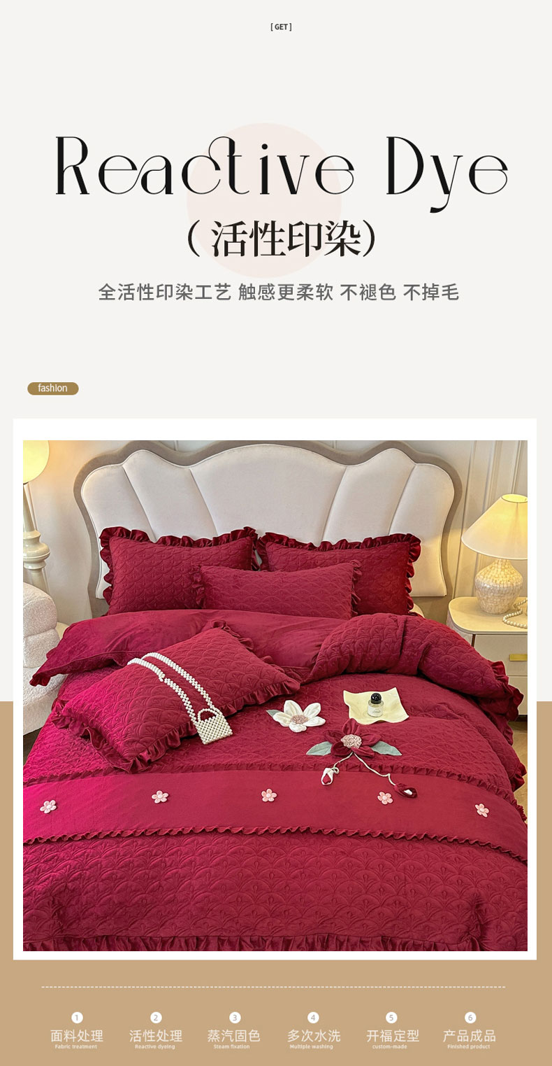 (总)兴美佳 2024新款水洗棉亲肤绗缝四件套--初恋,初恋-本白,初恋-大红,初恋-米黄,初恋-藕粉,初恋-浅兰,初恋-浅绿