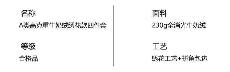 (总)子曰 2025新款高克重牛奶绒轻奢刺绣撞色拼接工艺款四件套-安娜,安娜-粉,安娜-灰,安娜-橘,安娜-绿,安娜-紫