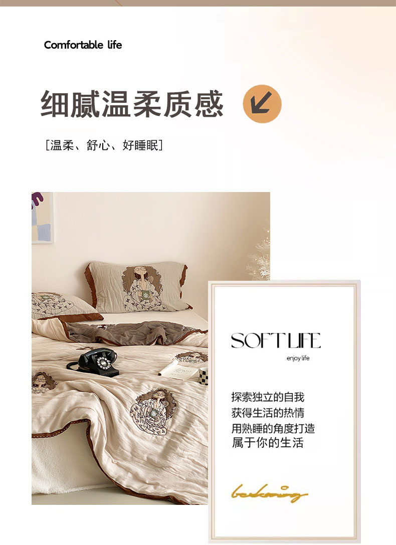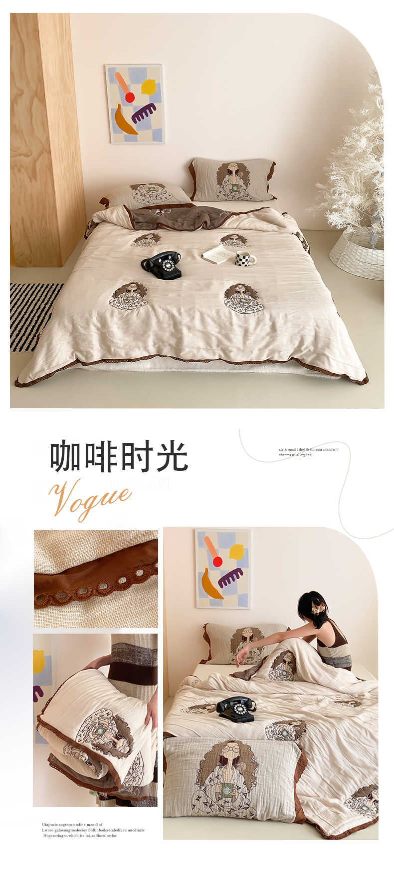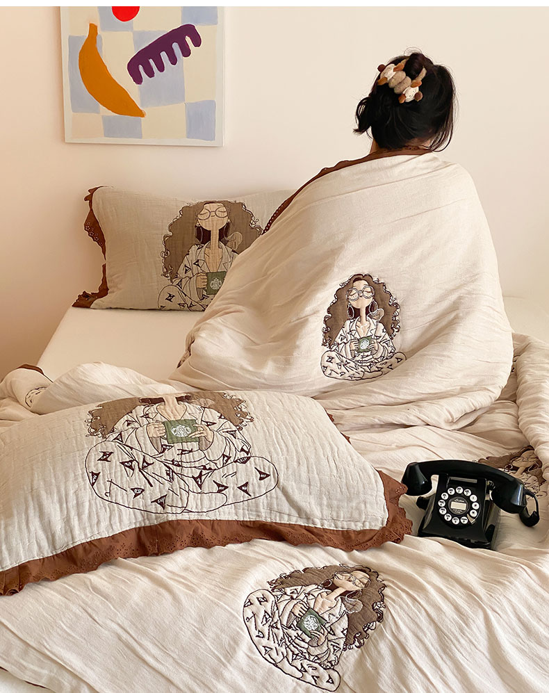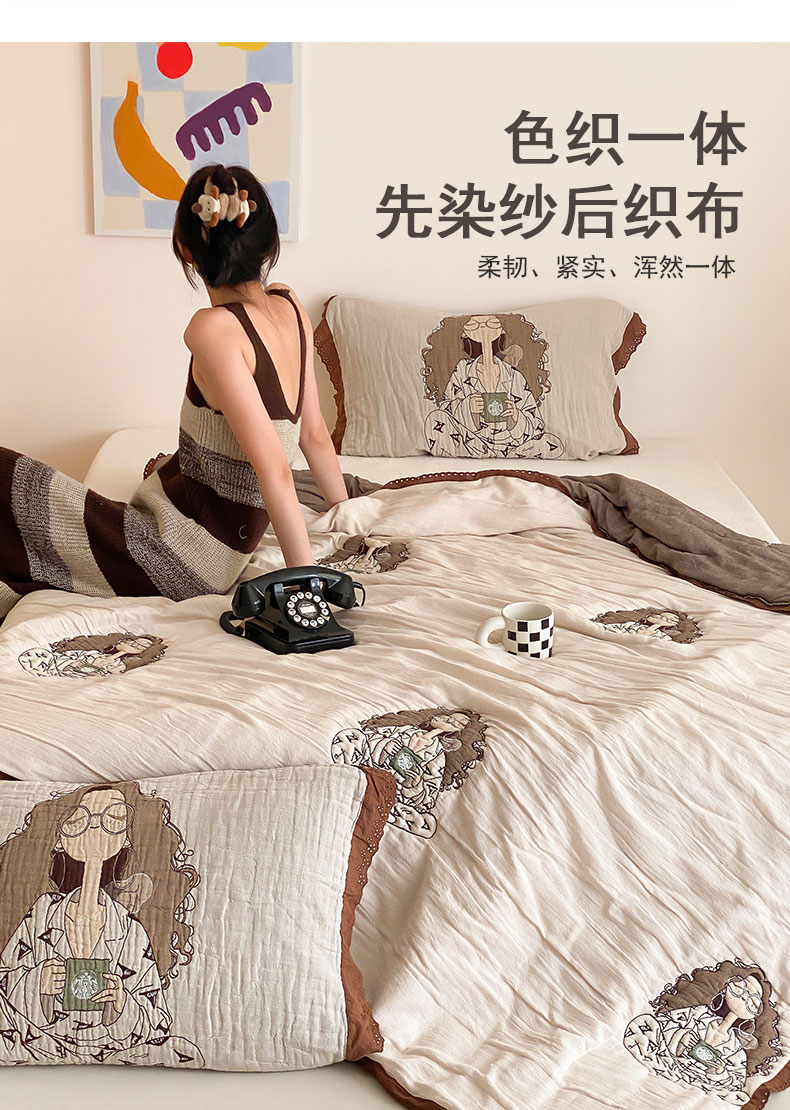 商品名称:麻依 2024新款十层纱布泡芙被纱布被子秋冬被 咖啡时光