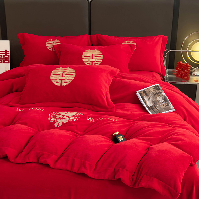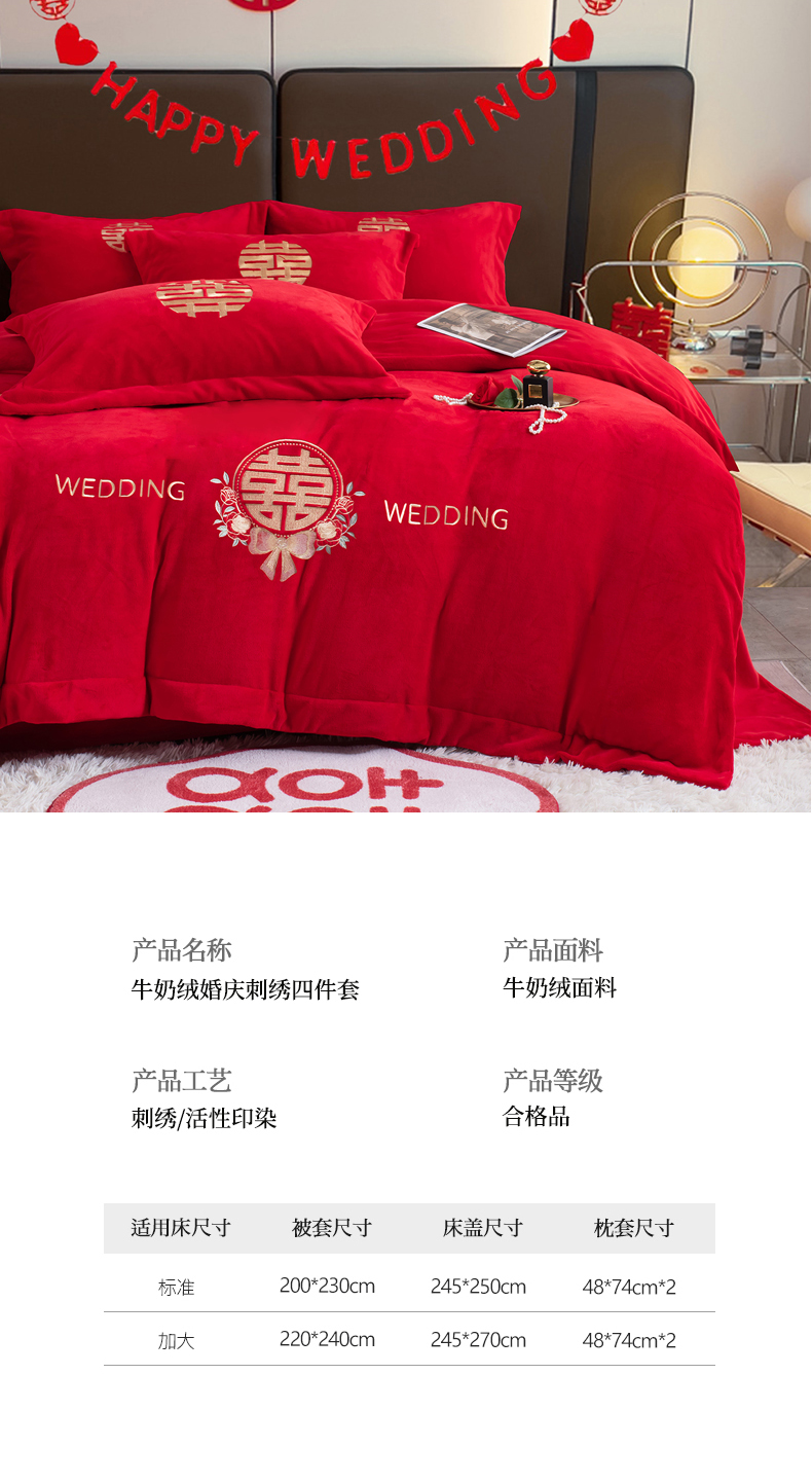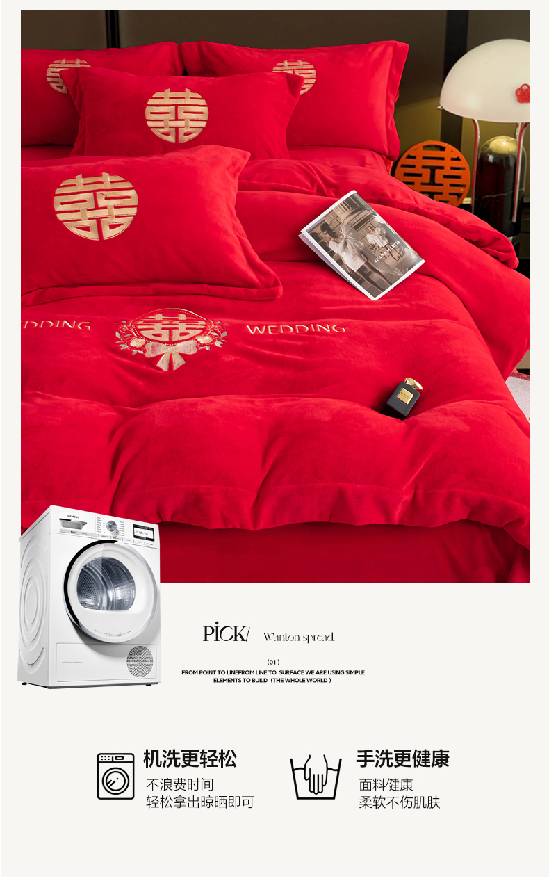 (总)卓缦家纺 2025新款牛奶绒豆豆绒婚庆四件套,双喜临门,欢欢喜喜,龙悦凤鸣,牡丹之恋,心语心愿