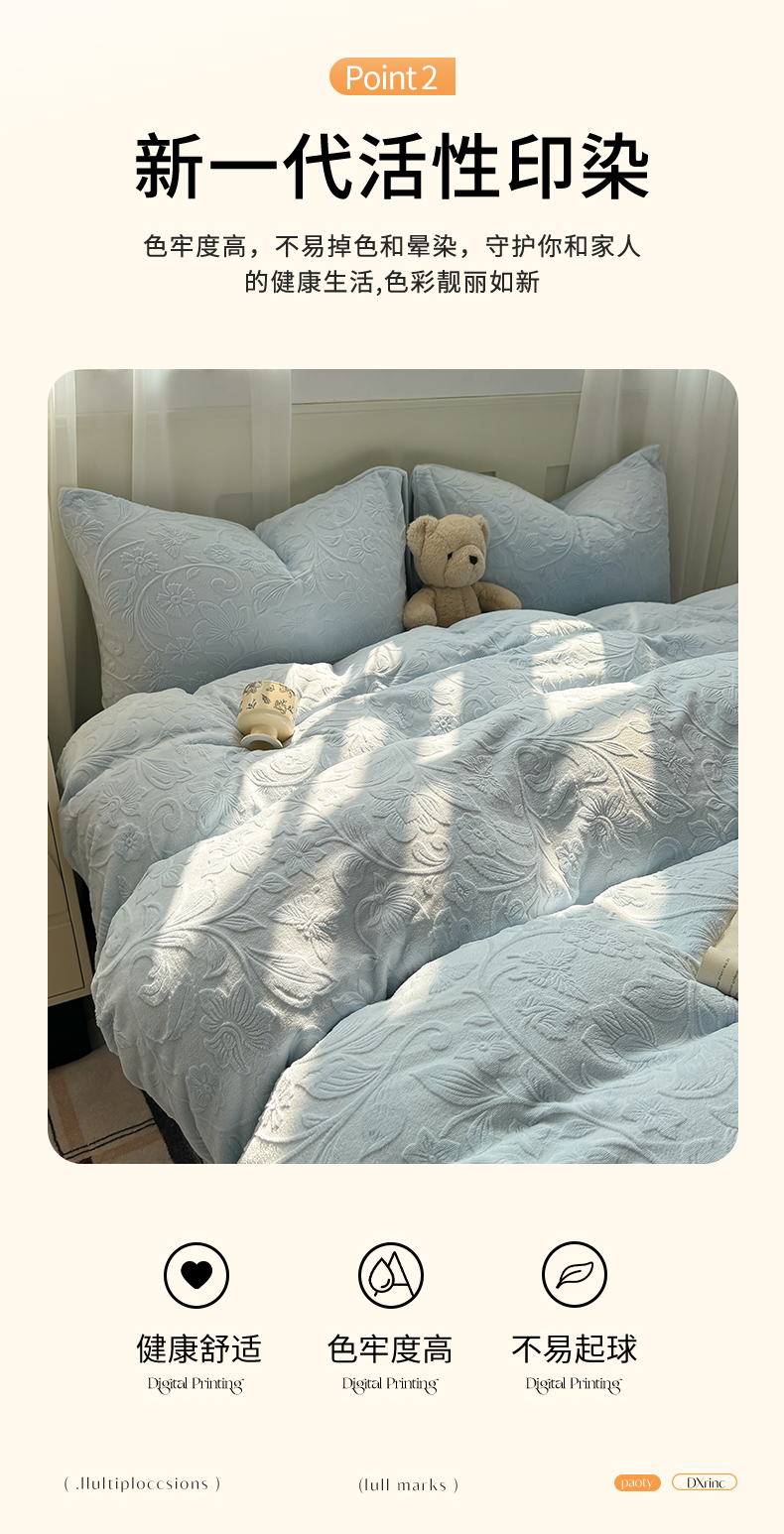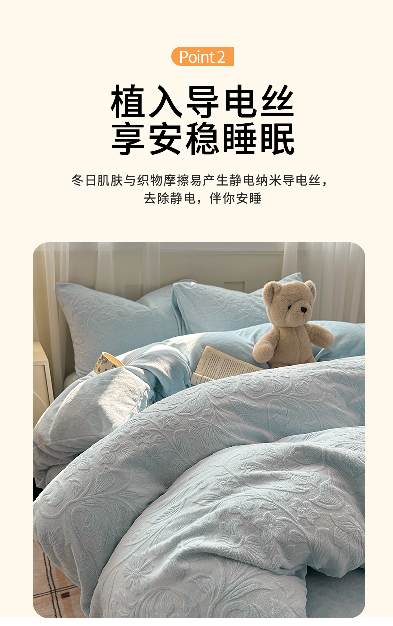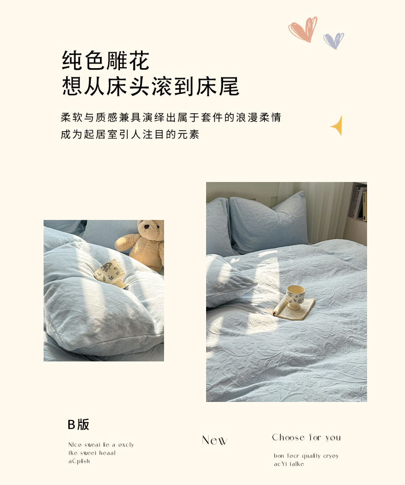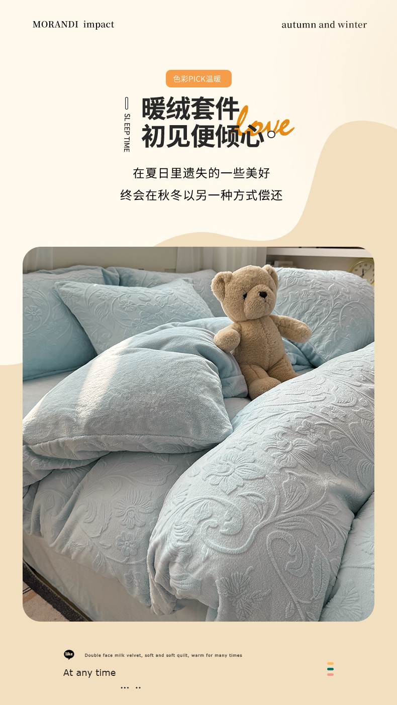 当前位置: 91家纺网 > 商品网购 > 床品套件 > 四件套 > 牛奶绒四件套 > 繁花家居 2024新款雕花绒牛奶绒静谧烂花系列四件套 风铃花