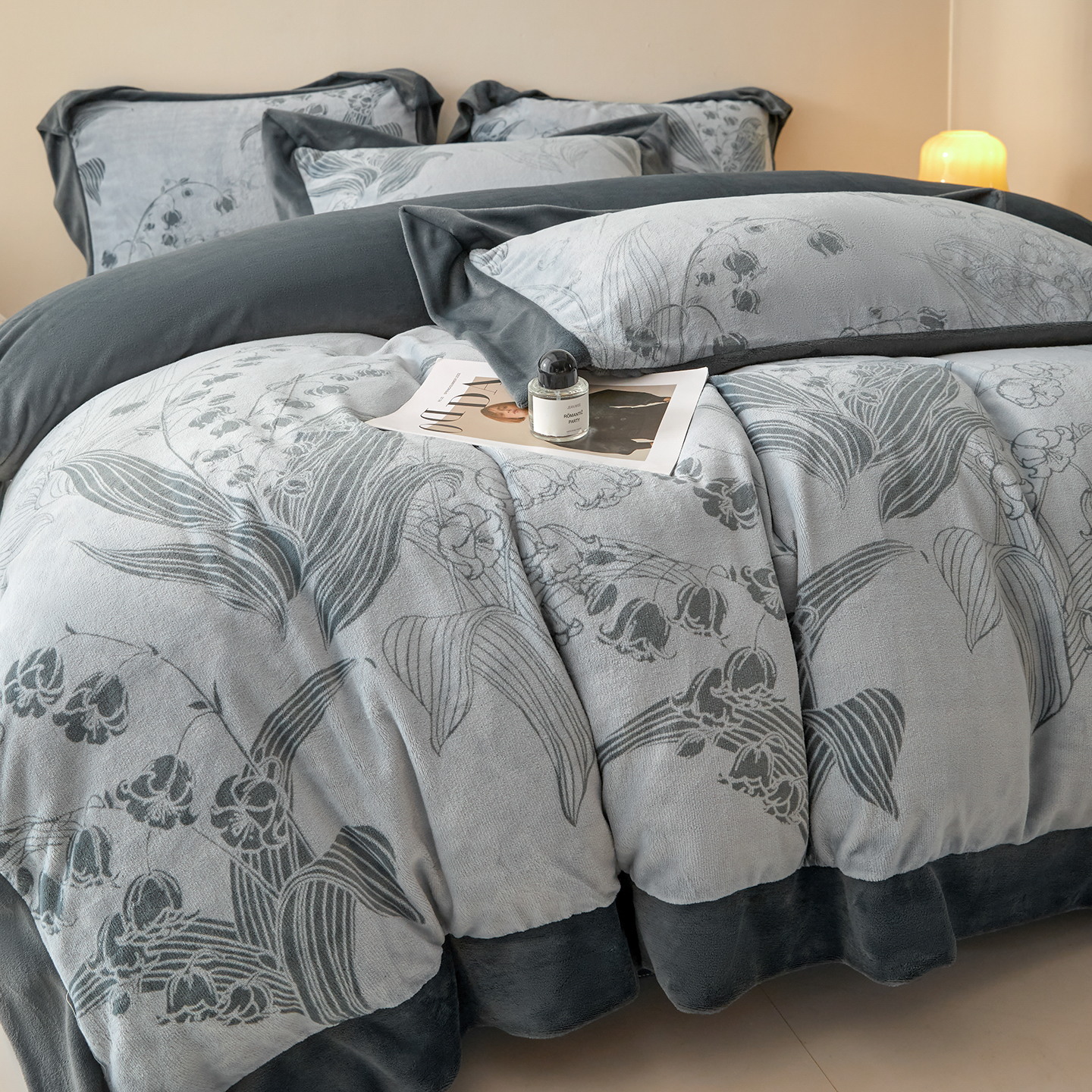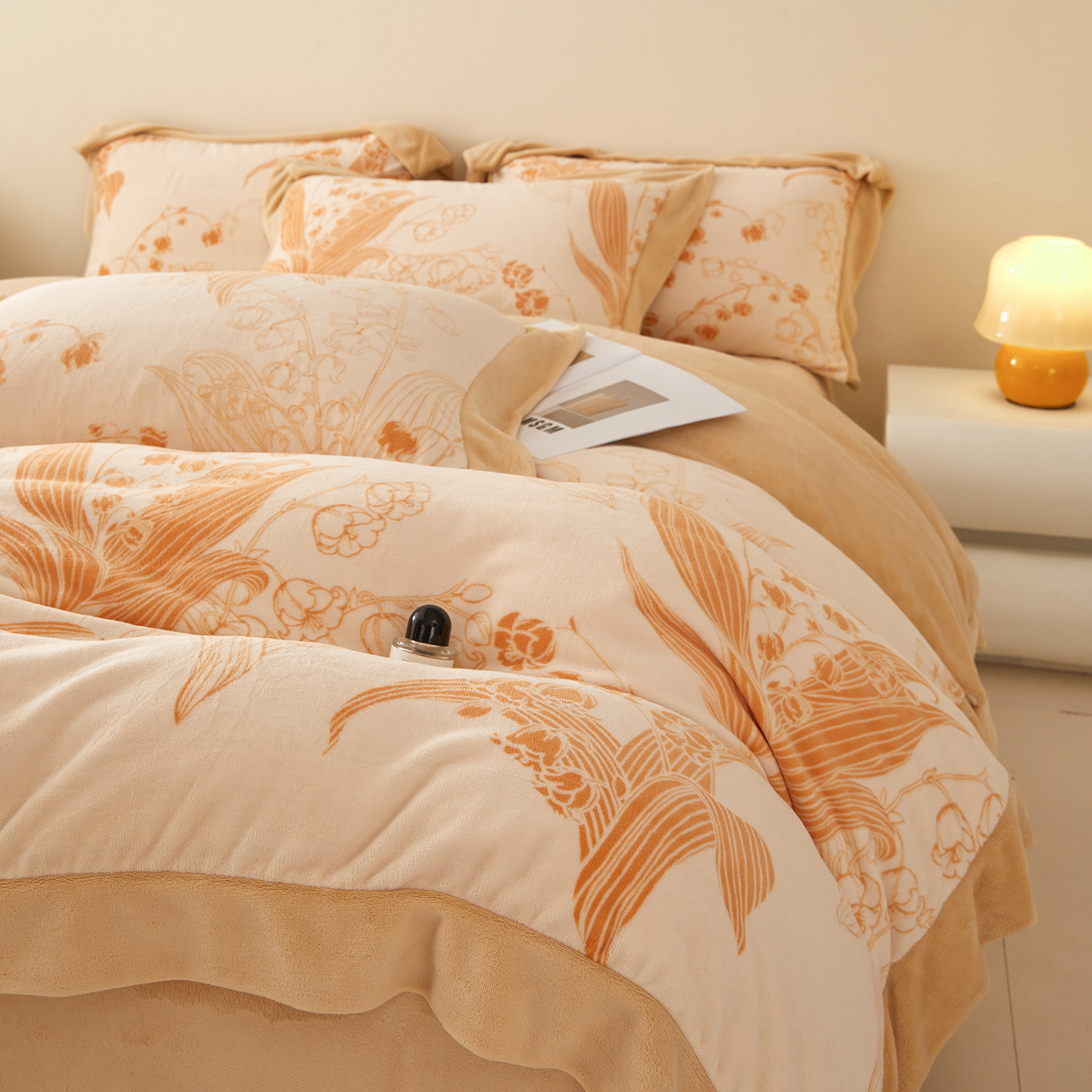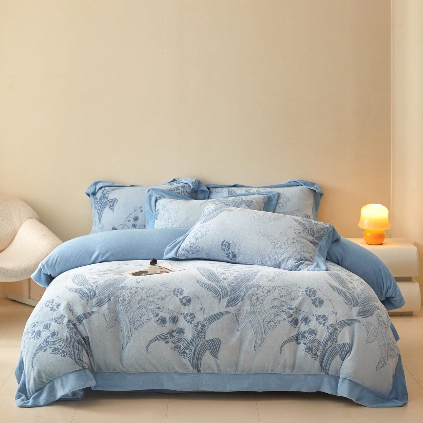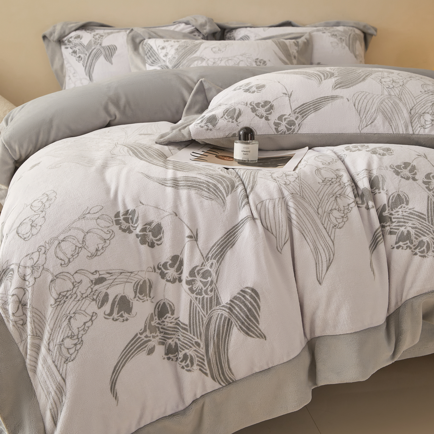 商品名称:(总)控价 2025新款高克重240克A类全消光印花牛奶绒四件套-铃兰