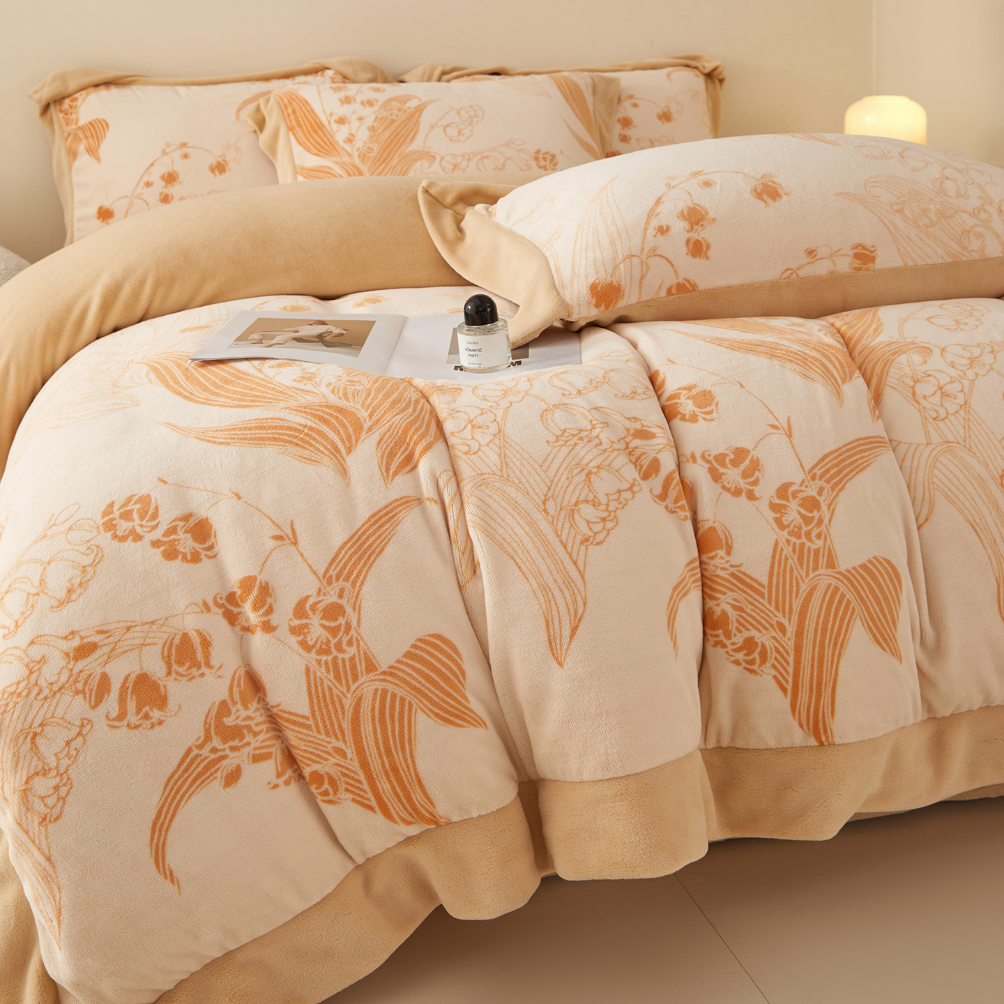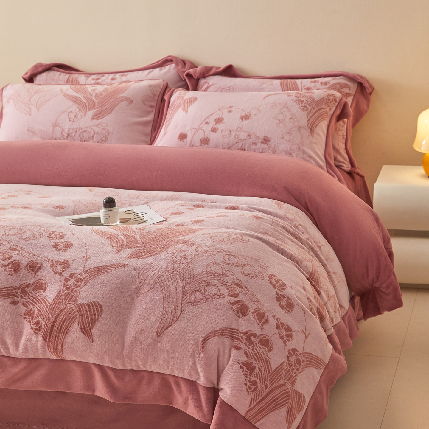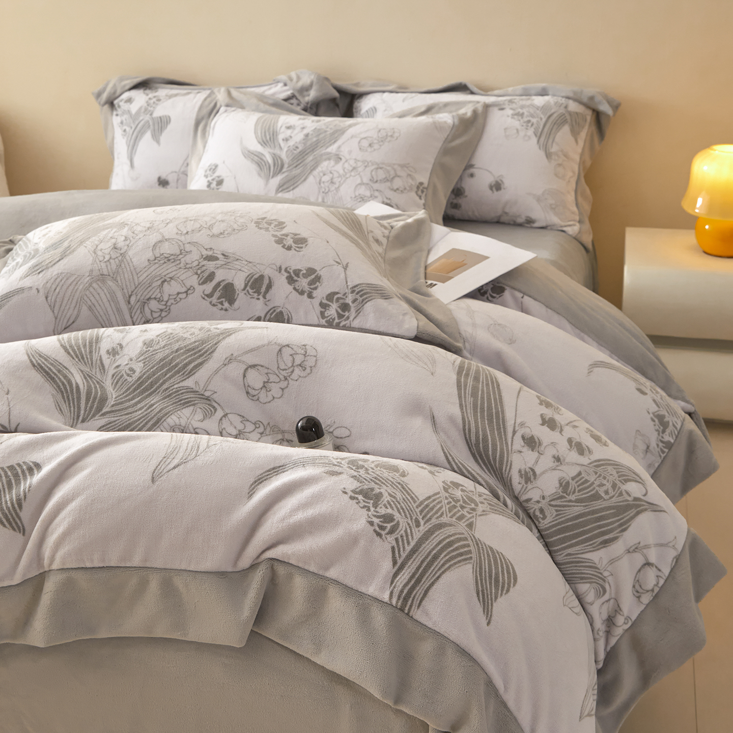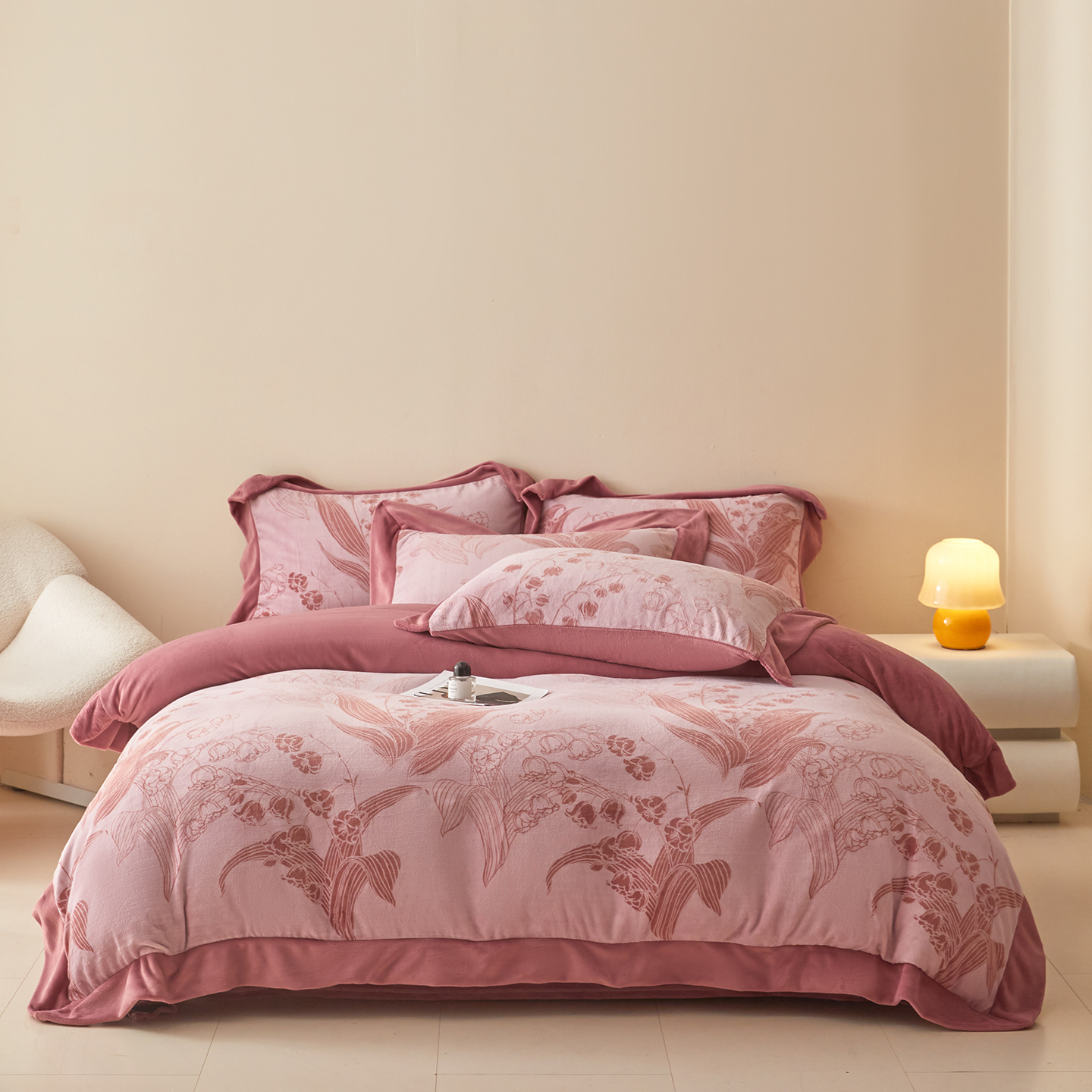 商品名称:(总)控价 2025新款高克重240克A类全消光印花牛奶绒四件套-铃兰