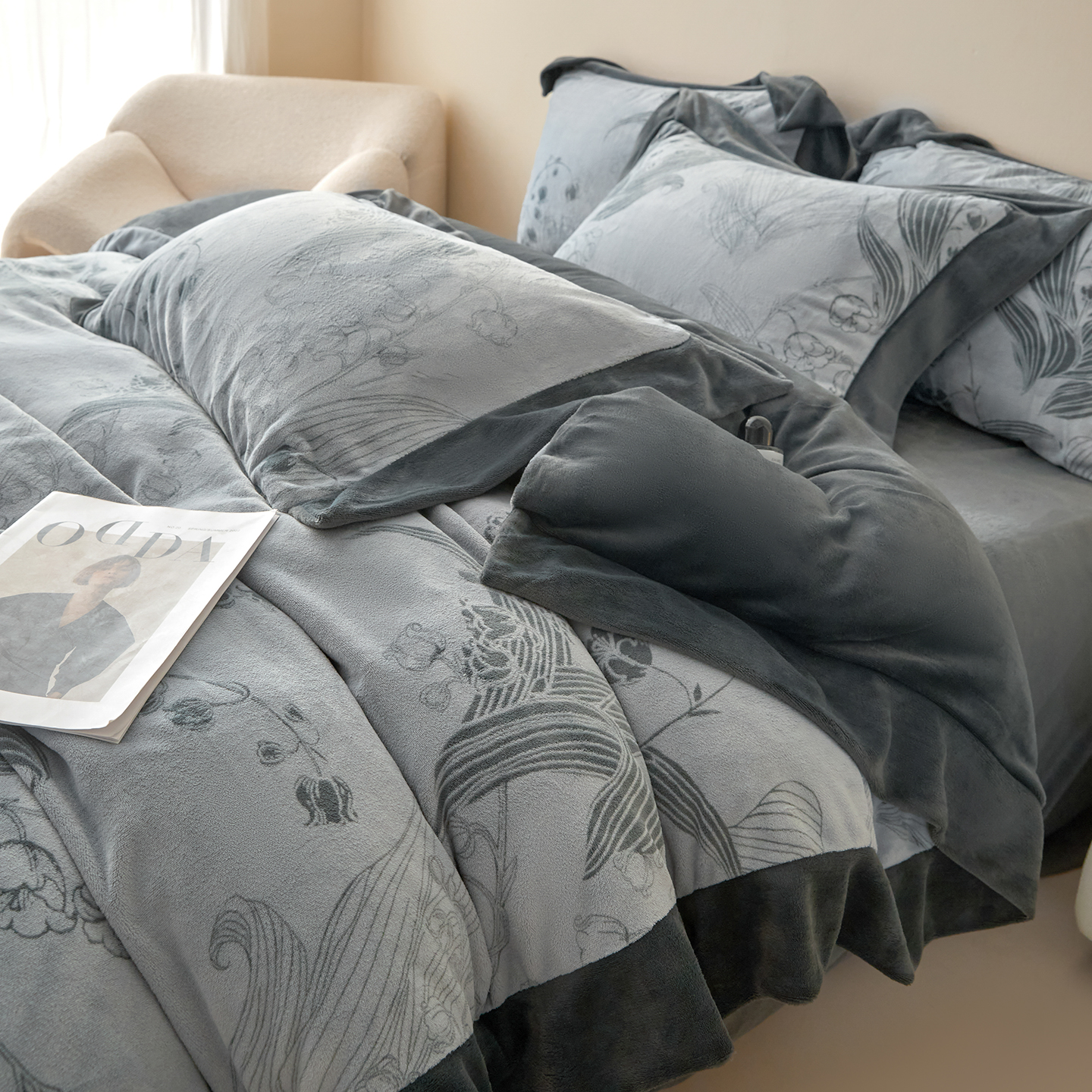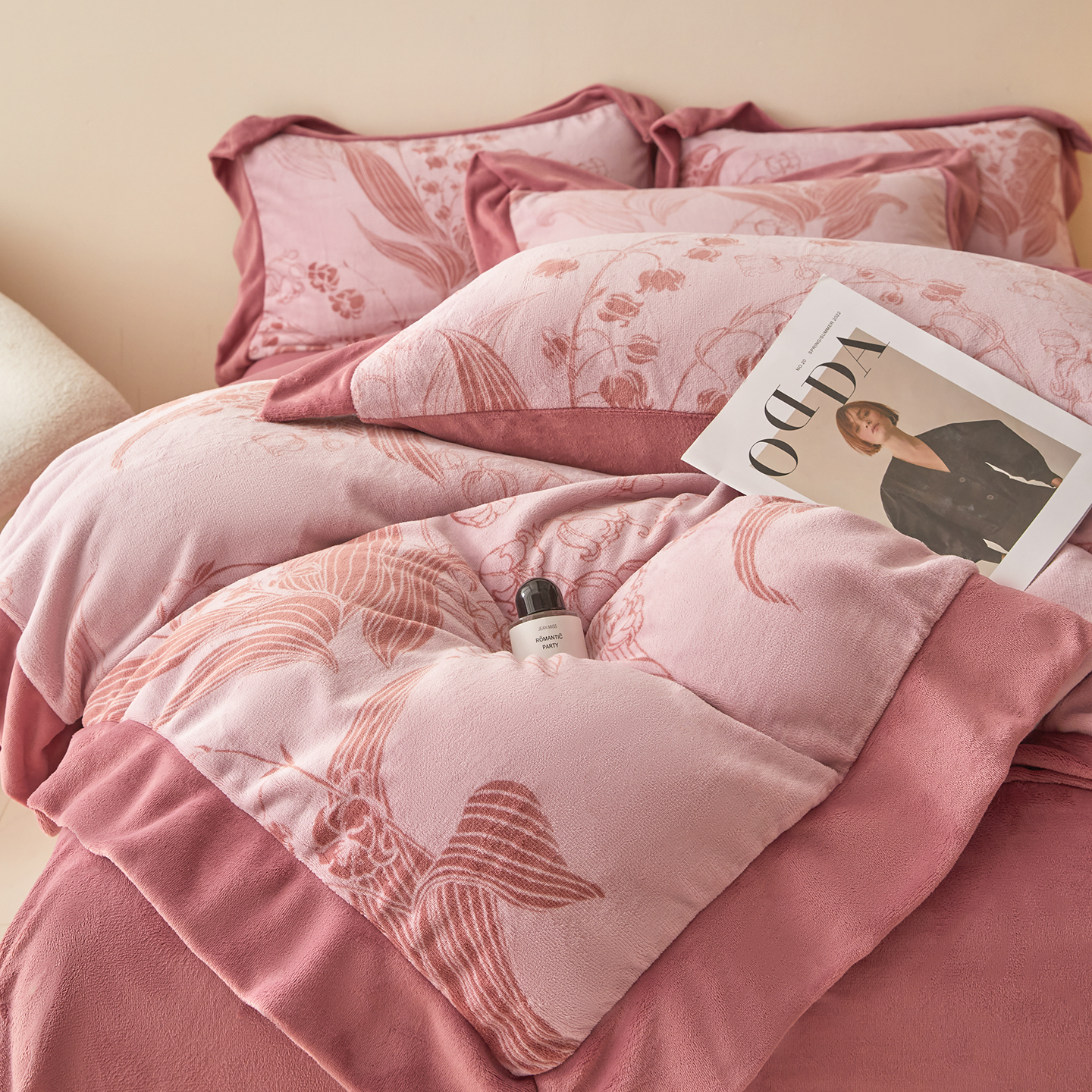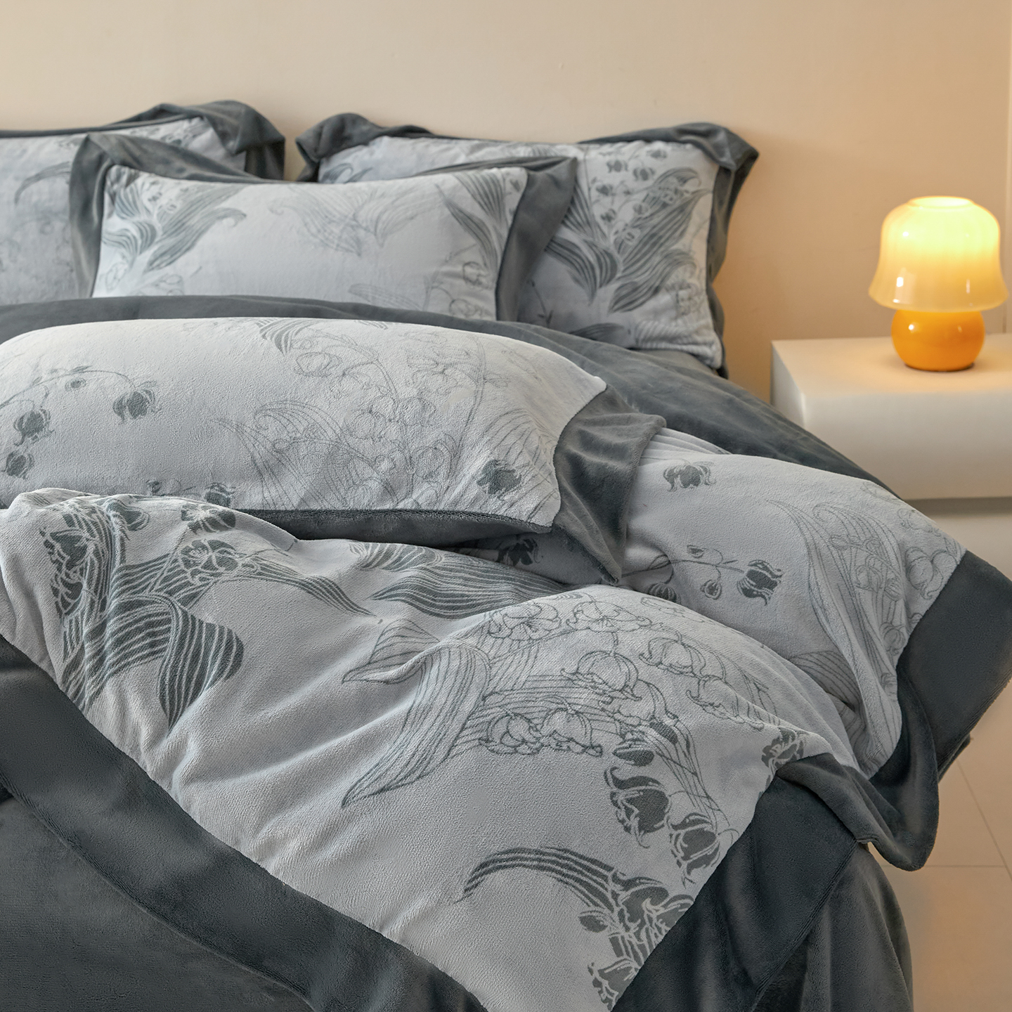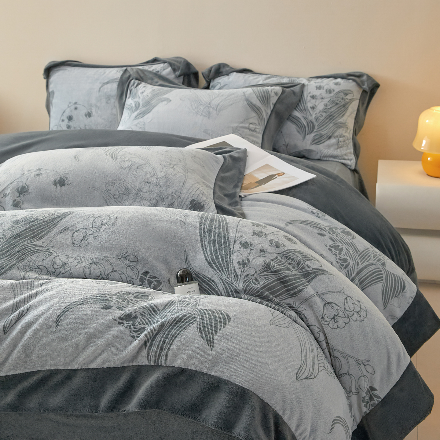 商品名称:(总)控价 2025新款高克重240克A类全消光印花牛奶绒四件套-铃兰