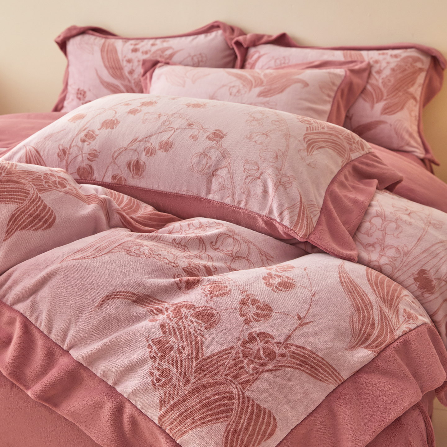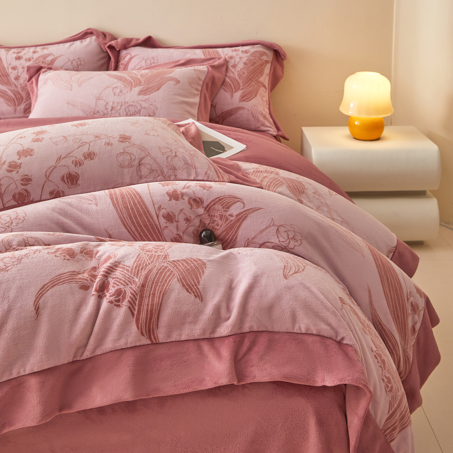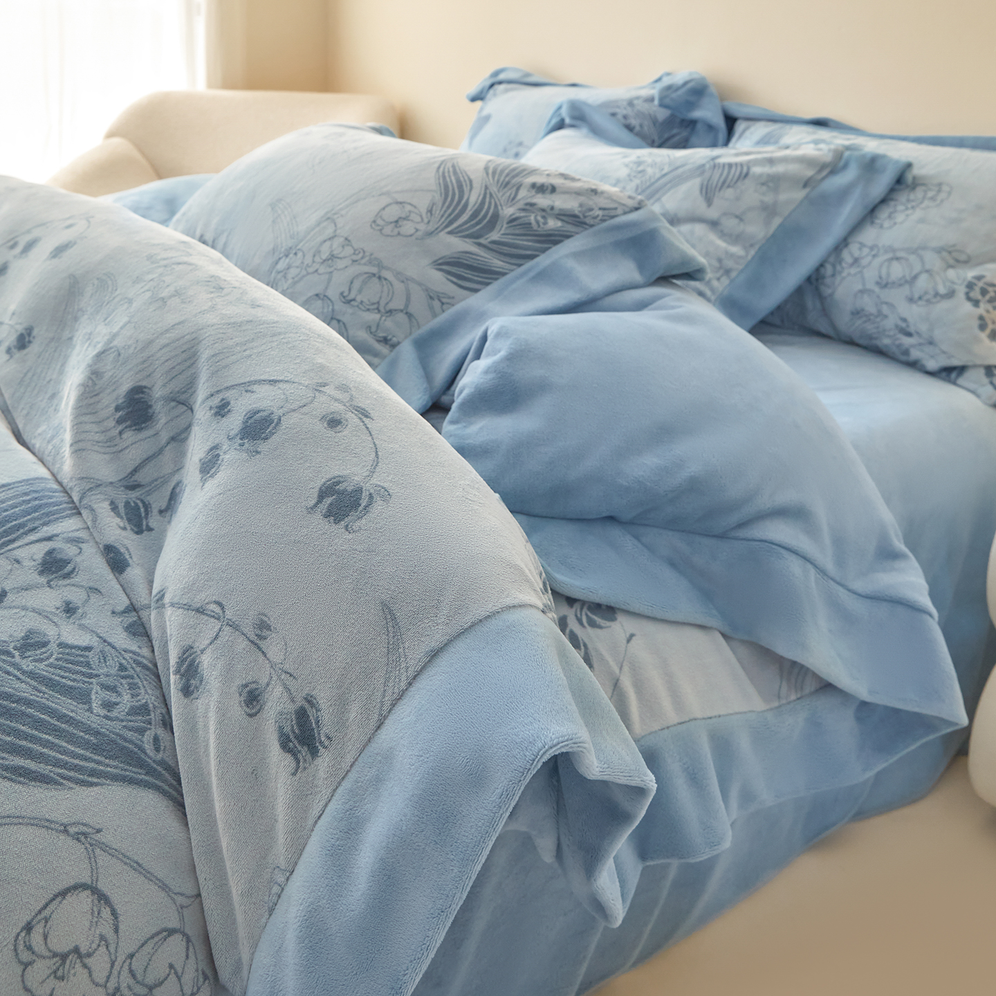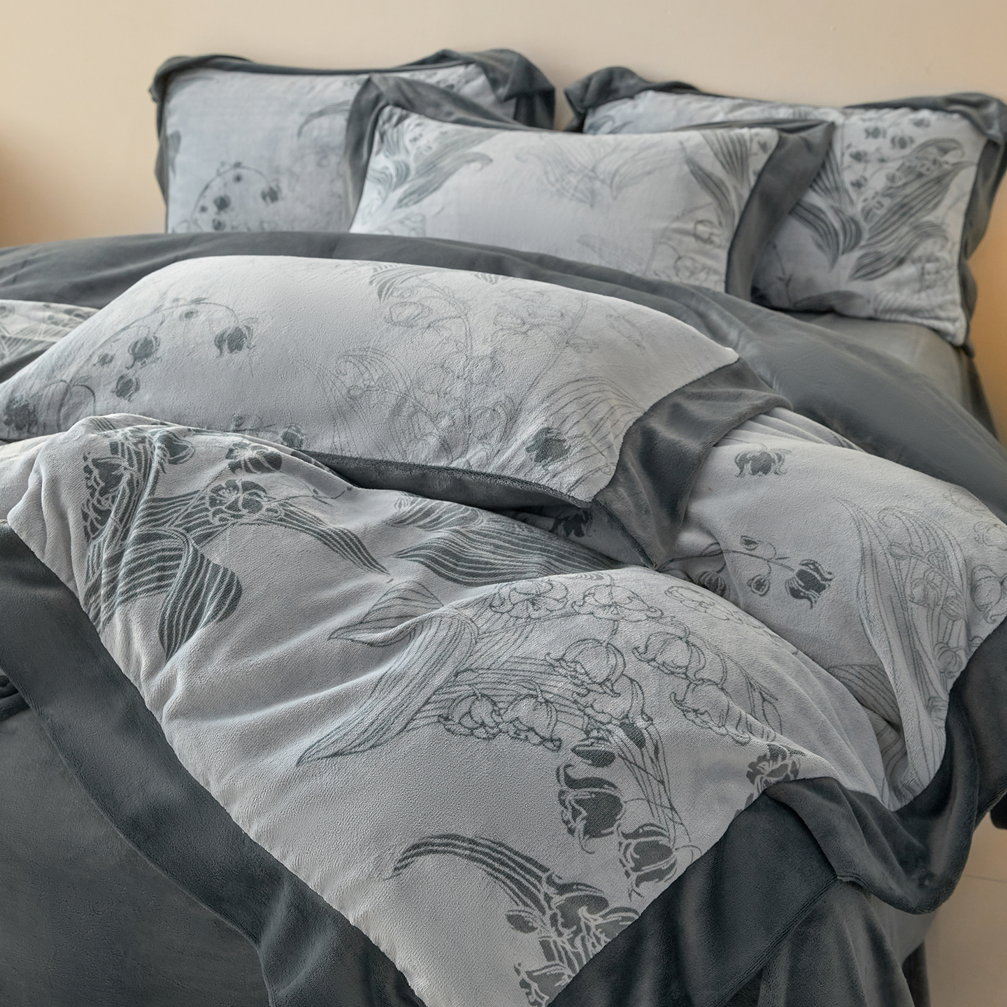 商品名称:(总)控价 2025新款高克重240克A类全消光印花牛奶绒四件套-铃兰