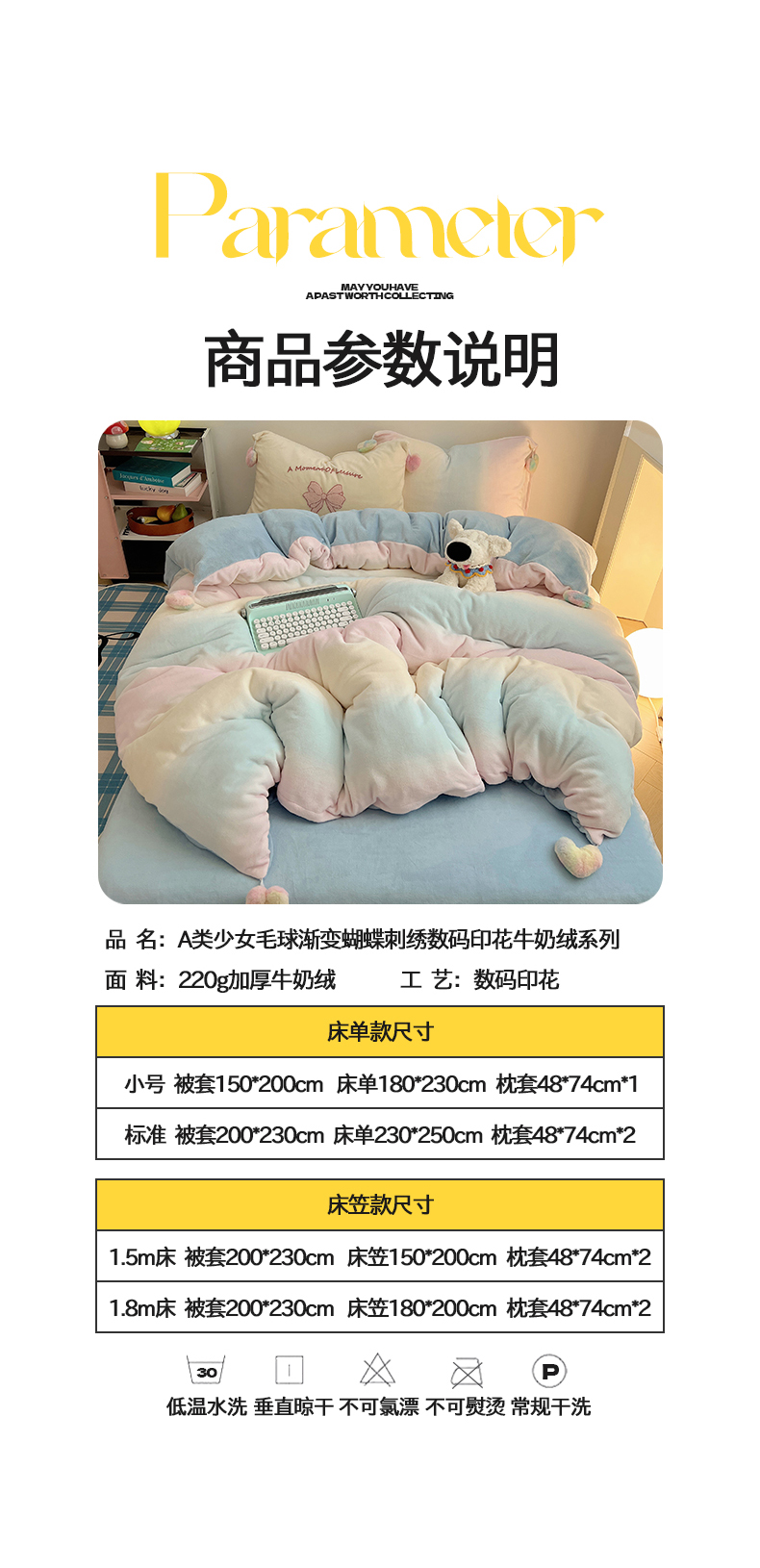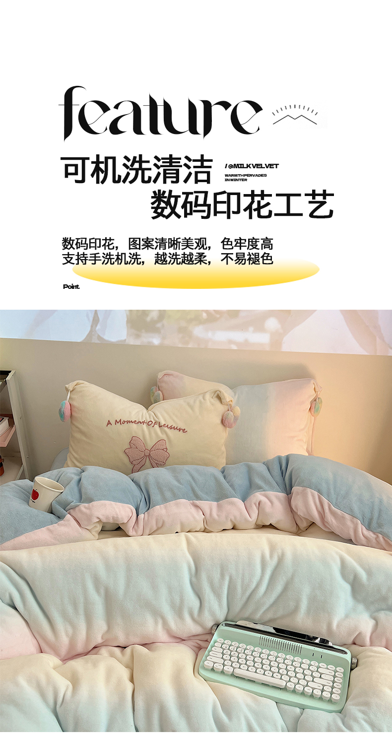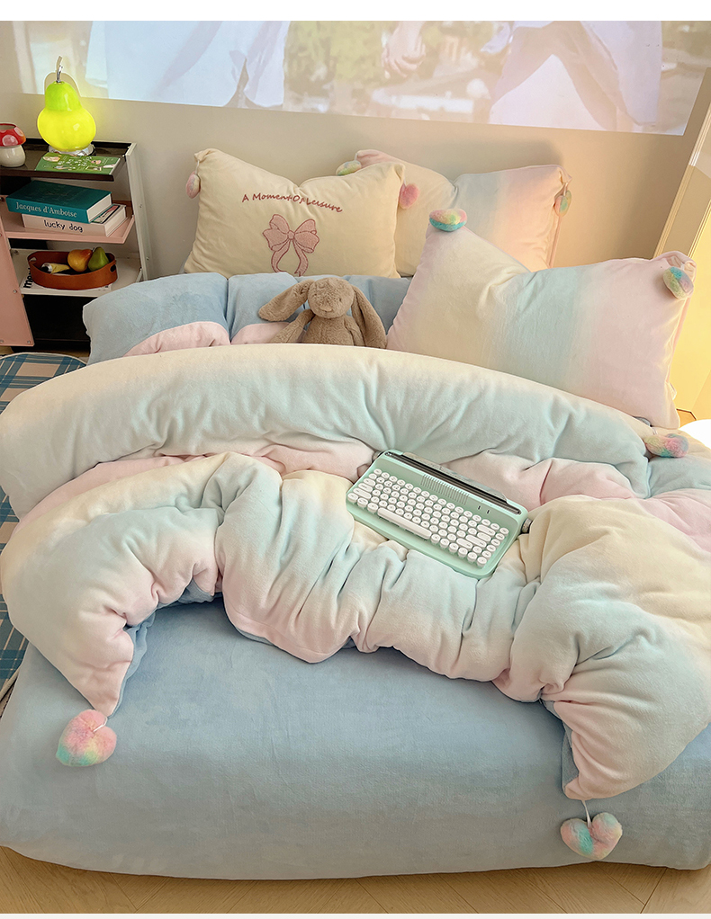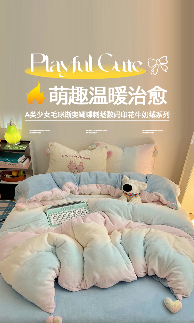 当前位置: 91家纺网 > 商品网购 > 床品套件 > 四件套 > 牛奶绒四件套 > 桃子家居 2024新款A类少女毛球工艺渐变蝴蝶刺绣数码印花加厚牛奶绒四件套 绒毛球蝴蝶-渐变粉蓝黄