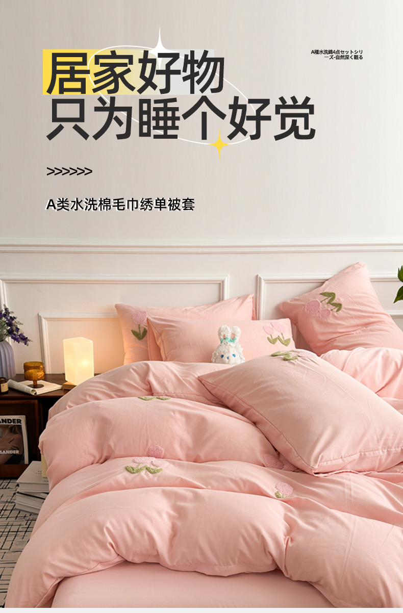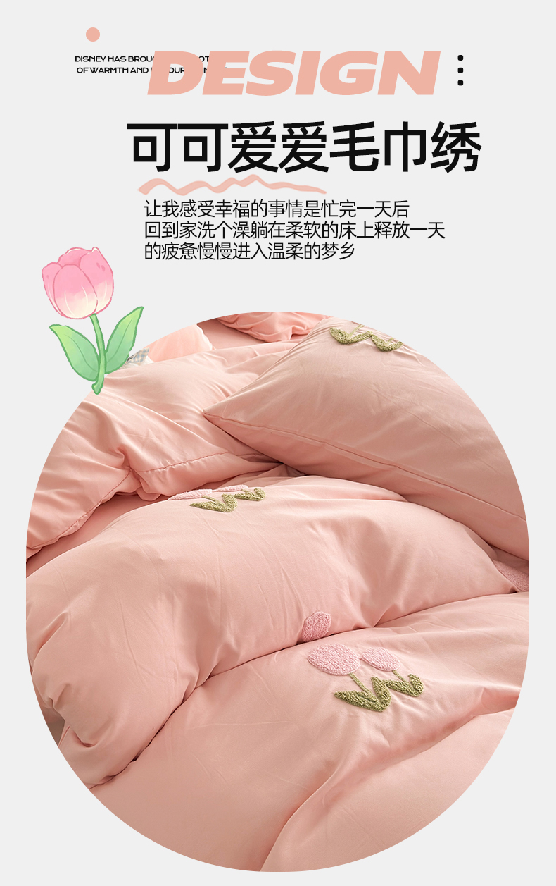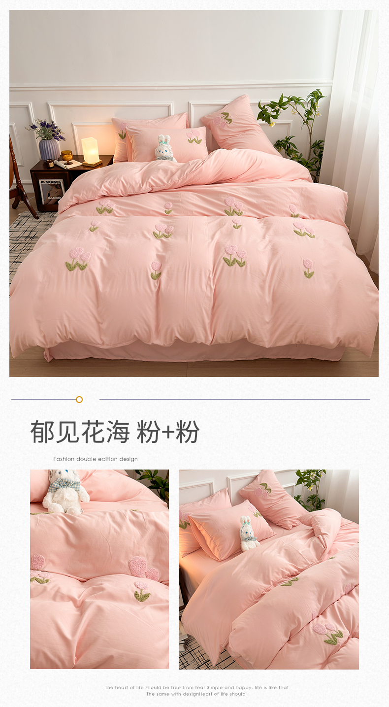 商品名称:多品家纺 2024新款水洗棉毛巾绣【单被套】郁见花海 郁见花海粉+粉