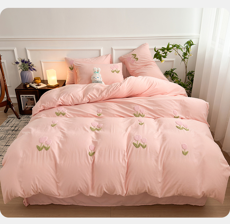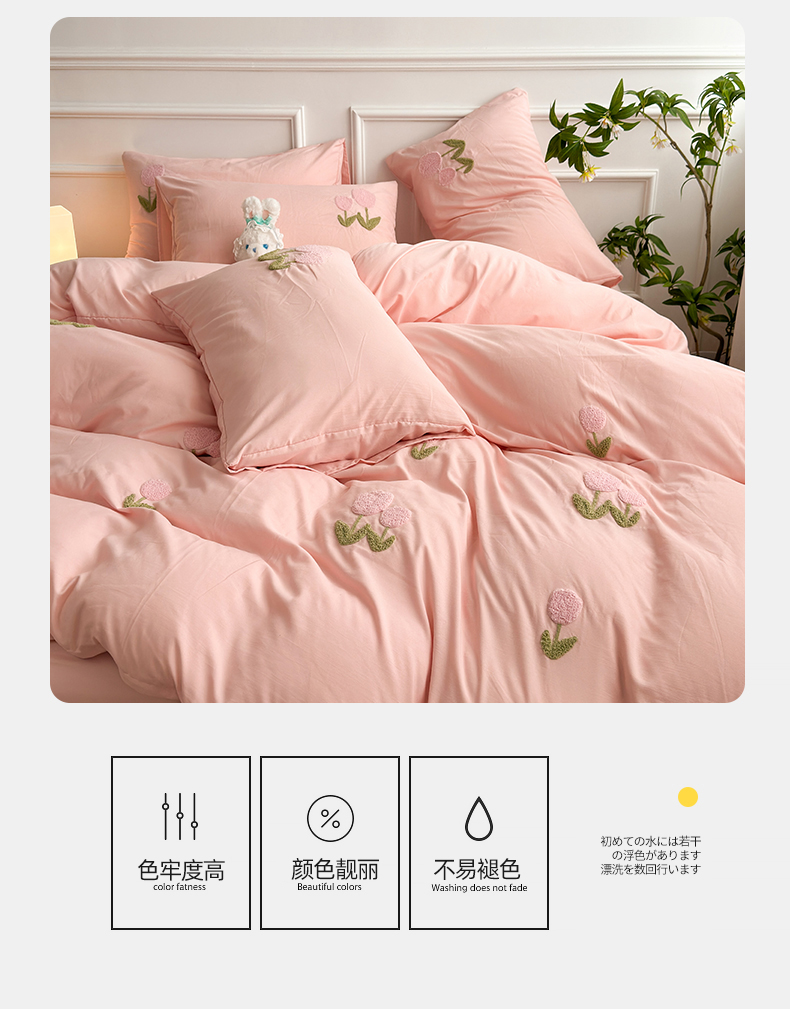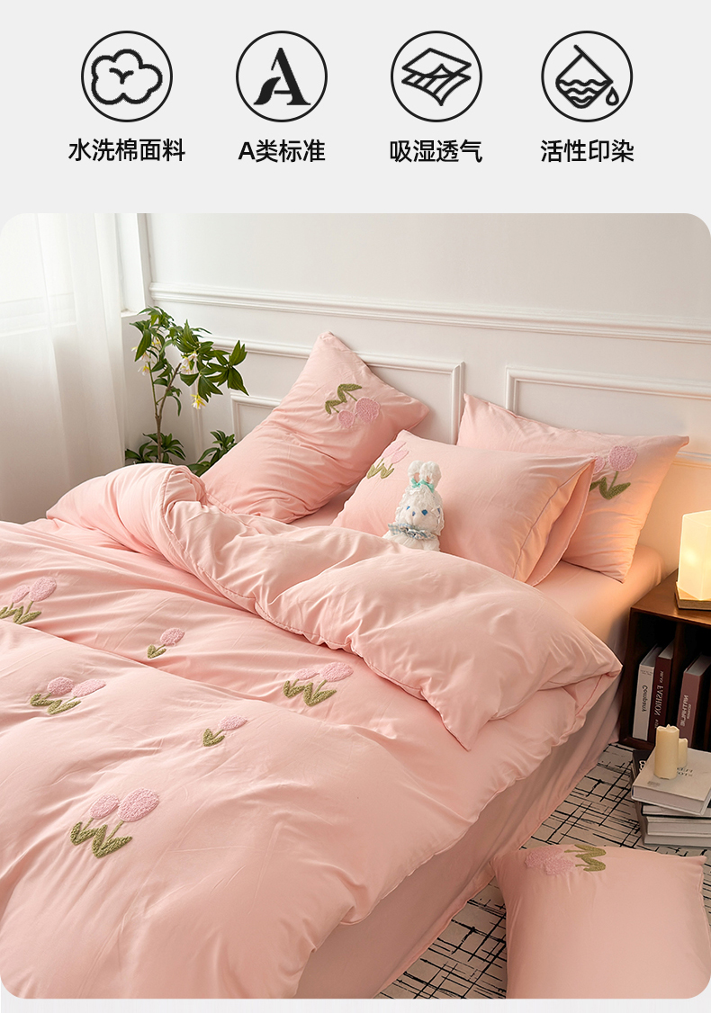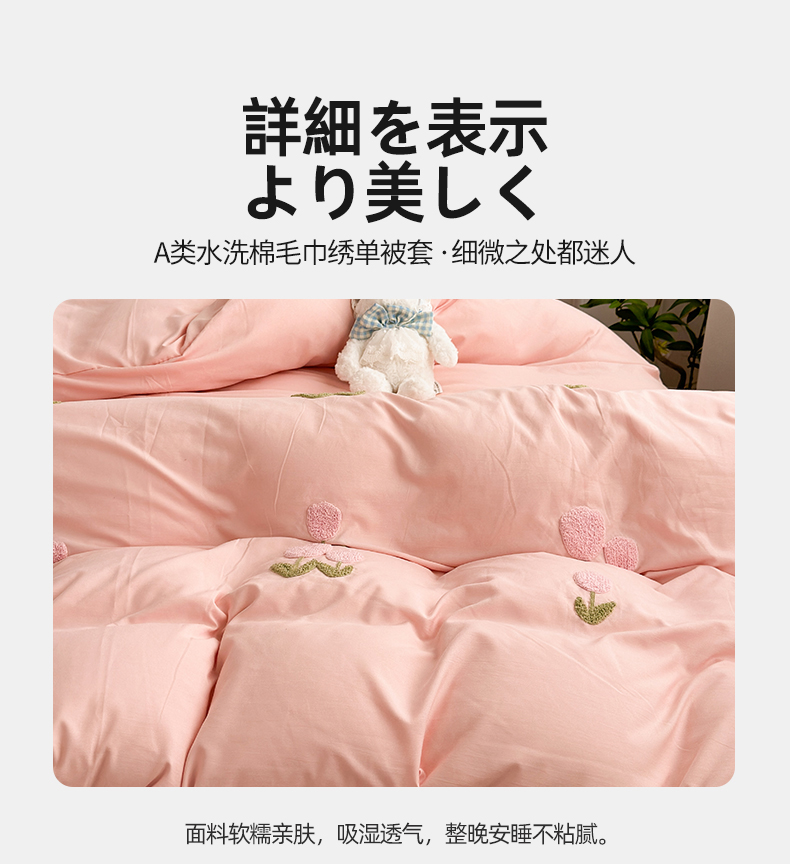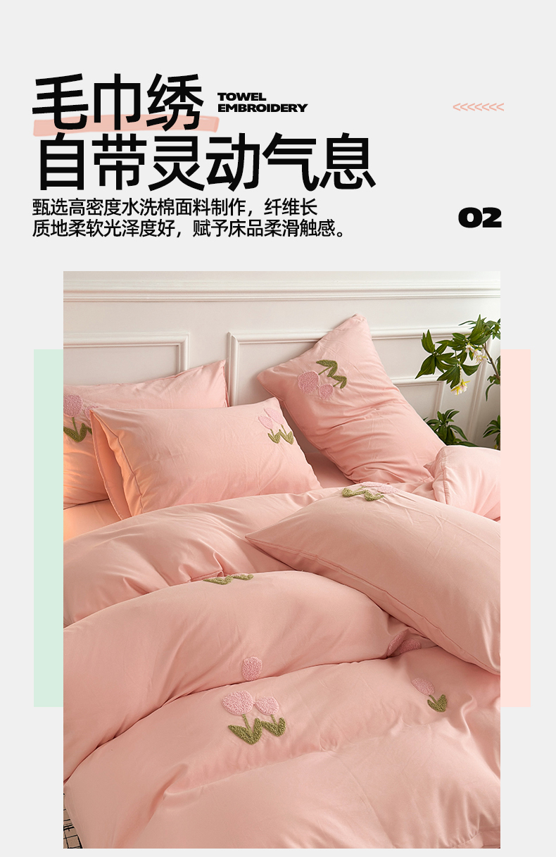 商品名称:多品家纺 2024新款水洗棉毛巾绣【单被套】郁见花海 郁见花海粉+粉