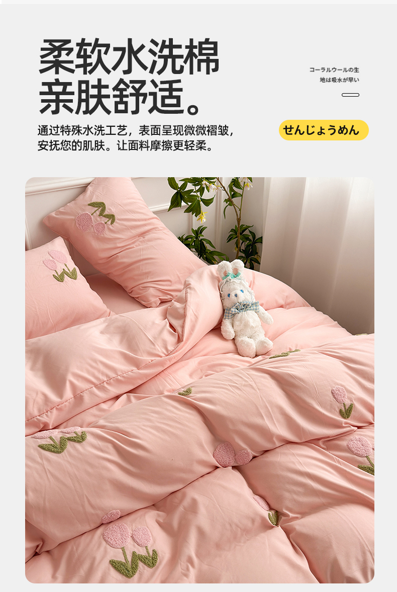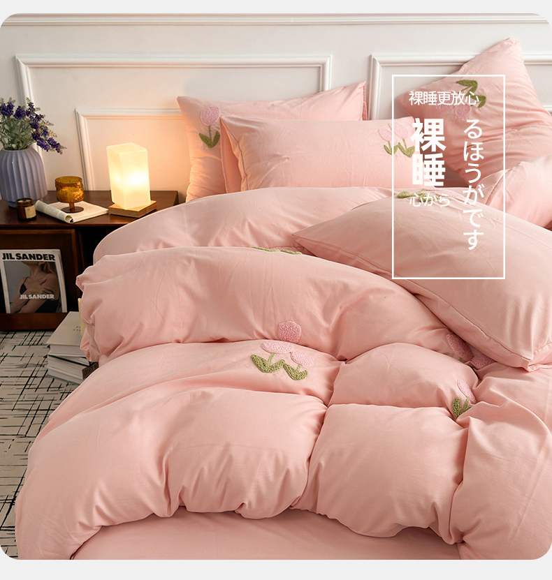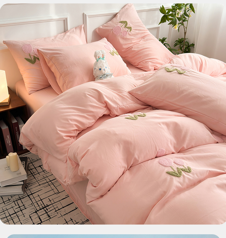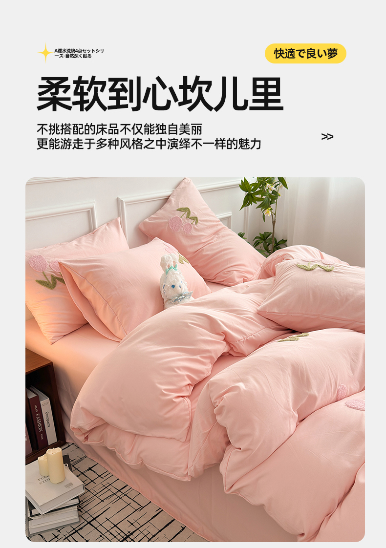 (总)多品家纺 2025新款ins奶油风刺绣枕套毛球款水洗棉四件套,洛熙,梦幻甜心,卿本佳人,月光恋语