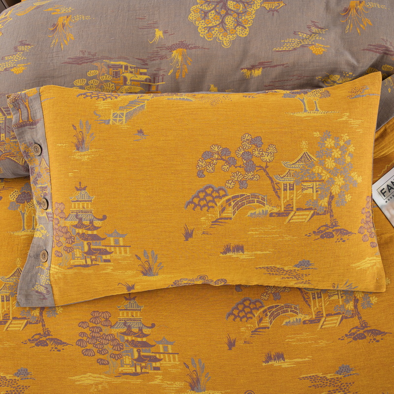 商品名称:鲁爱 2025新款全棉色织双层纱纽扣款四件套 逸彩之林-黄