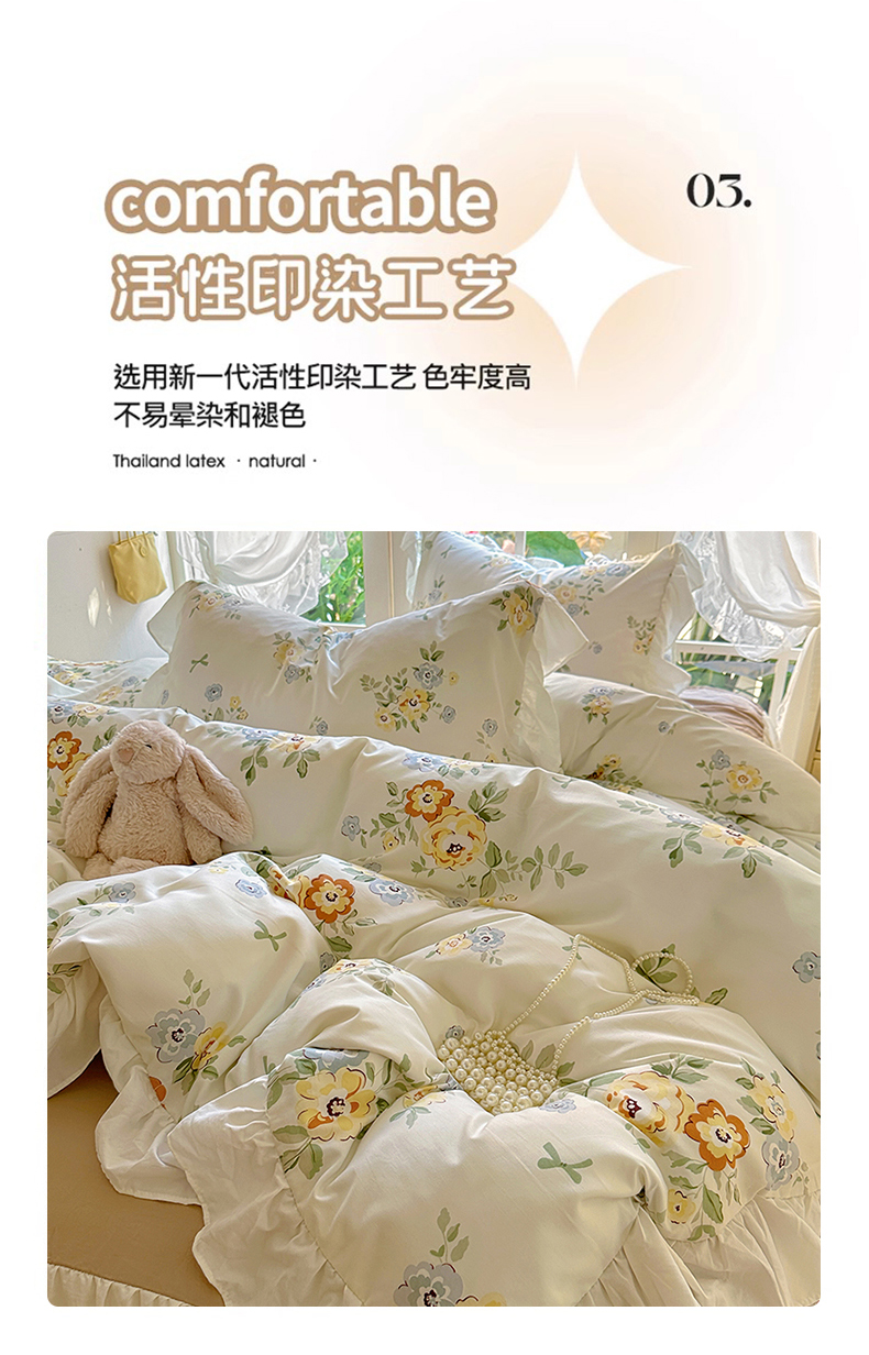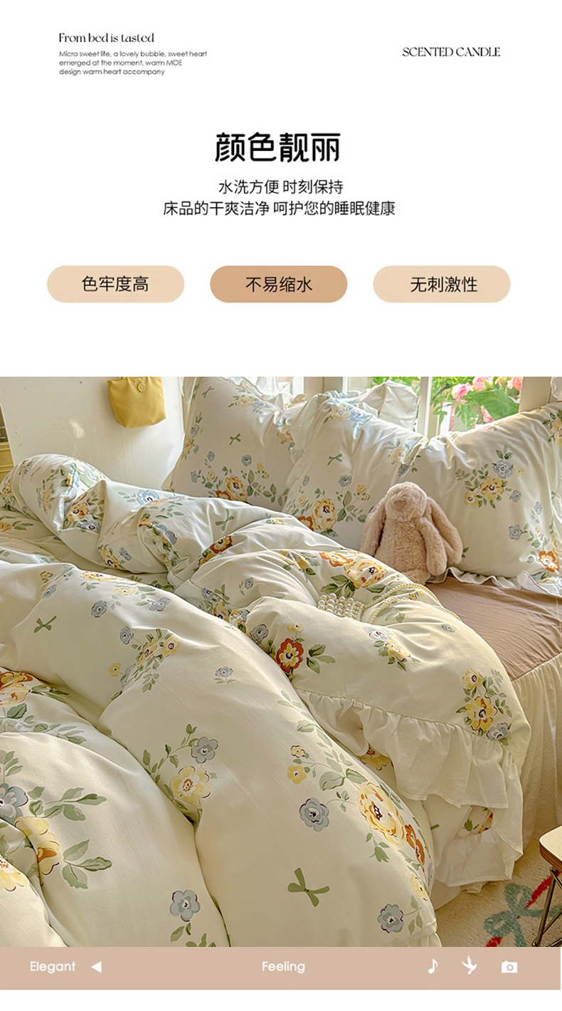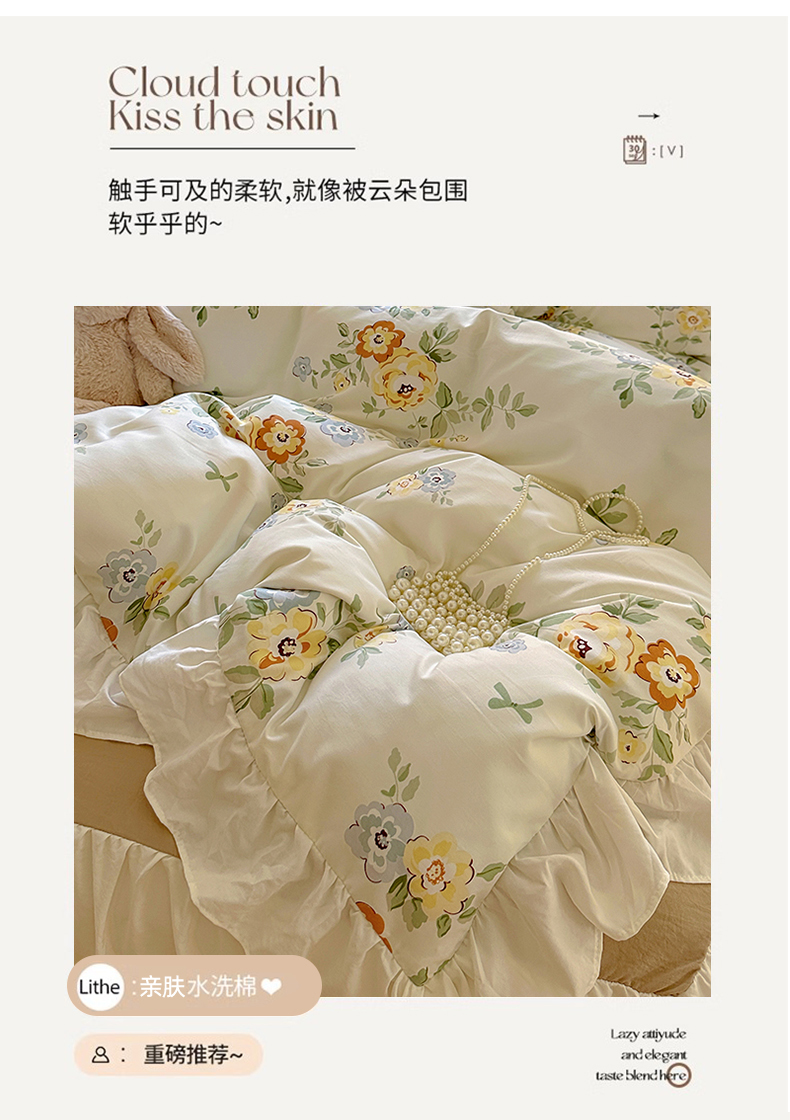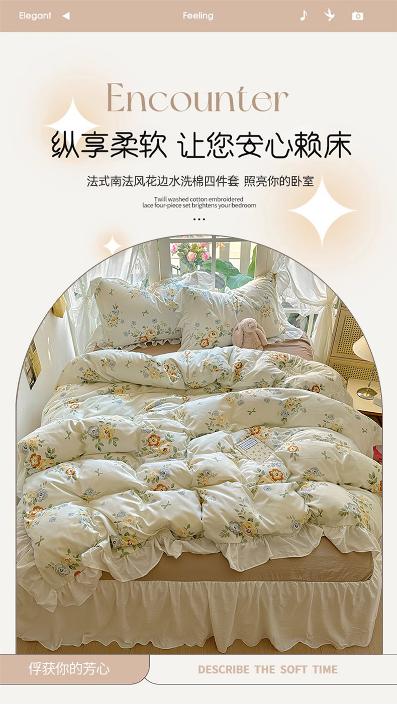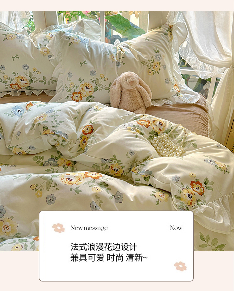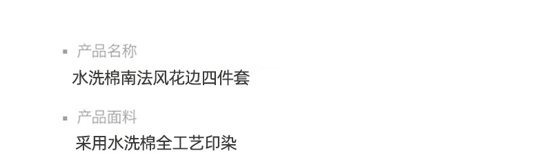 当前位置: 91家纺网 > 商品网购 > 床品套件 > 四件套 > 水洗棉四件套 > 家贝爱 2024新款南法风花边水洗棉四件套 南法风-夏菲花语
