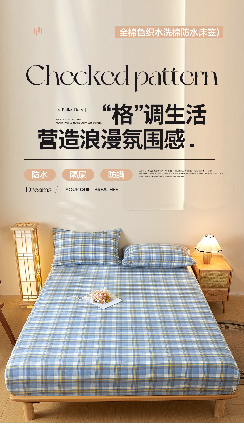 • 91家纺网 家纺一手货源 找家纺 芬晴家纺 2024新款全棉色织防水床笠大床款 防水-简兮兰