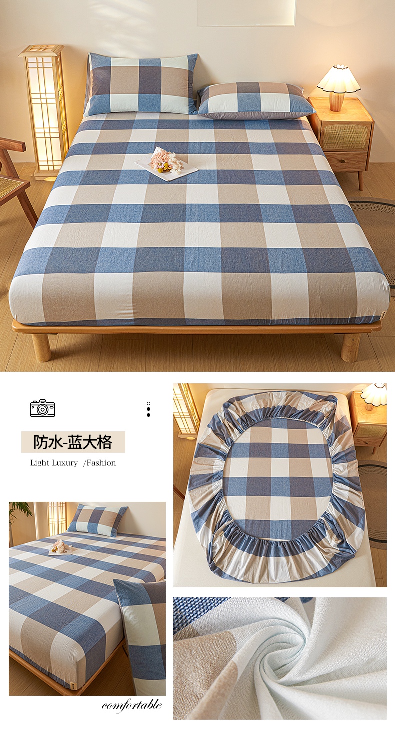 芬晴家纺 2024新款全棉色织防水床笠大床款 防水-简兮兰