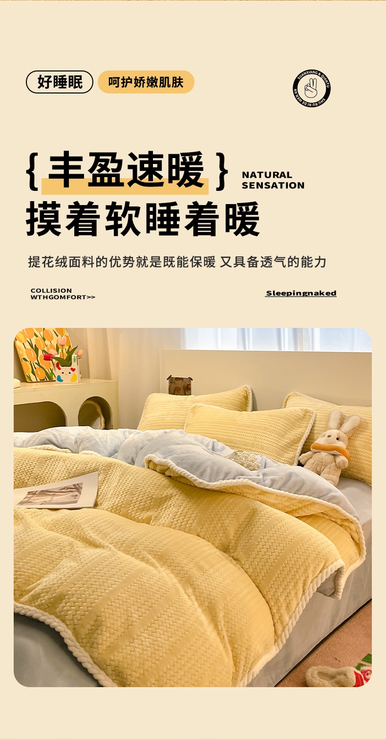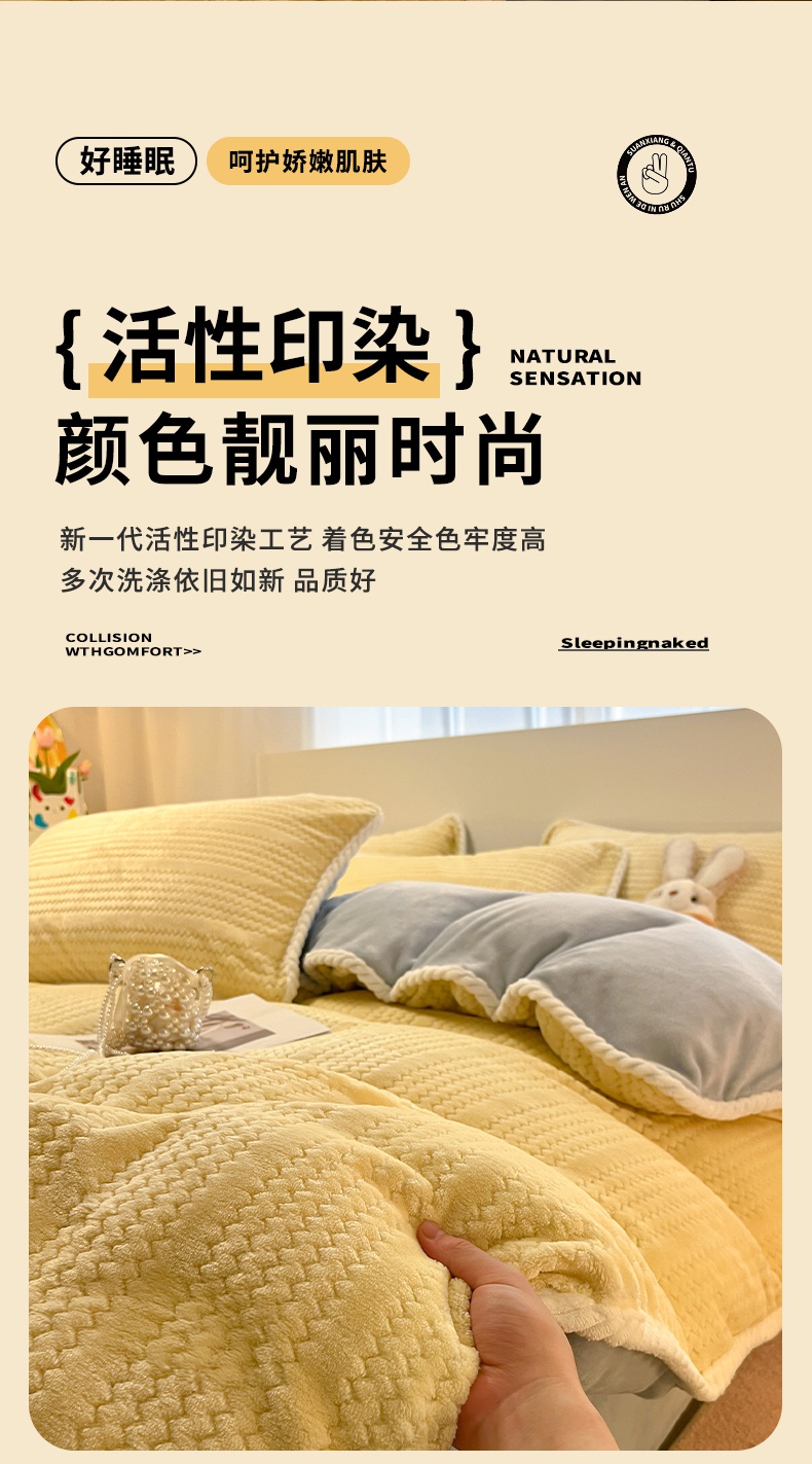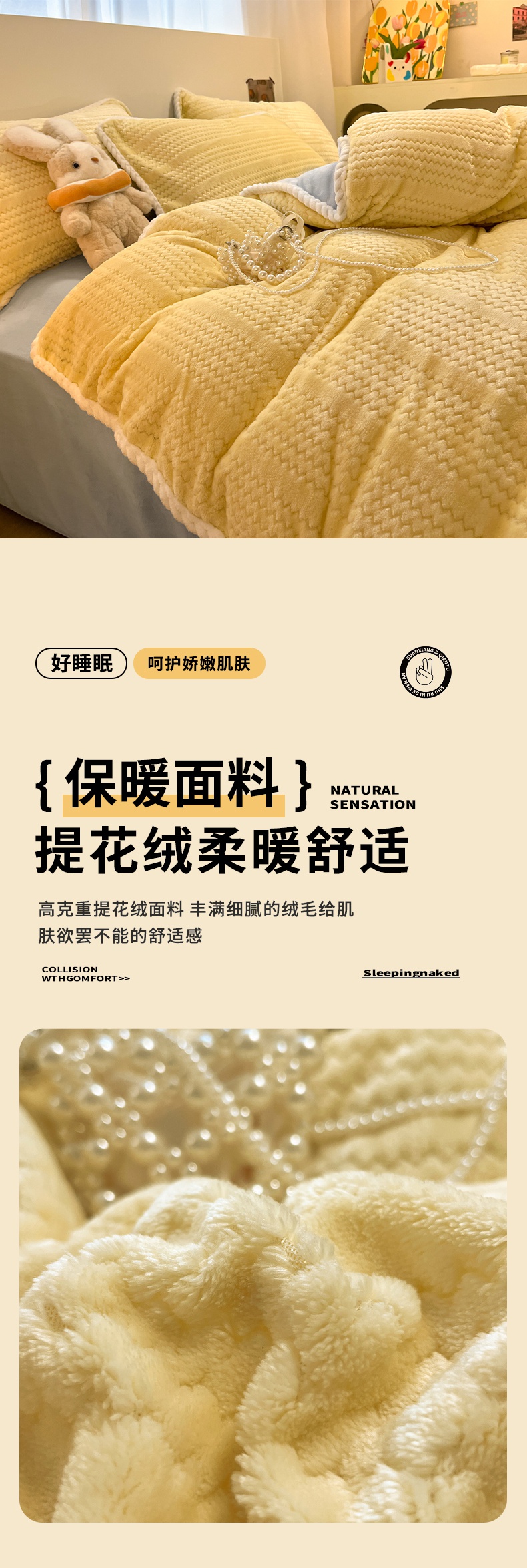 商品名称:(总)(买家秀 爆款不断货)A类母婴级6D提花牛奶绒四件套提花绒珊瑚绒四件套雪花绒四件套纯色牛奶绒四件套花