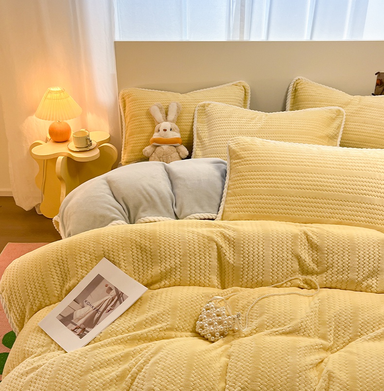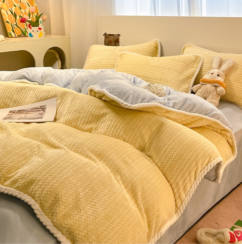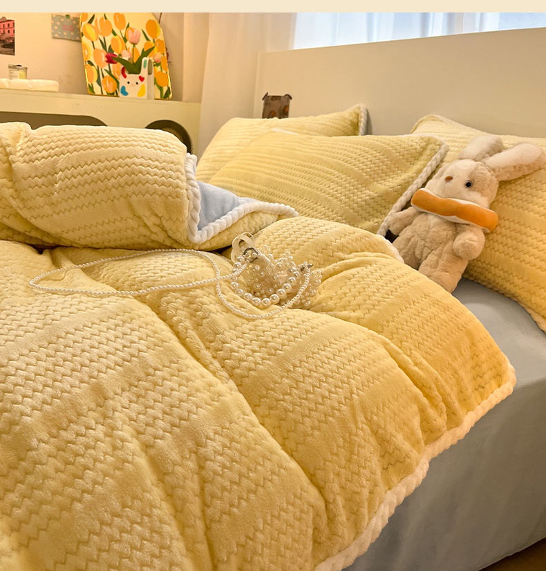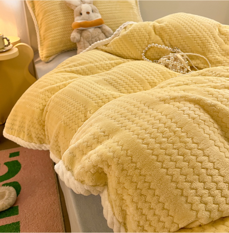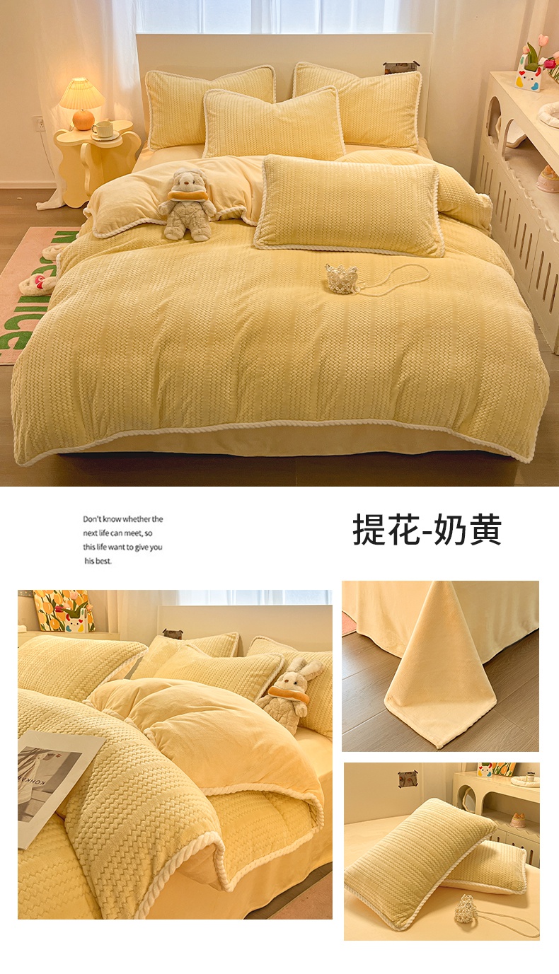 商品名称:(总)(买家秀 爆款不断货)A类母婴级6D提花牛奶绒四件套提花绒珊瑚绒四件套雪花绒四件套纯色牛奶绒四件套花