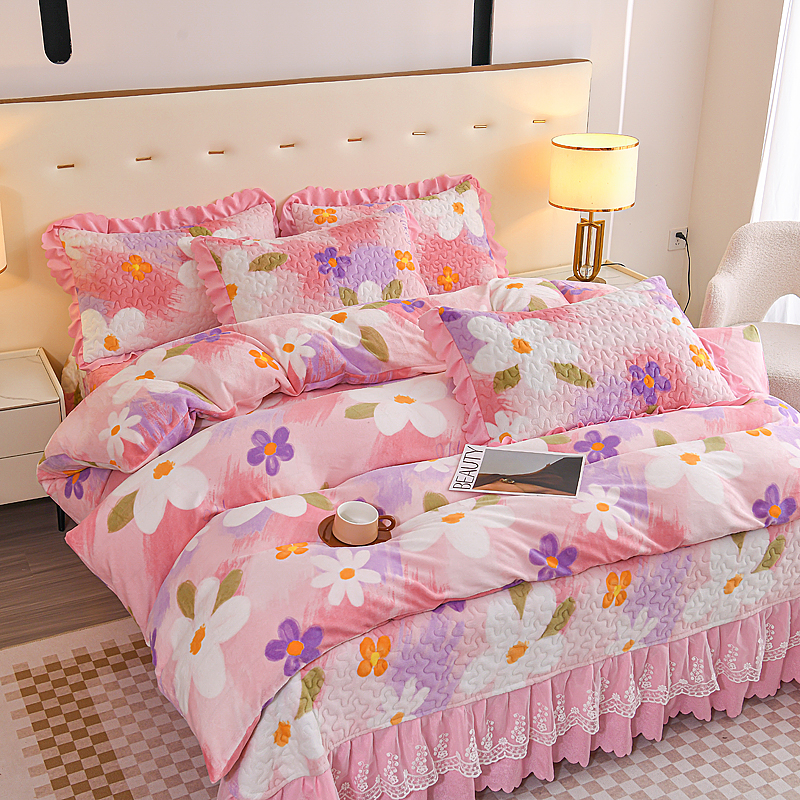 当前位置: 91家纺网 > 商品网购 > 床品套件 > 四件套 > 牛奶绒四件套 > (买家秀 爆款不断货)A类母婴级双层蕾丝花边床裙床盖三件套牛奶绒床盖三件套萱花绒床护垫牛奶绒床褥卡通 花边-浪漫花影