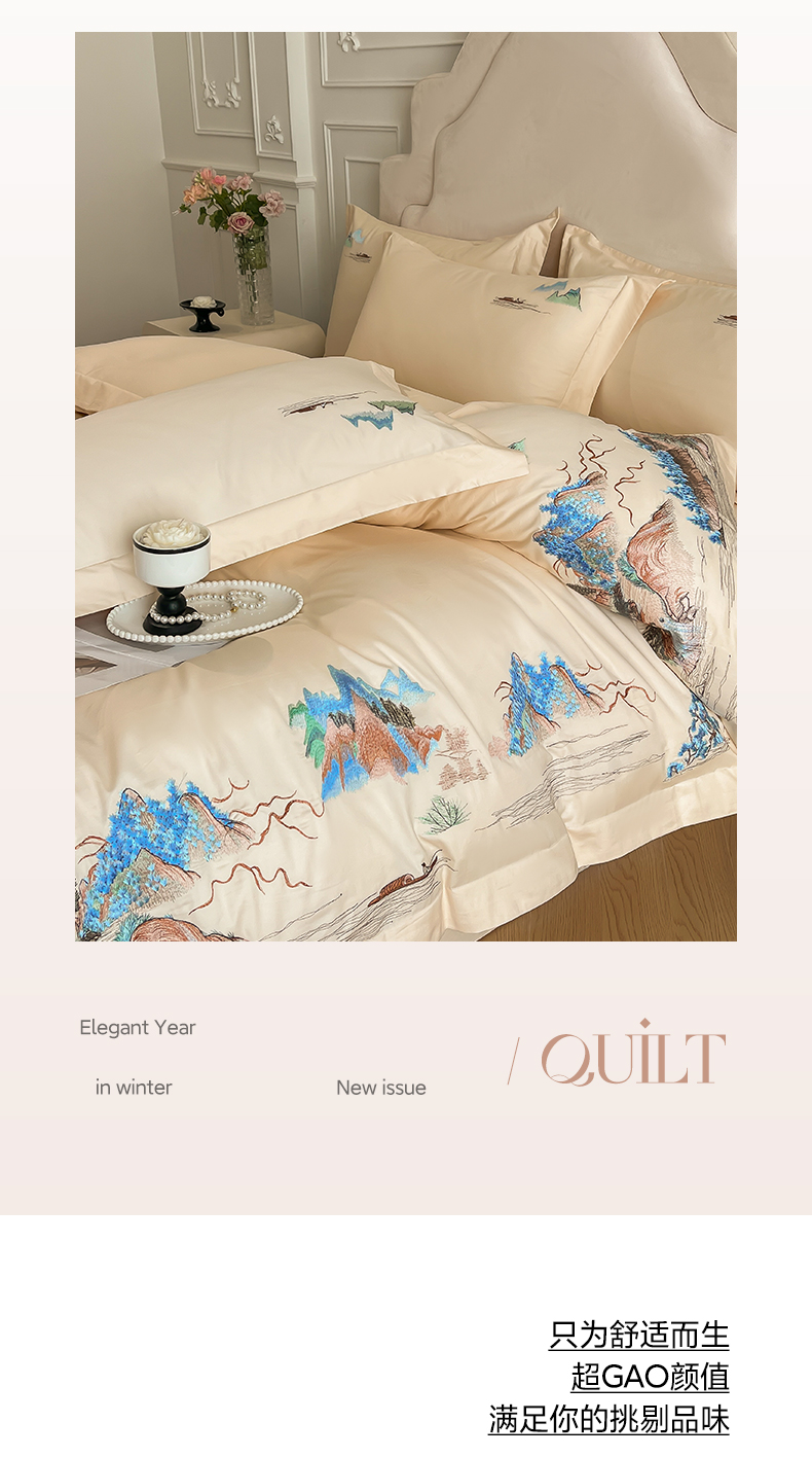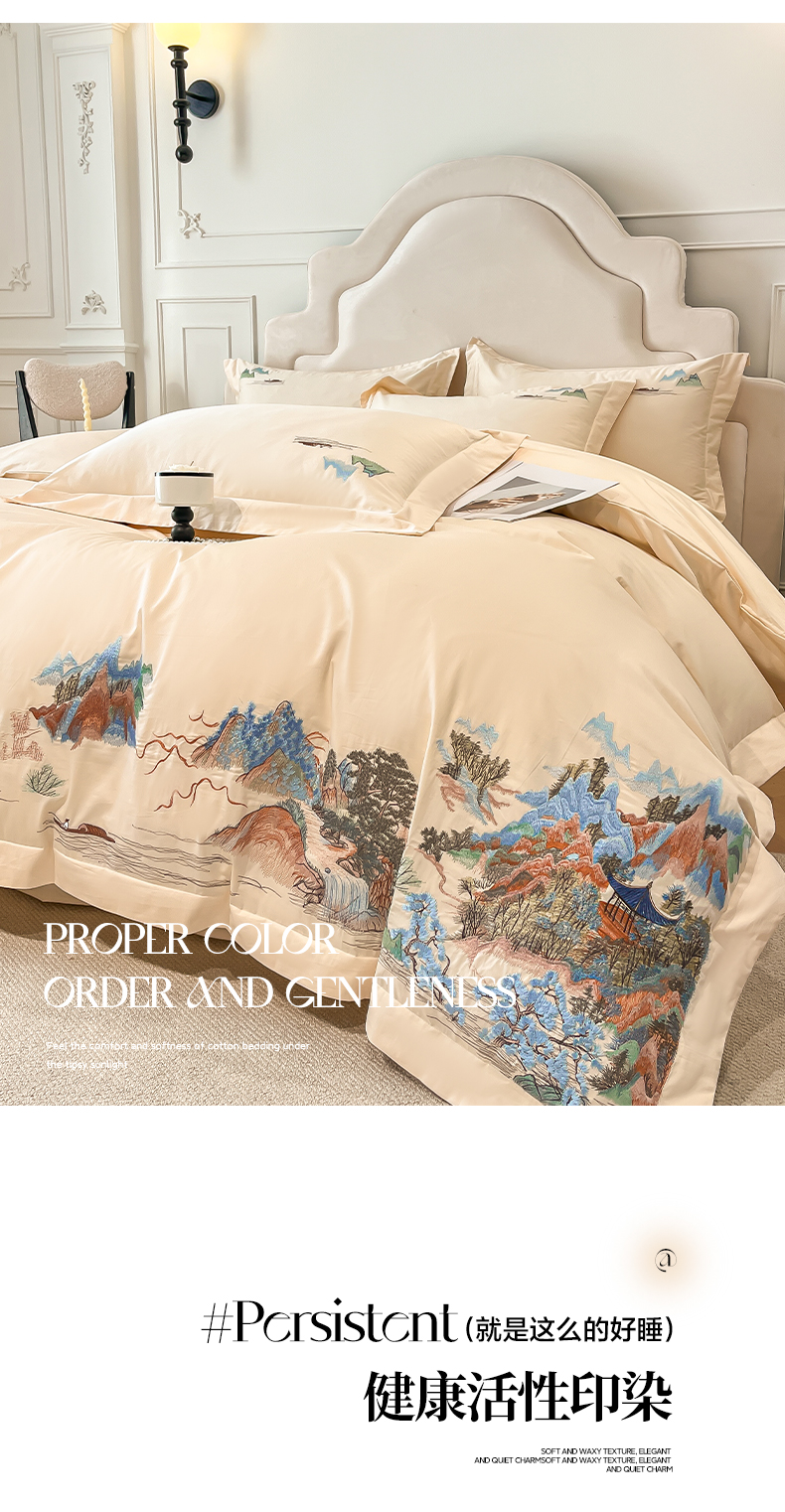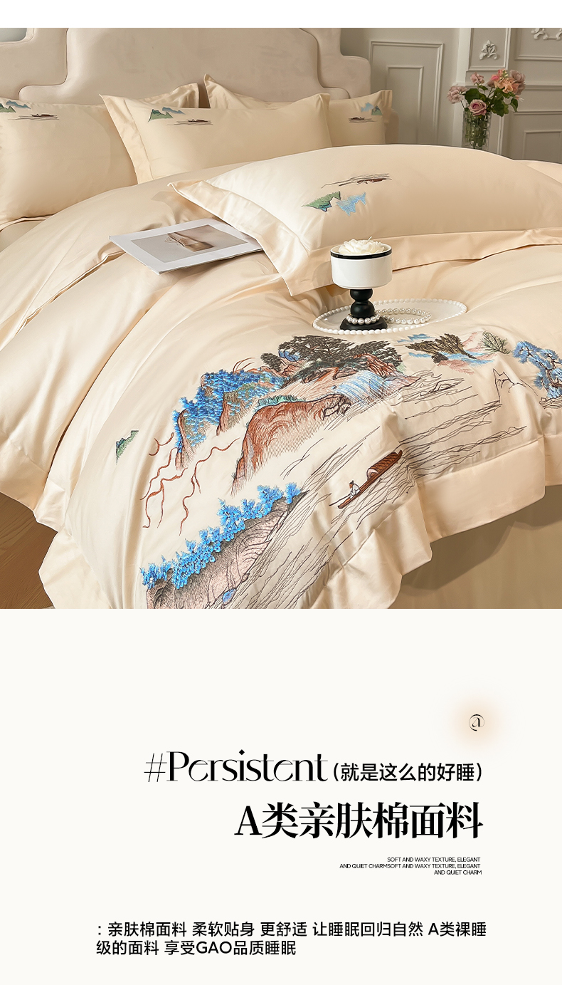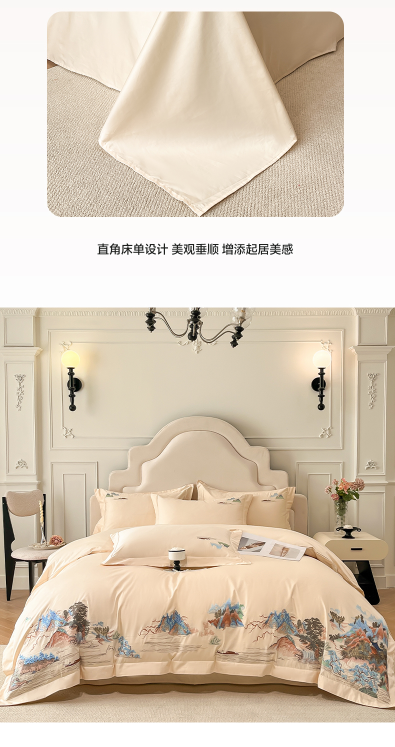 商品名称:帝王家纺 2025新款亲肤棉磨毛重工绣花四件套-锦绣山河 锦绣山河-月牙白
