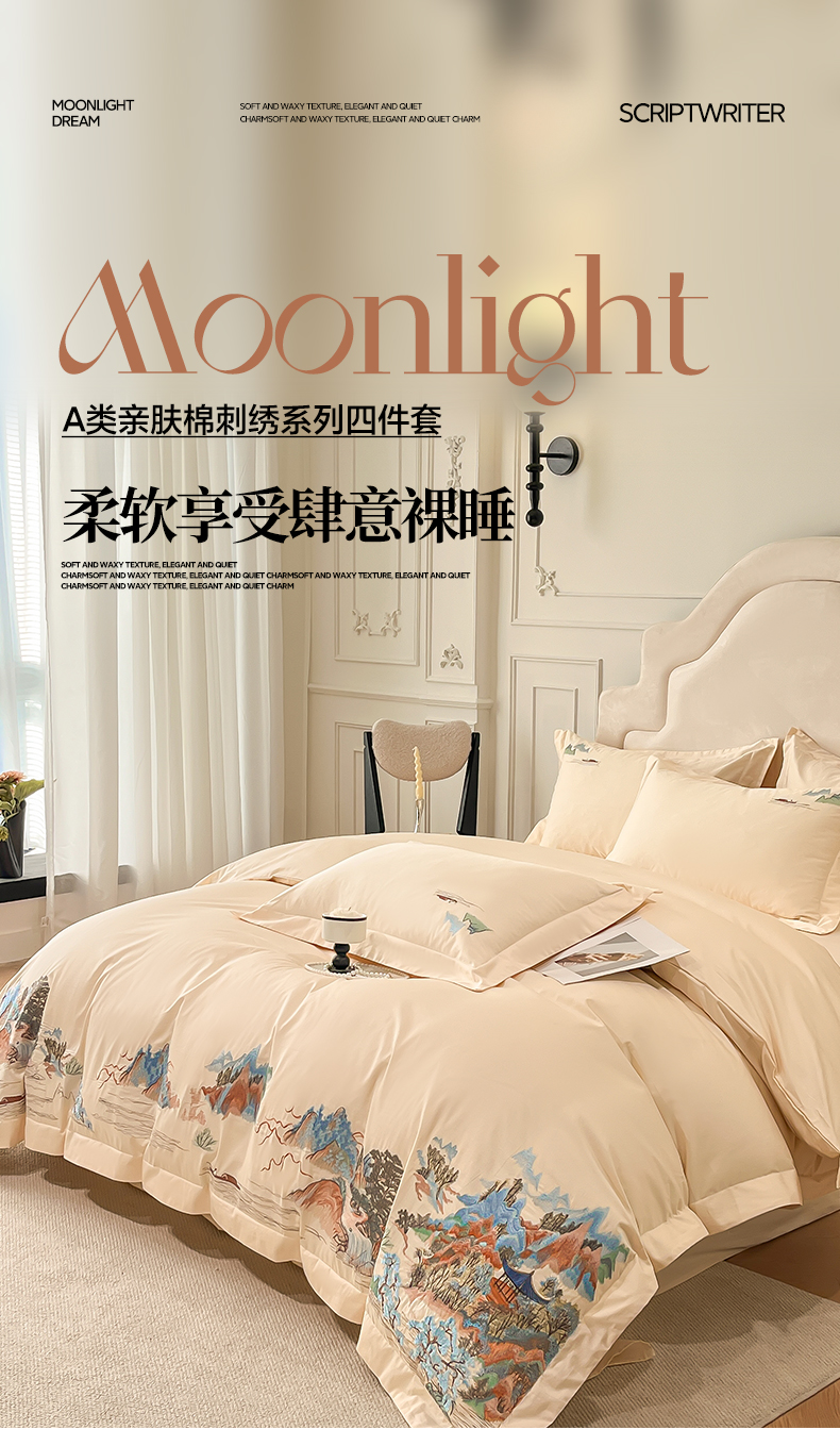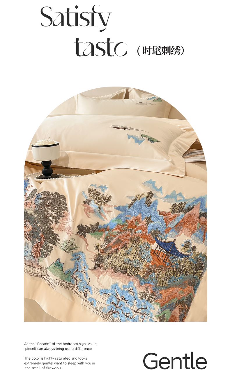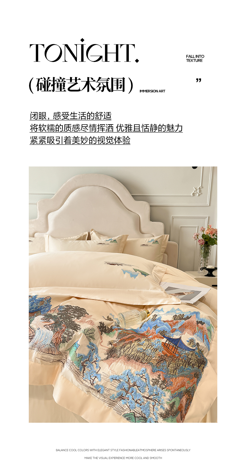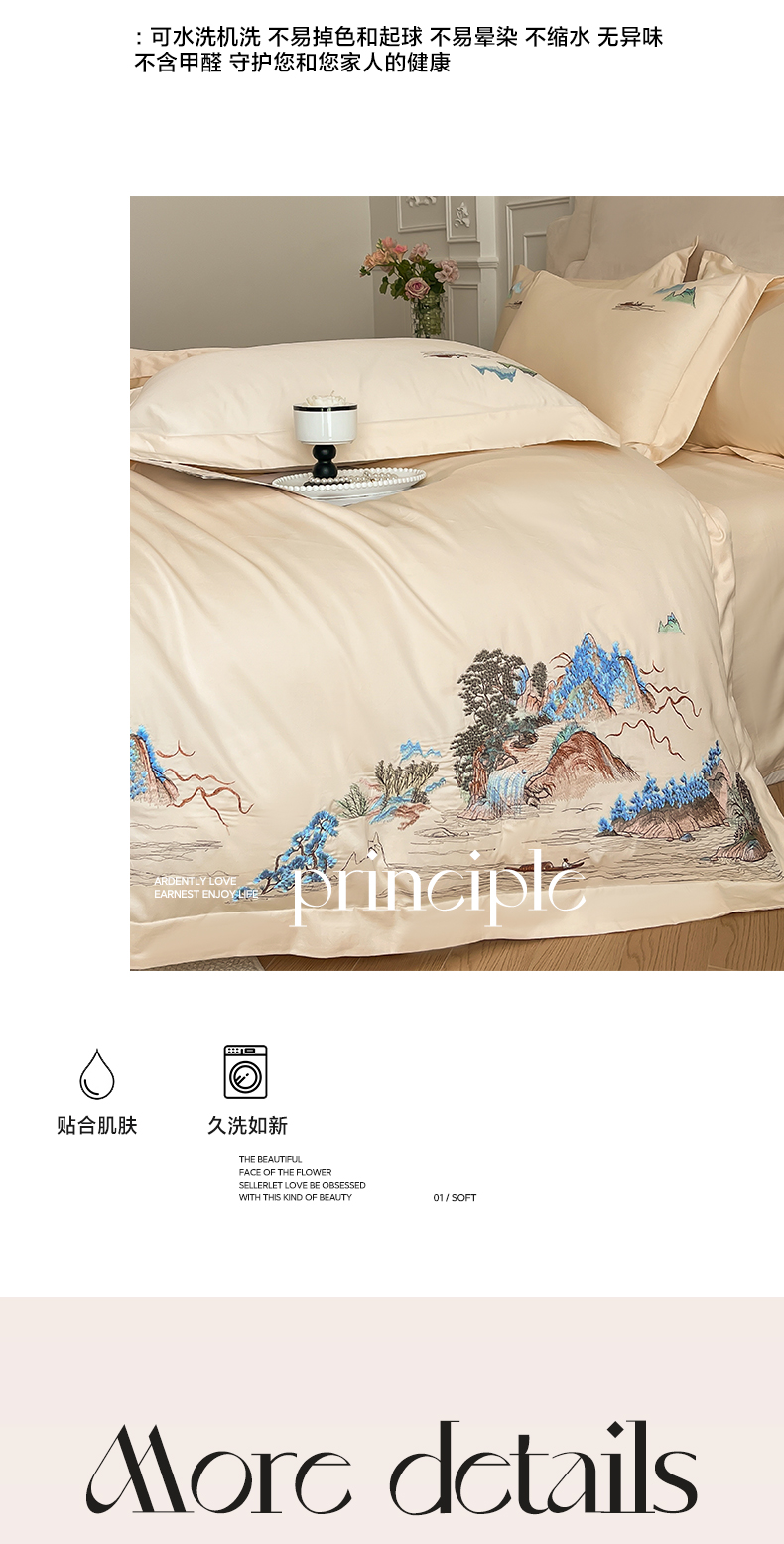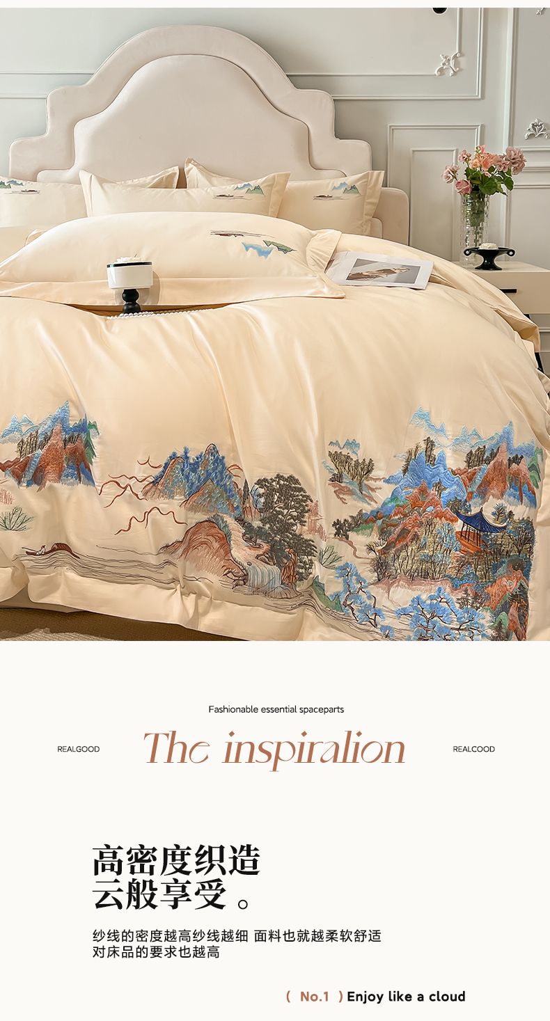 商品名称:帝王家纺 2025新款亲肤棉磨毛重工绣花四件套-锦绣山河 锦绣山河-月牙白