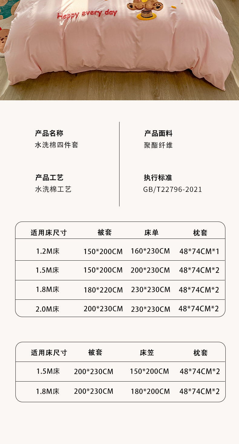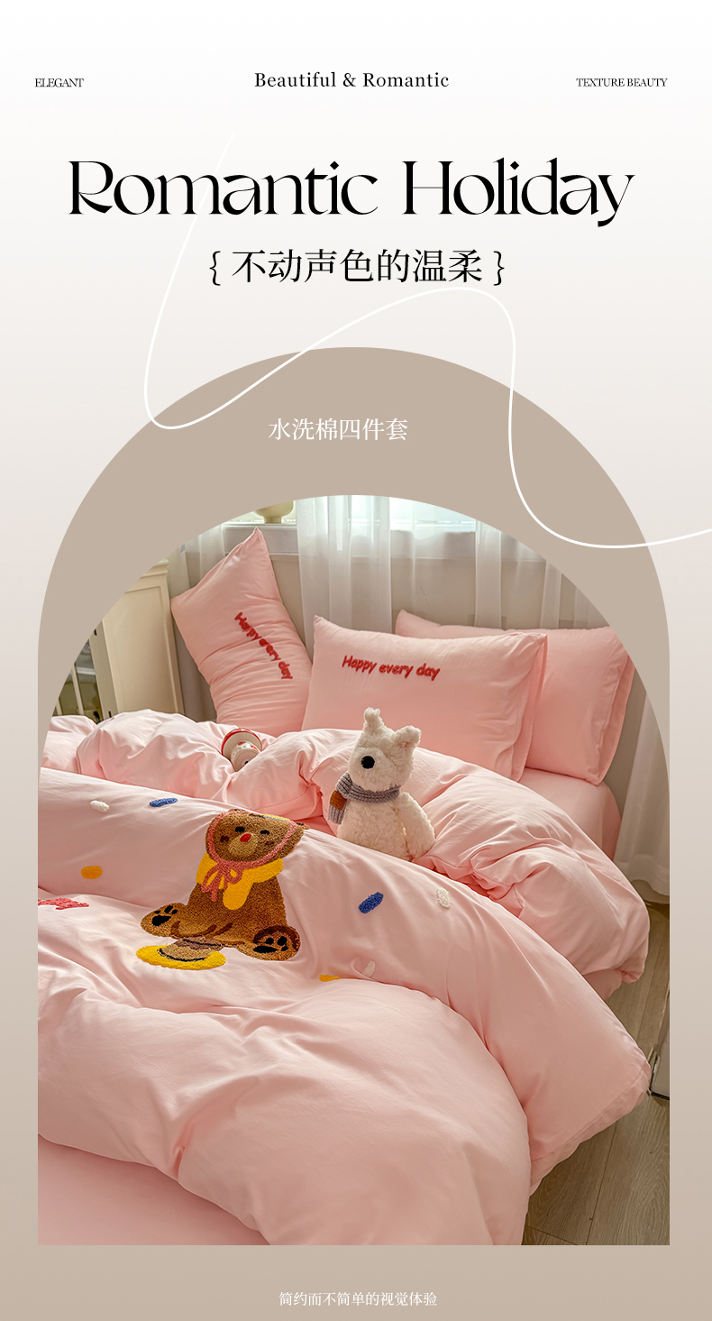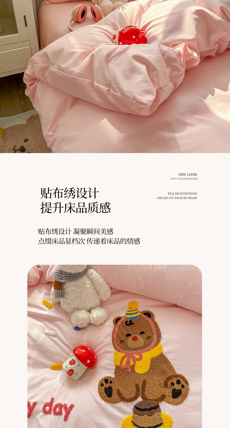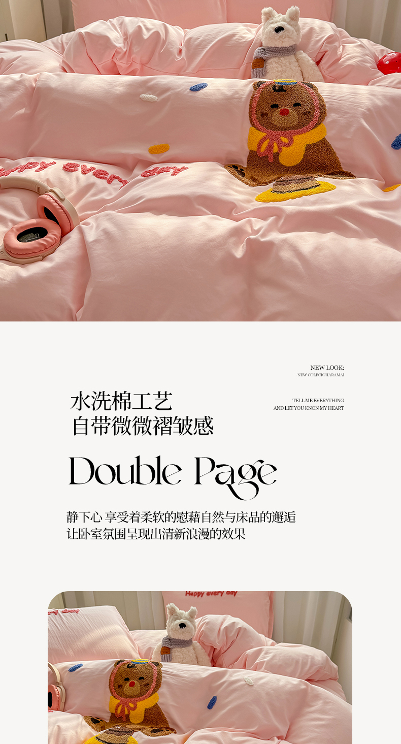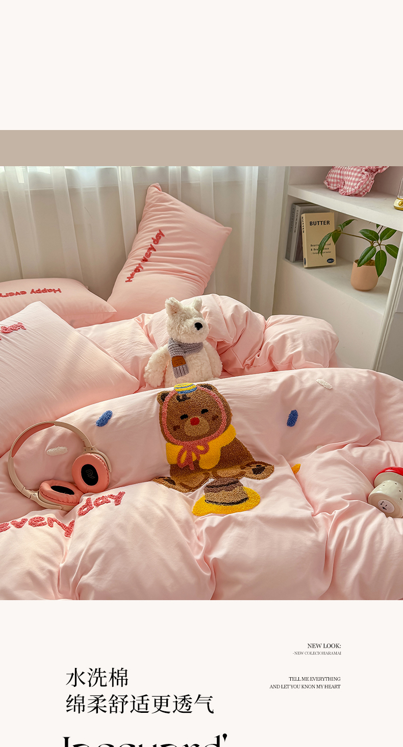 当前位置: 91家纺网 > 商品网购 > 床品套件 > 四件套 > 水洗棉四件套 > 韩巢家纺 2025新款大版水洗棉毛巾绣被套四件套(提供卖家秀) 心愿小熊
