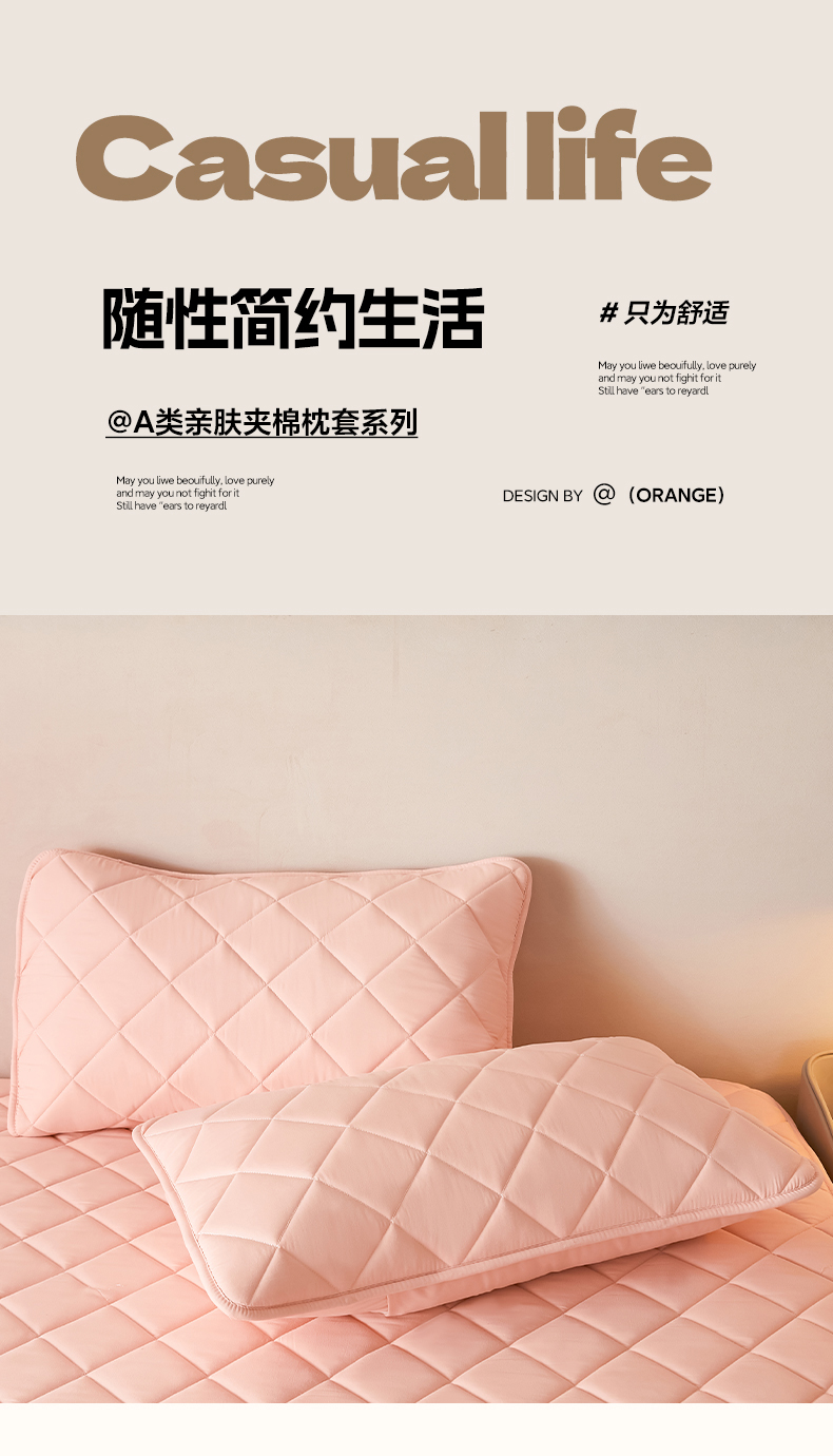 福来临家纺 2025新款A类亲肤夹棉枕套-格调 格调-粉色