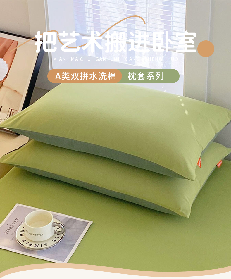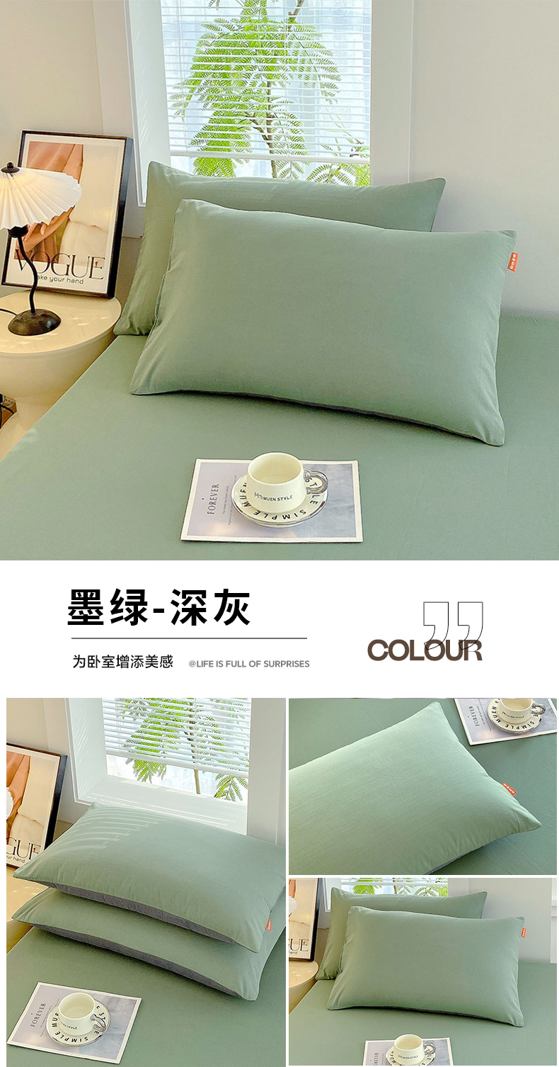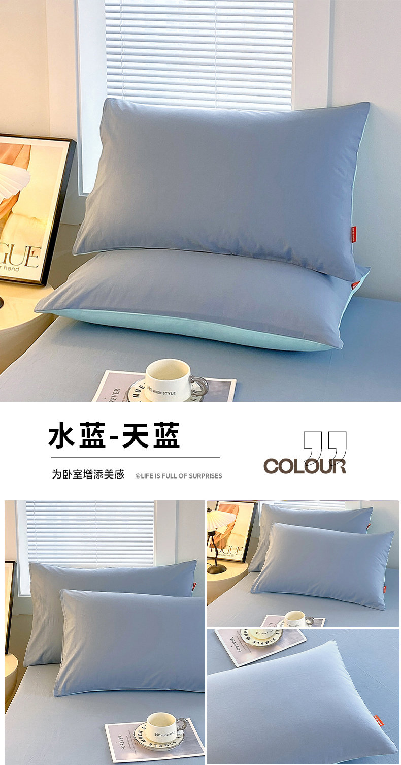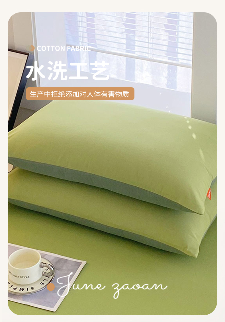 (总)2025春夏新款双拼水洗棉全棉纯棉单品系列-单枕套