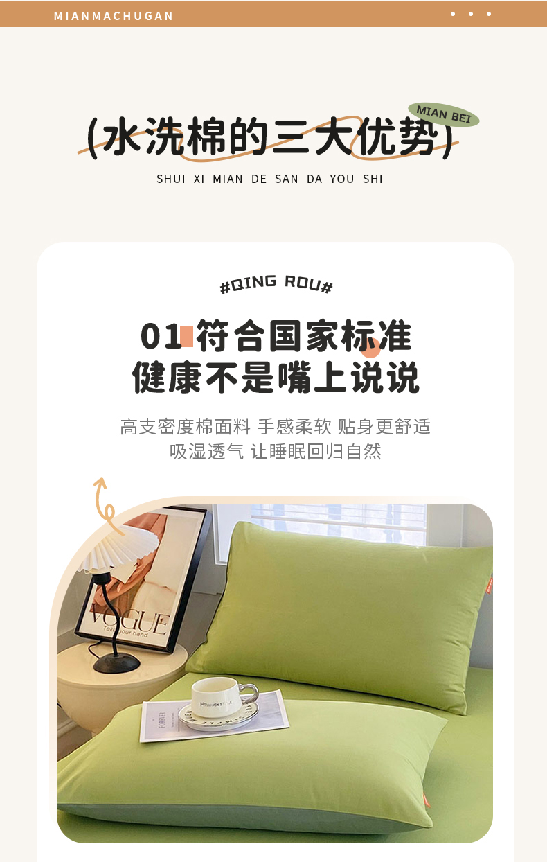 商品名称:(总)2025春夏新款双拼水洗棉全棉纯棉单品系列-单枕套