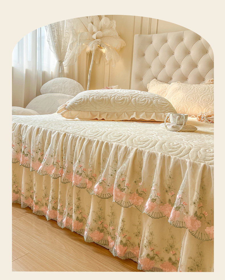 • 91家纺网 家纺一手货源 找家纺 (总)恋尚 2025新款柔软牛奶绒保暖蕾丝床裙四件套-玫瑰故事(控价305),玫瑰故事-蜜桃粉,玫瑰故事-奶茶色,玫瑰故事-椰蓉灰,玫瑰故事-香芋紫,玫瑰故事-清新粉,玫瑰故事-香草绿