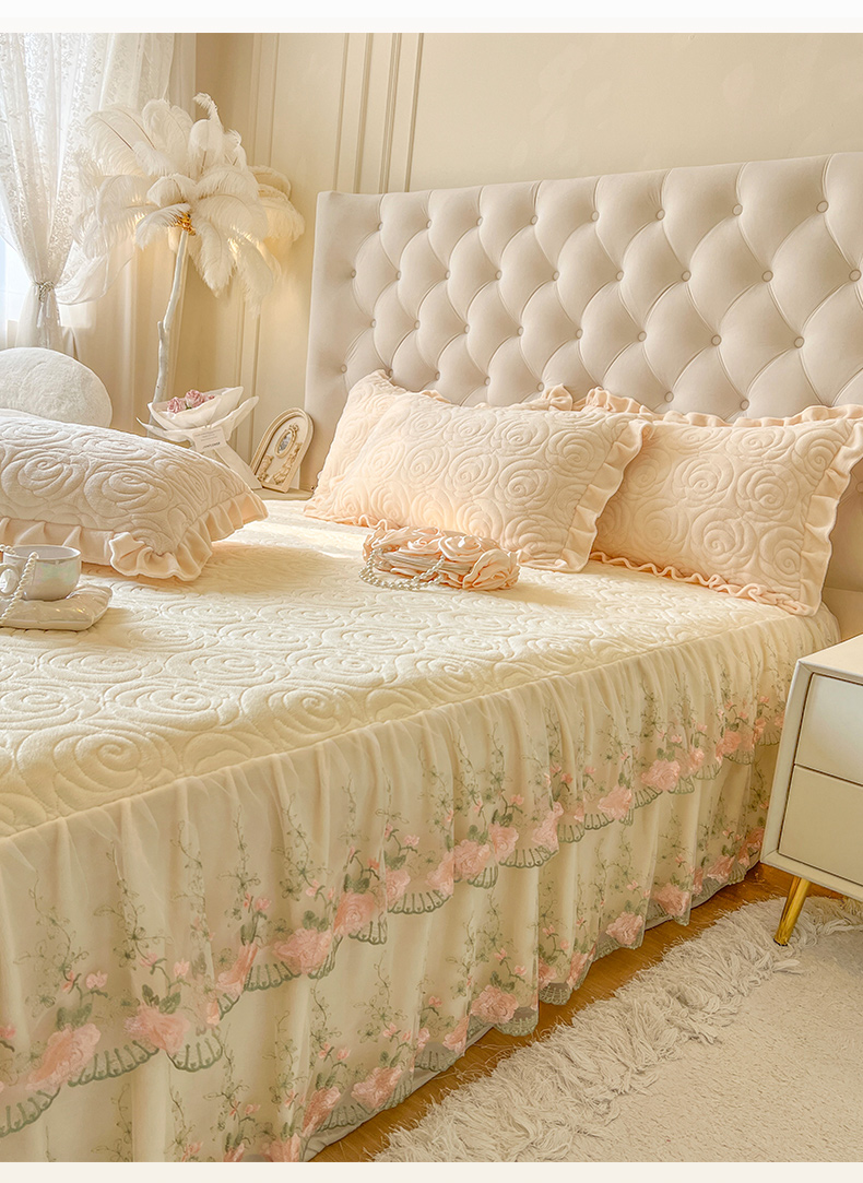 (总)恋尚 2025新款加厚牛奶绒保暖床笠式床裙单品床裙床裙单件-莫奈花园(床裙控价130起),莫奈花园-蜜桃粉,莫奈花园-奶油白,莫奈花园-清新粉,莫奈花园-香芋紫,莫奈花园-椰蓉灰